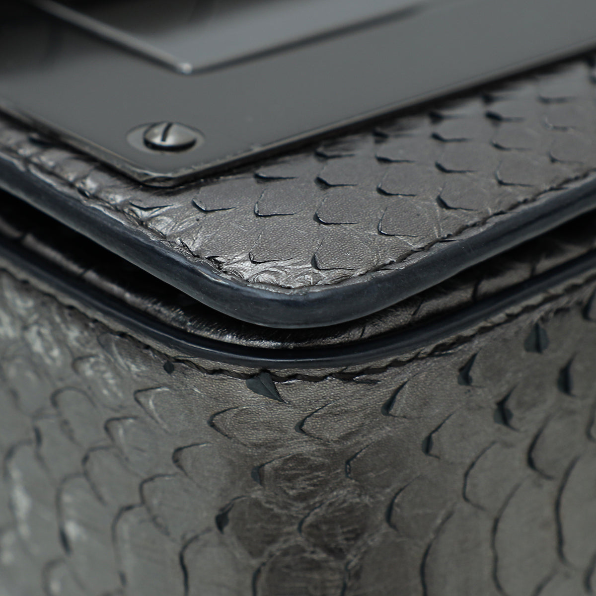 Material: Metallic Gray Python Leather