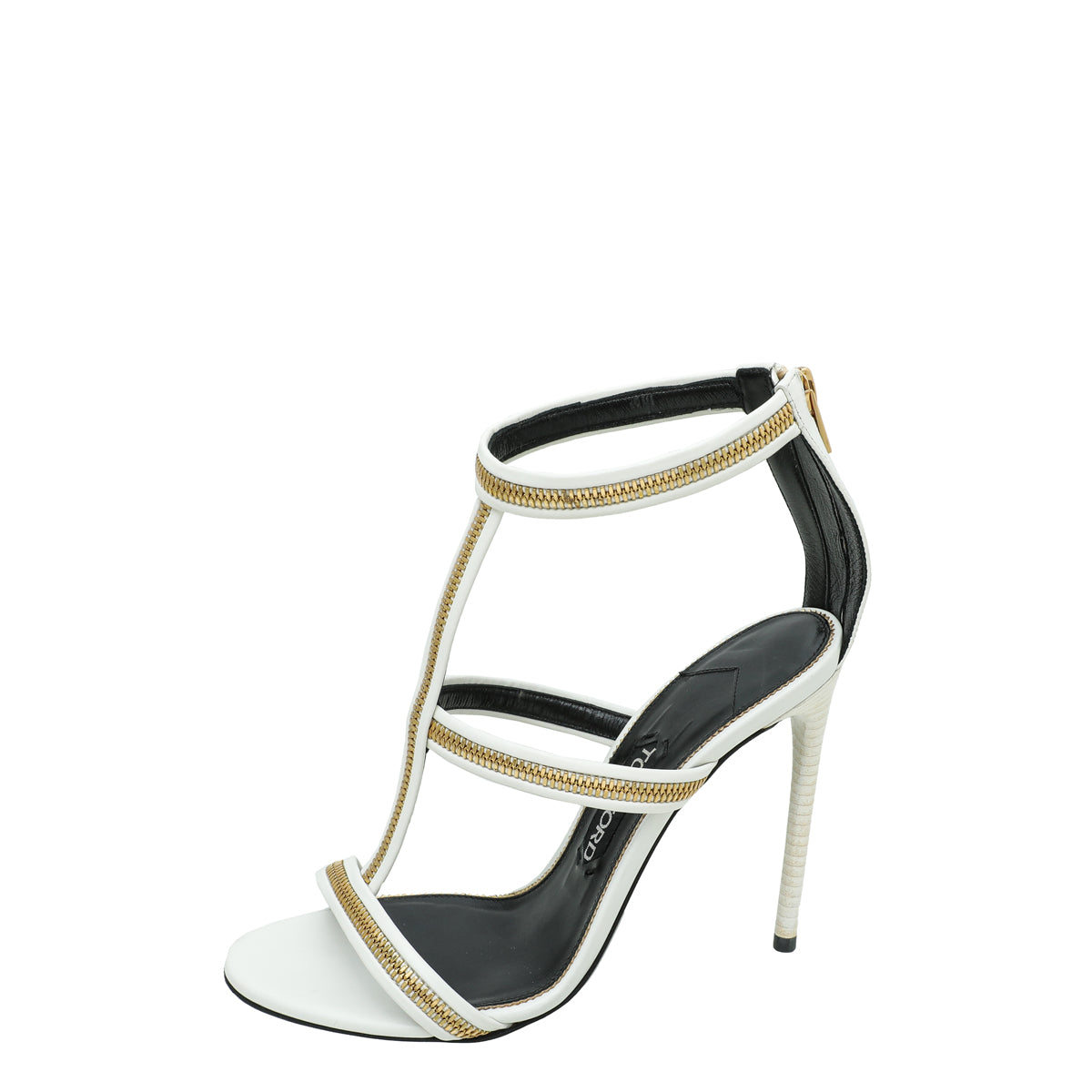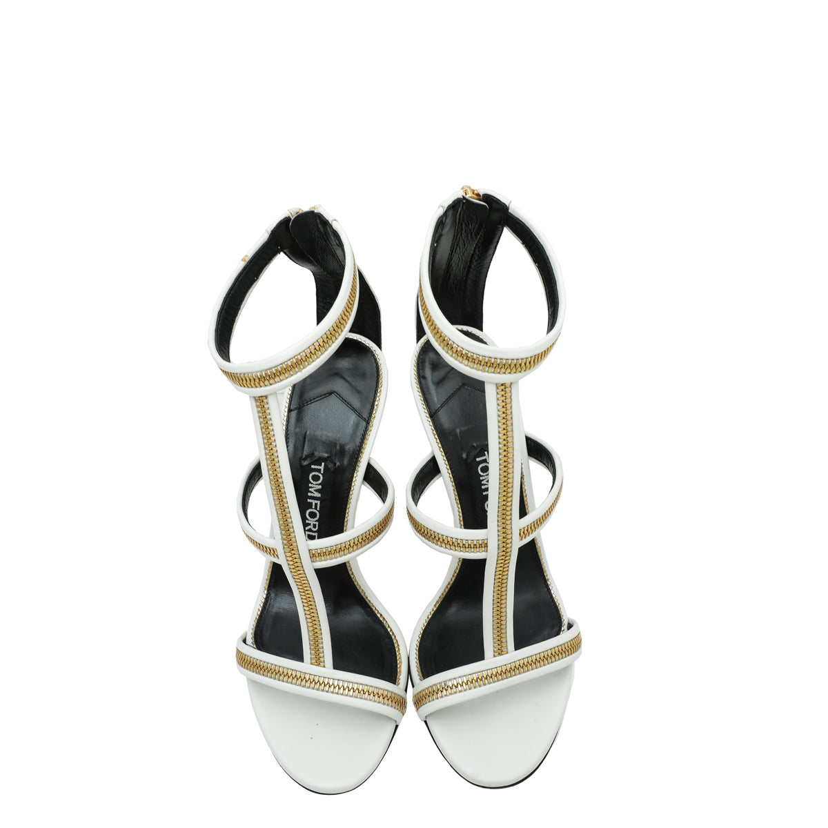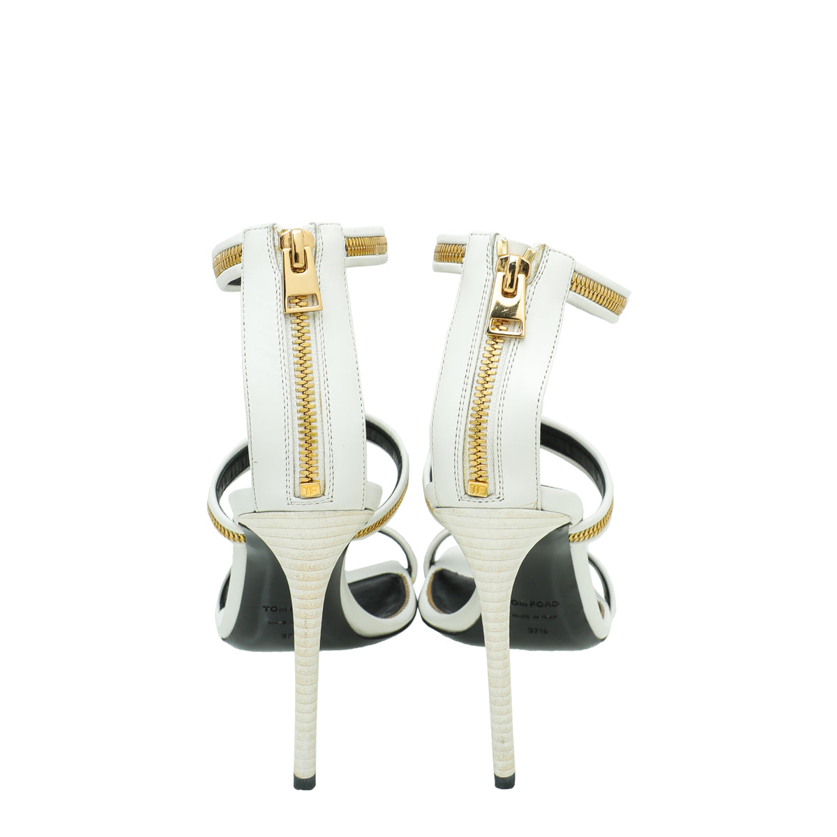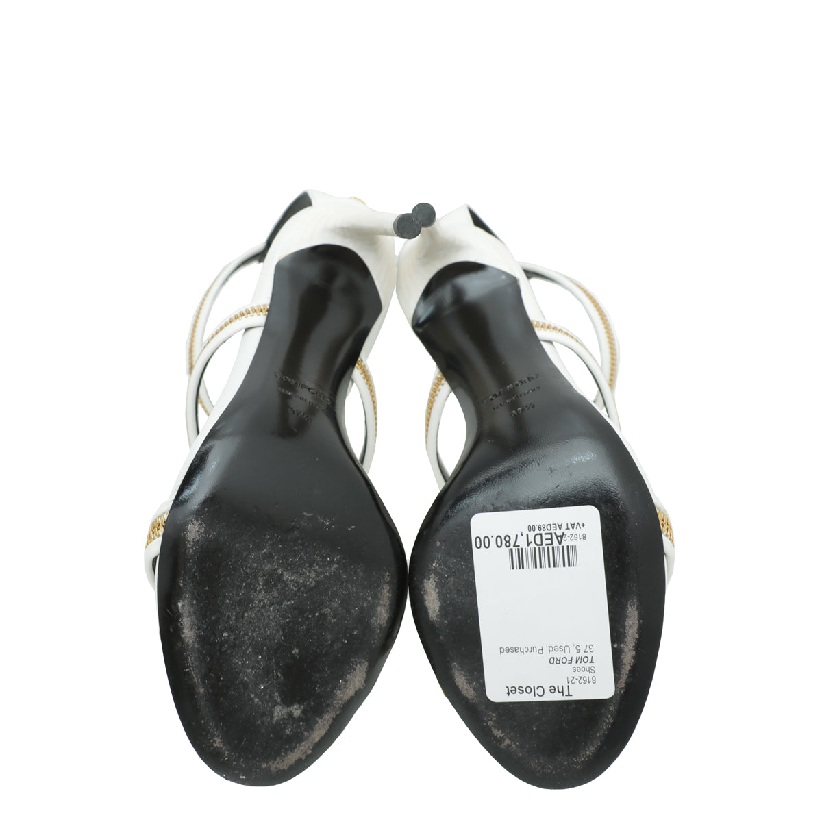 Tom Ford White Chain Ankle Strap Slides Sandal 37.5