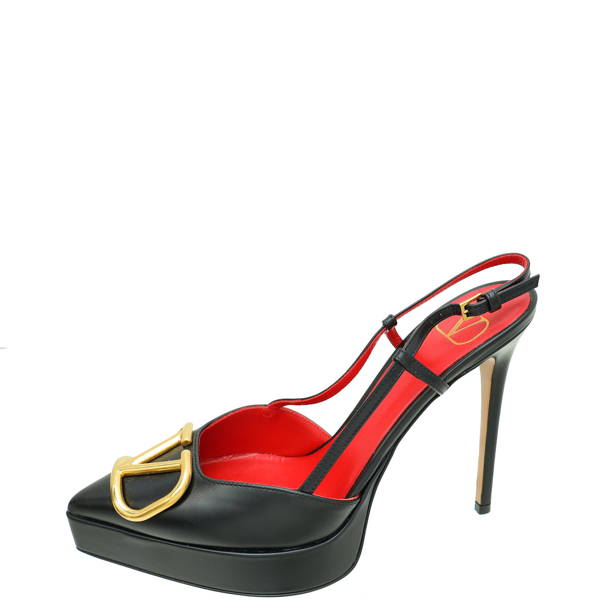 Valentino Black Vlogo Platform Slingback Pump 38.5