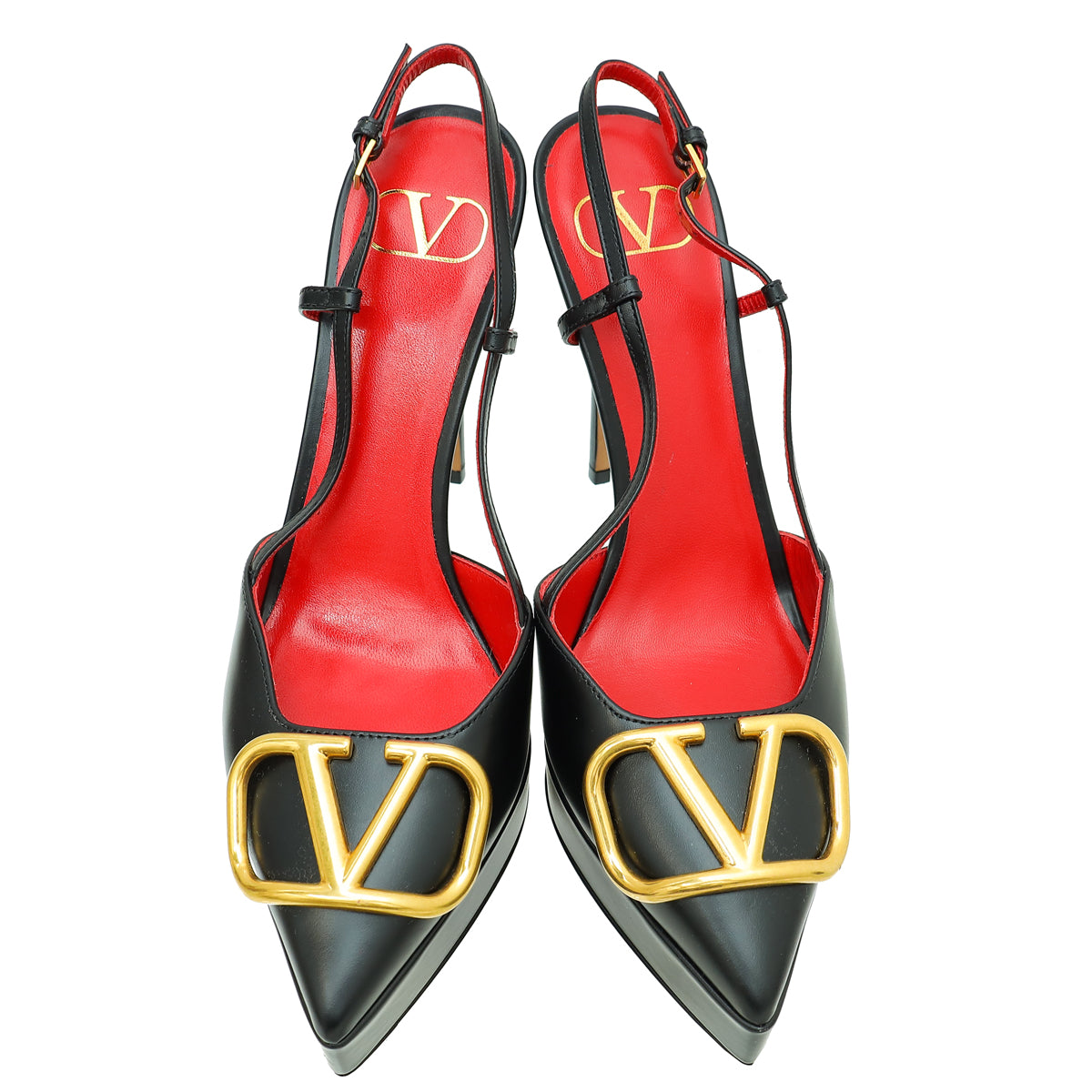 Valentino Black Vlogo Platform Slingback Pump 38.5-Valentino-THE CLOSET