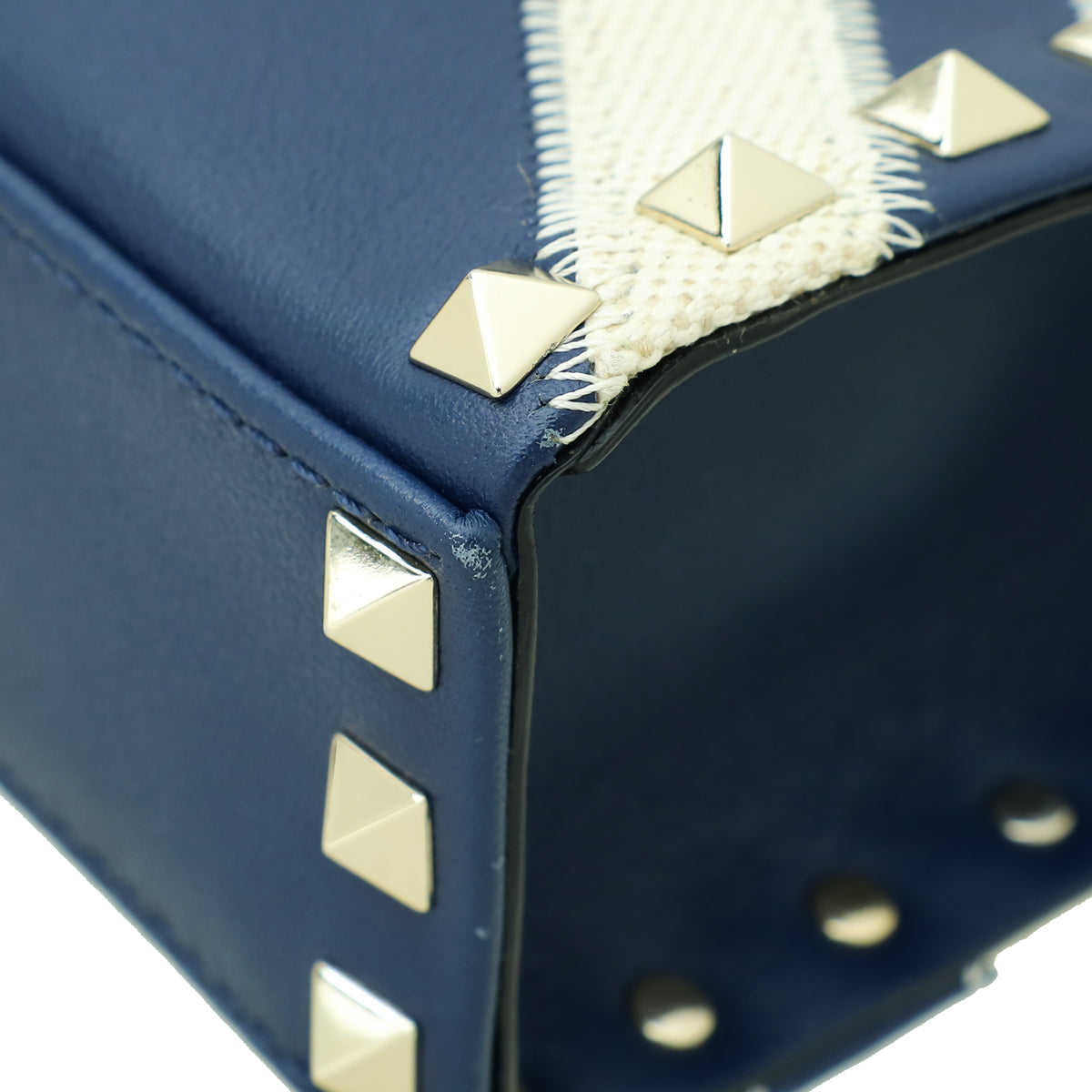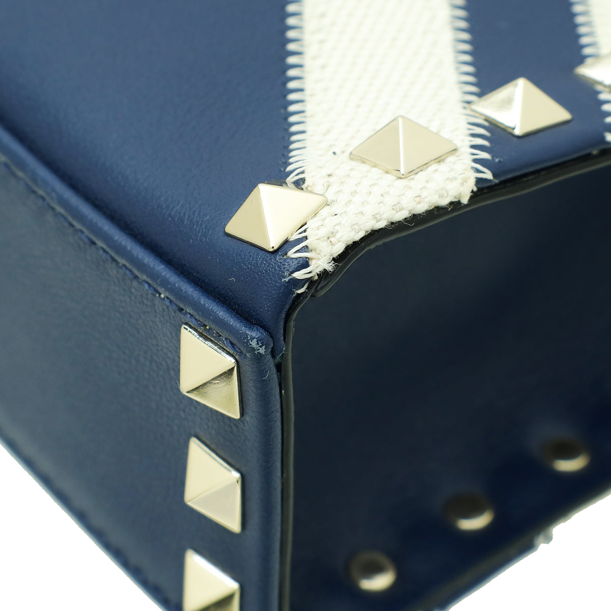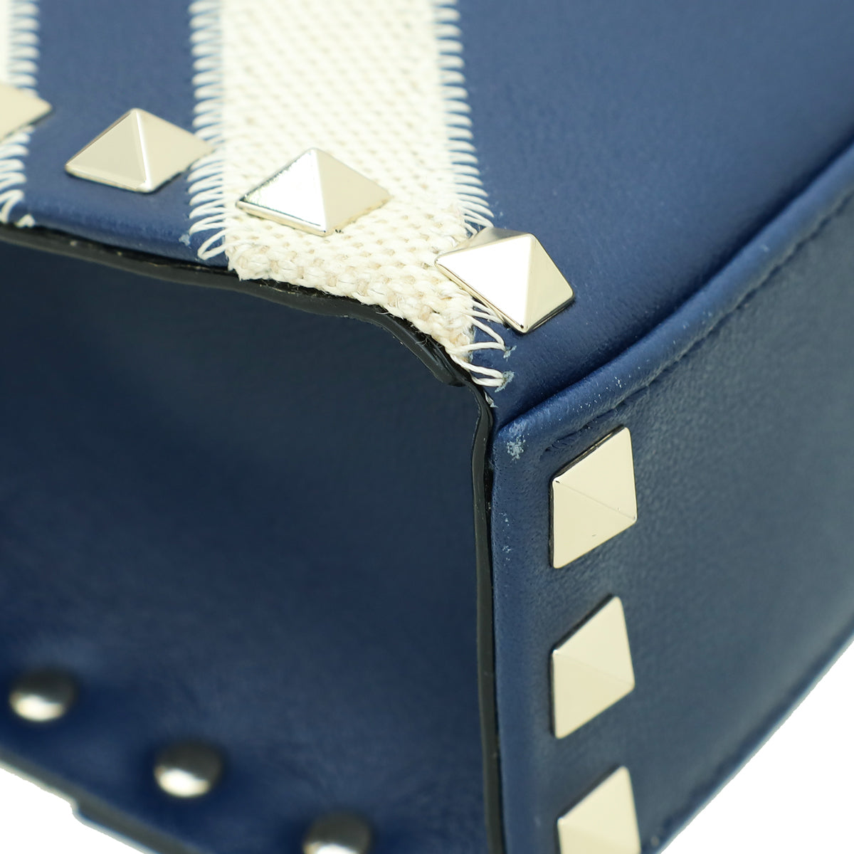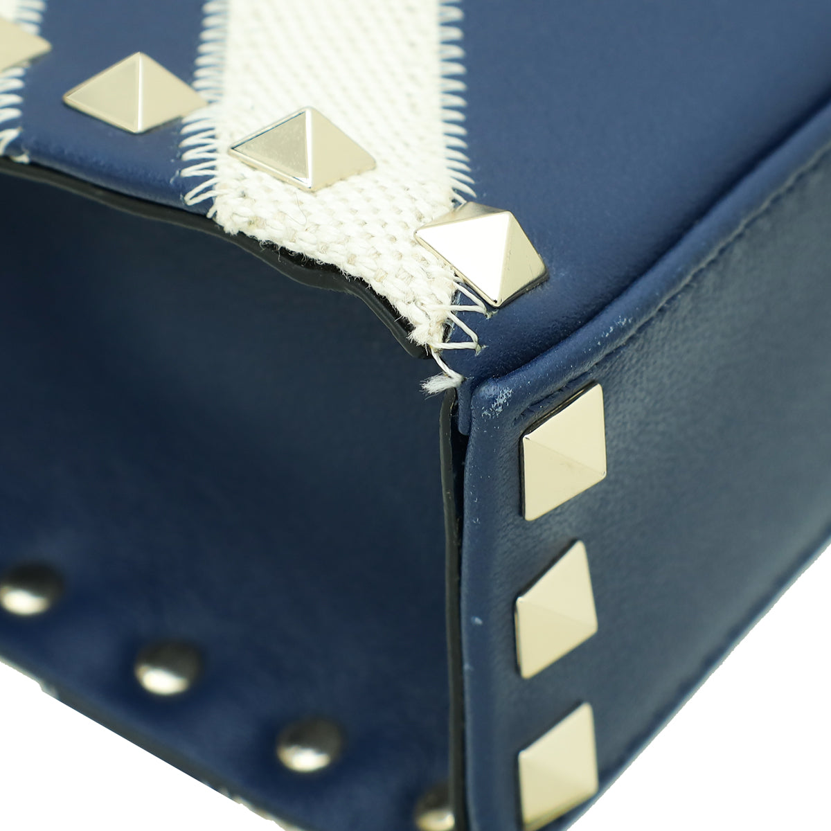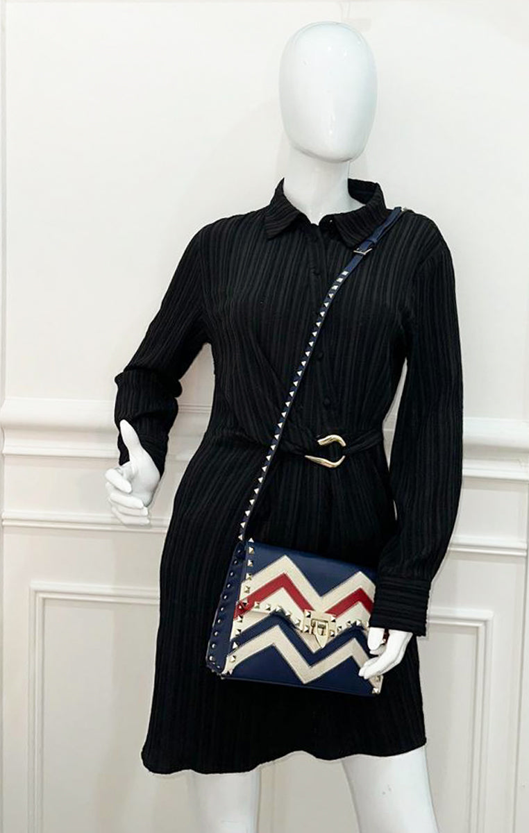 Material: Navy Blue/White/Red Chevron Leather and Canvas with Studs