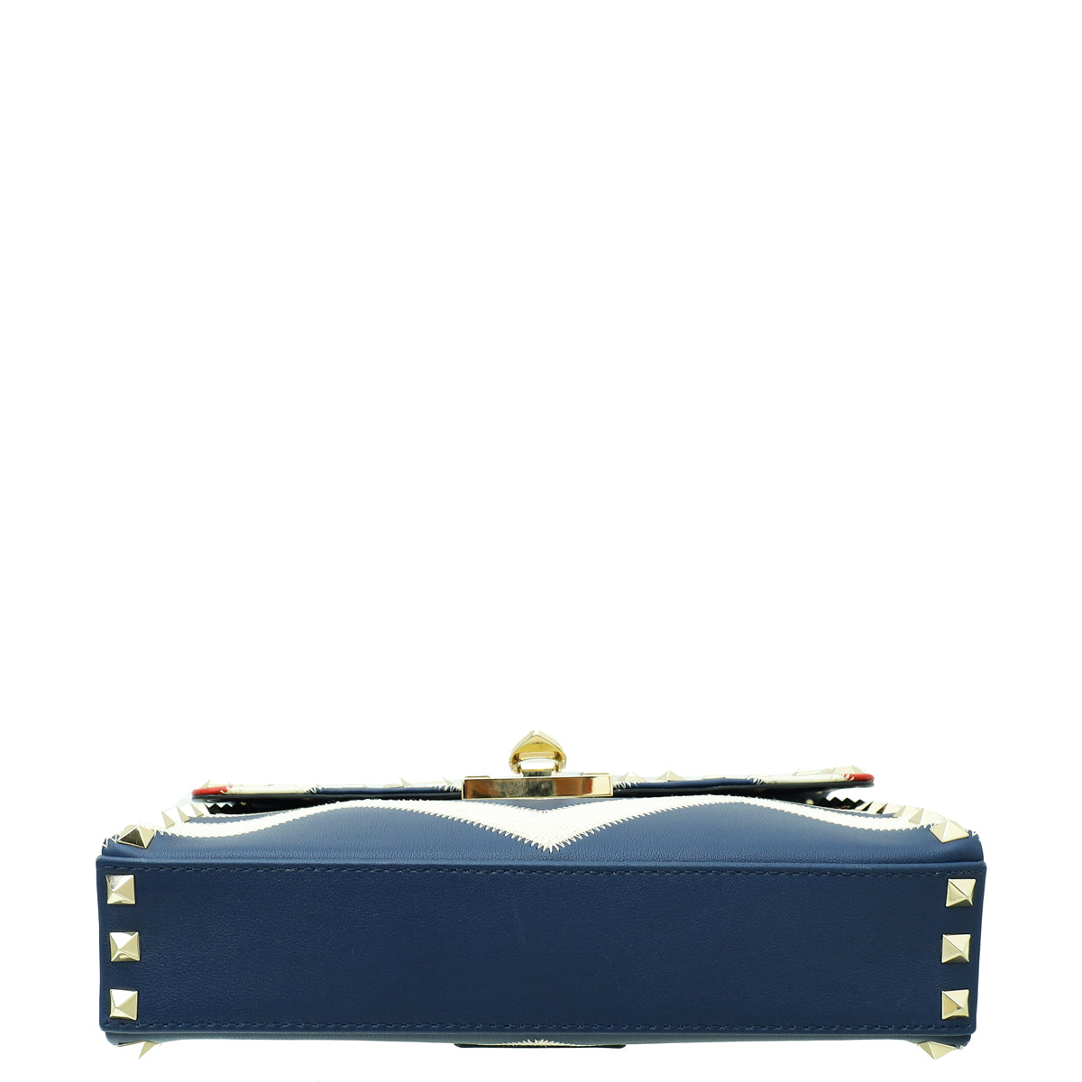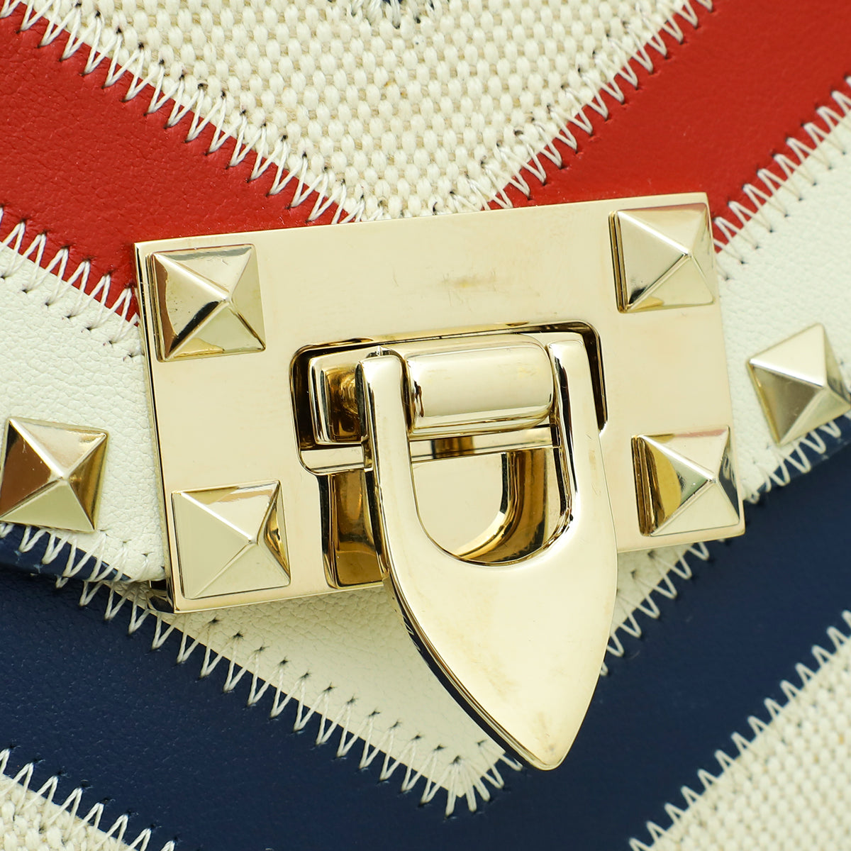 Valentino Tricolor Rockstud Chevron Print Flap Shoulder Bag