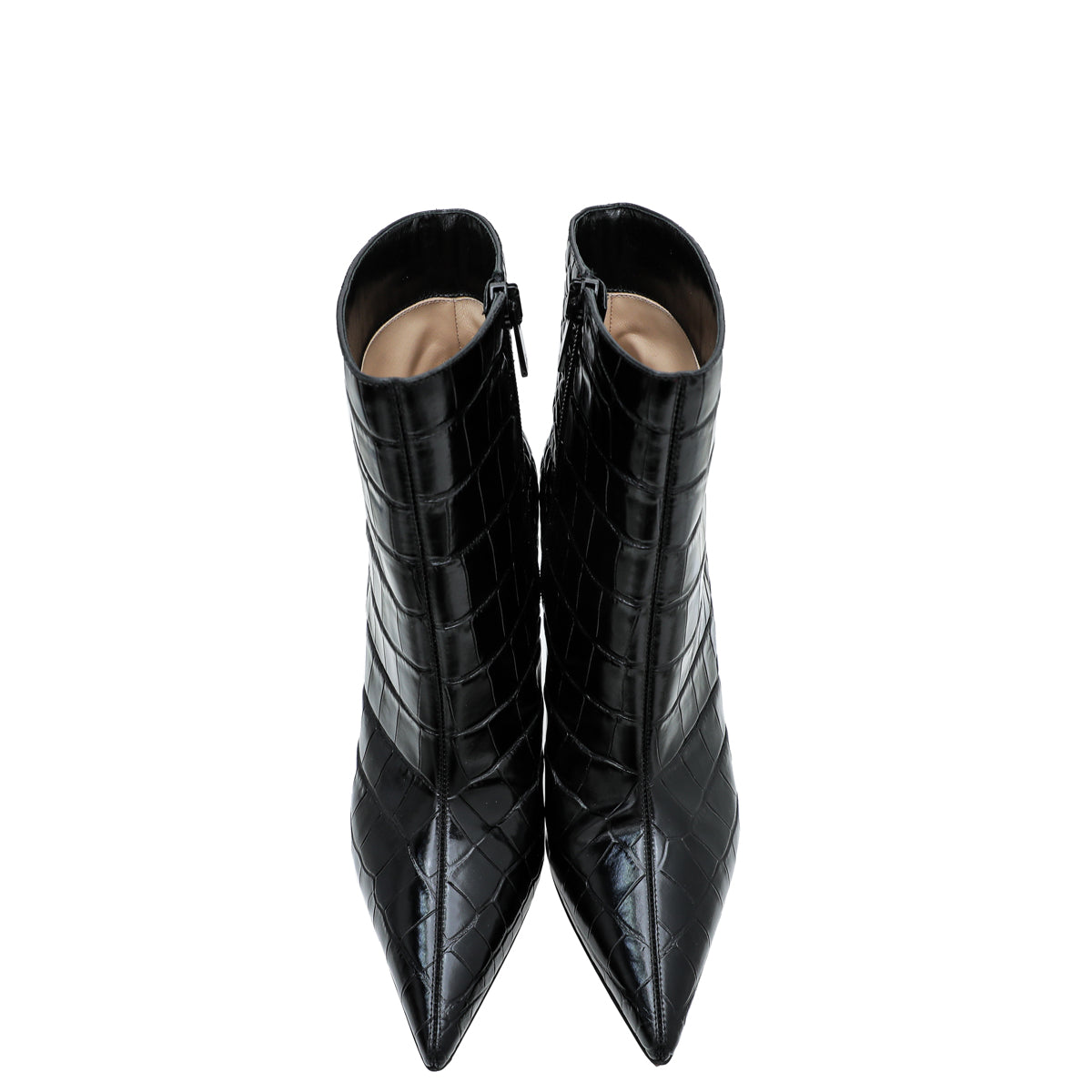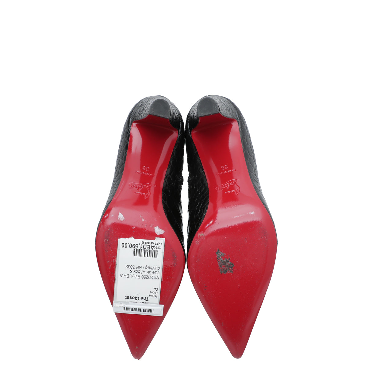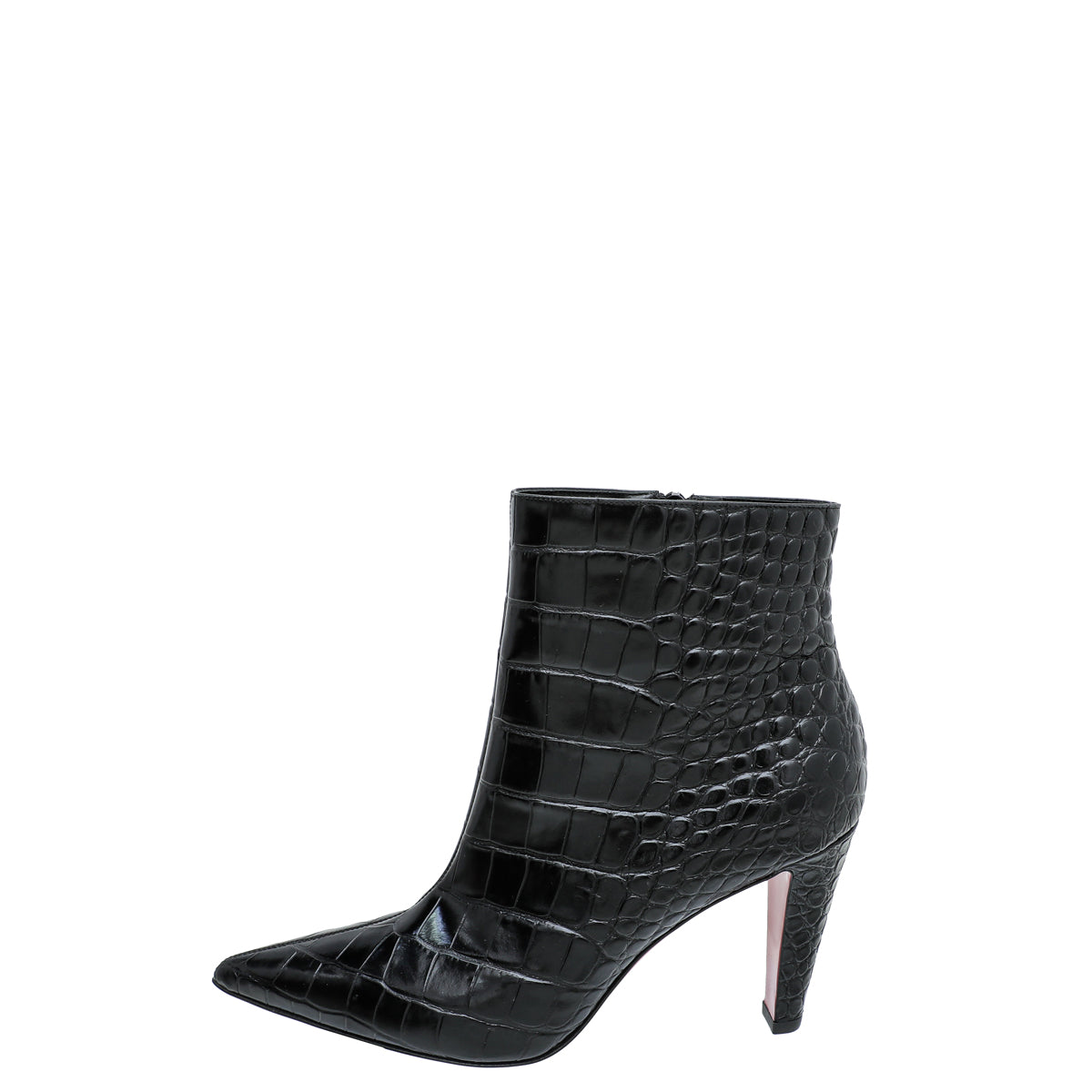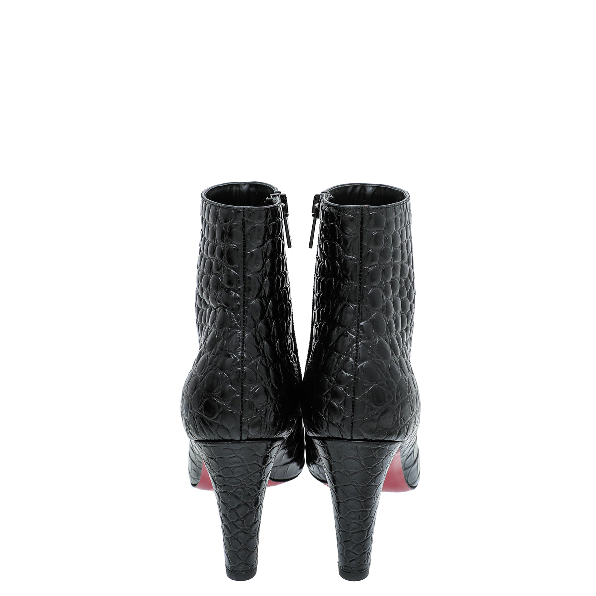Christian Louboutin Black Croc Slimini Embossed Ankle Boots 38
