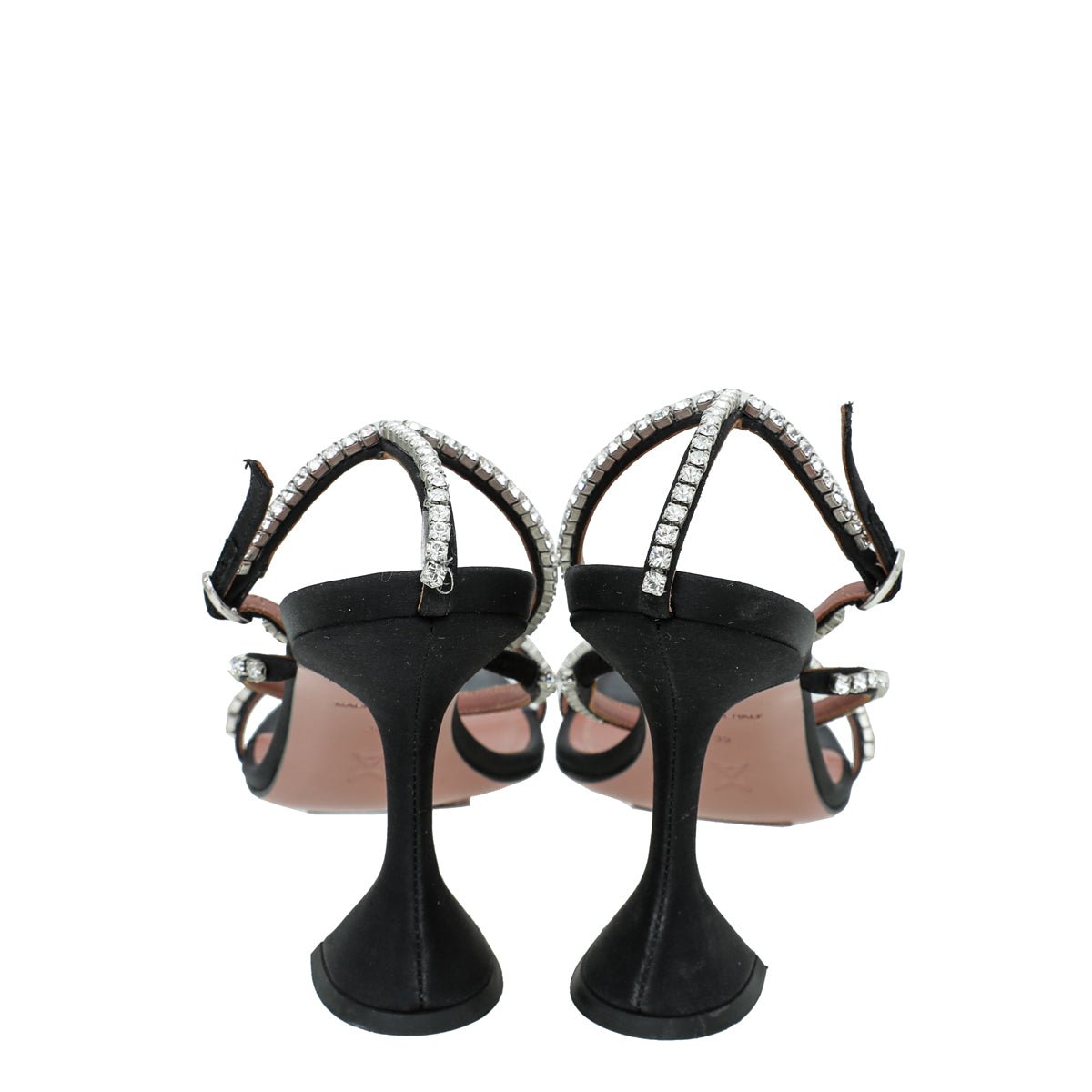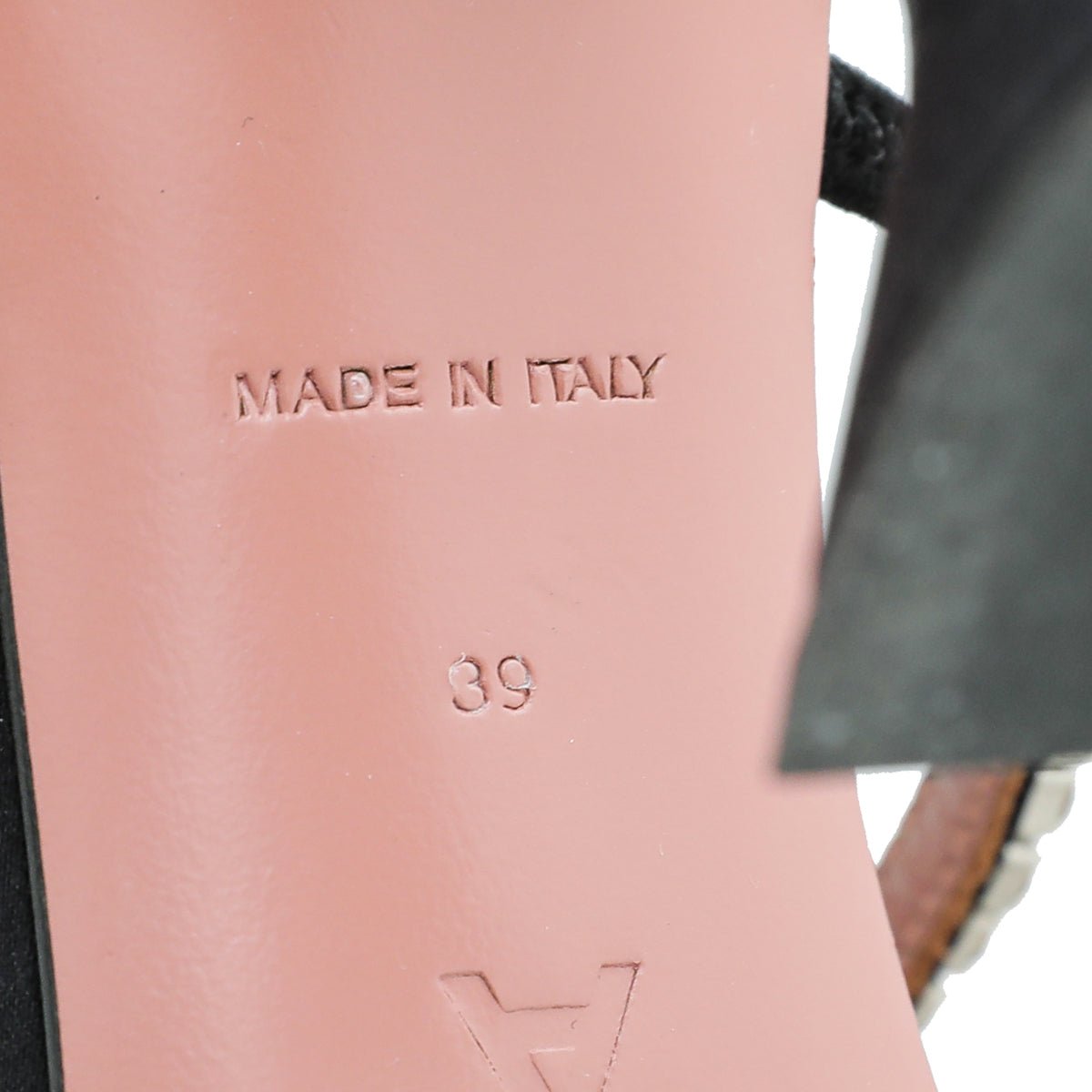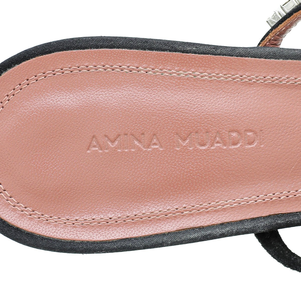 Amina Muaddi Black Satin Gilda 95 Embellished Sandal 39