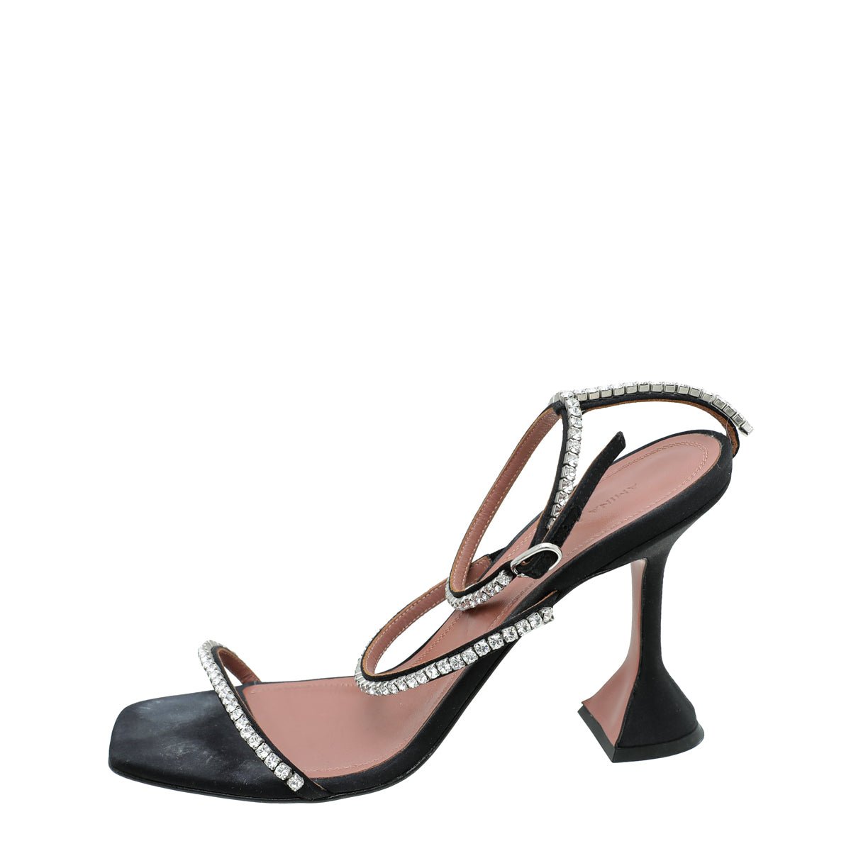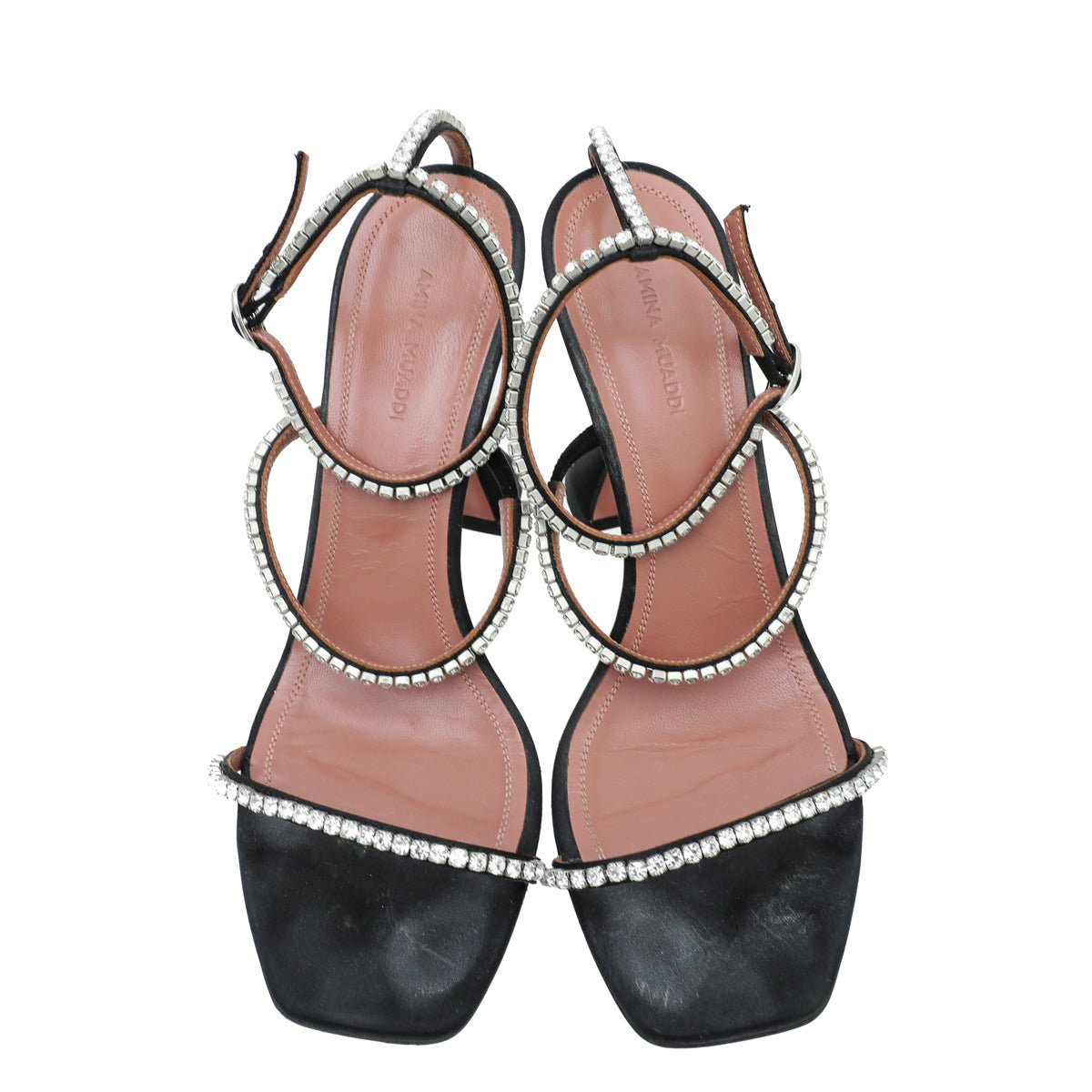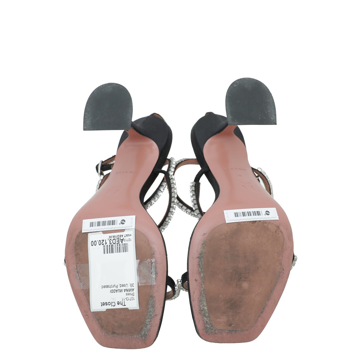 Amina Muaddi Black Satin Gilda 95 Embellished Sandal 39-Amina Muaddi-THE CLOSET