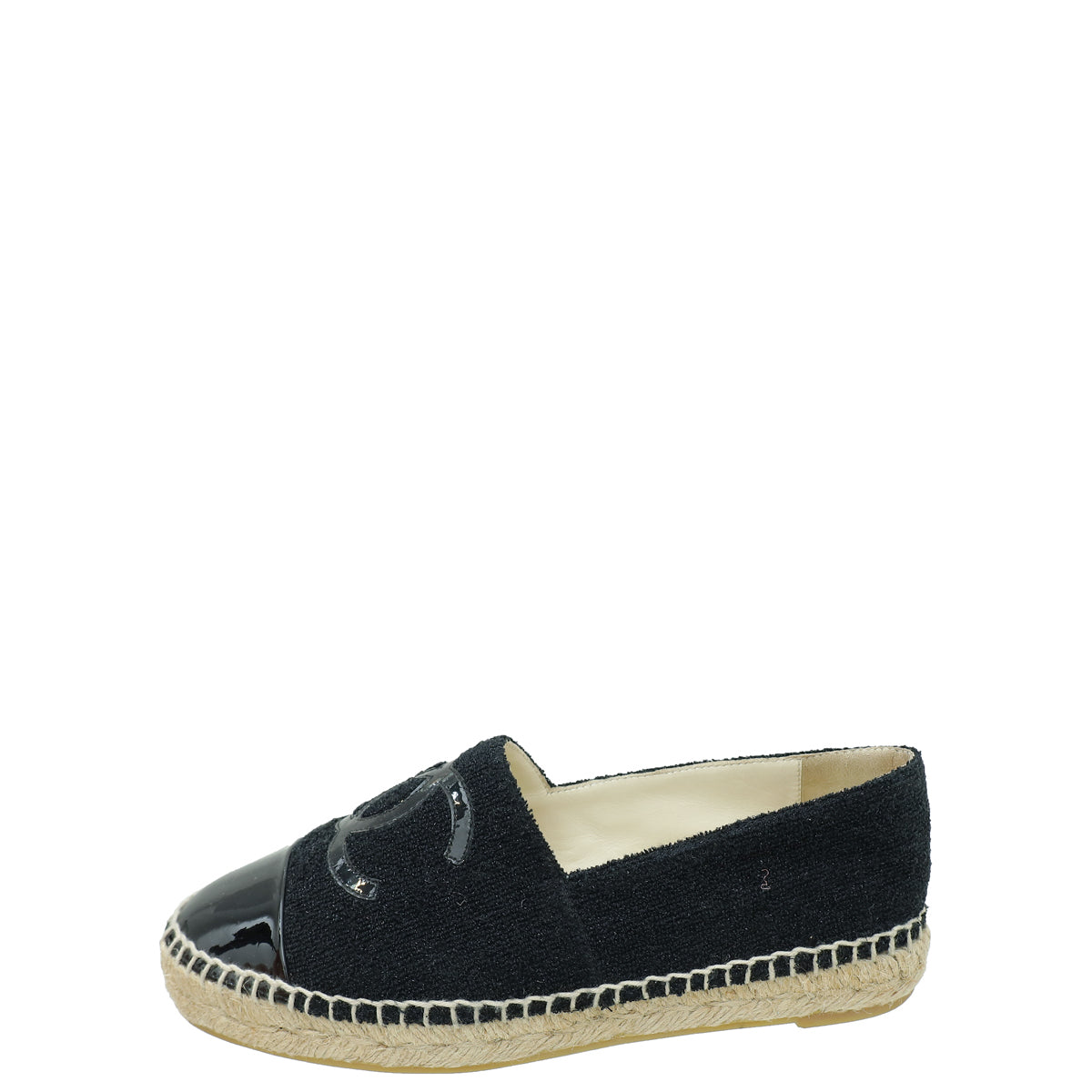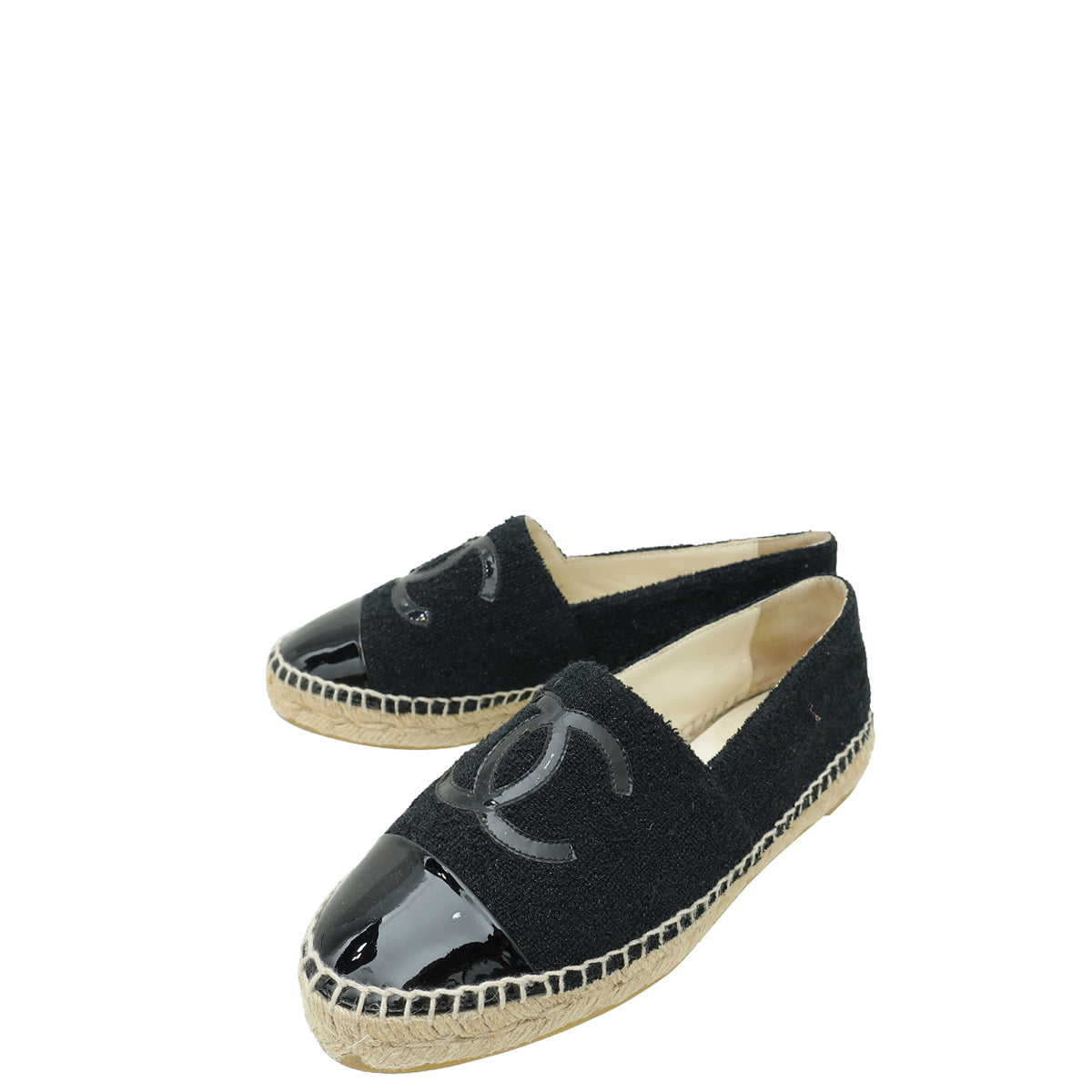 Chanel Black CC Cap Toe Fabric Espadrille 36