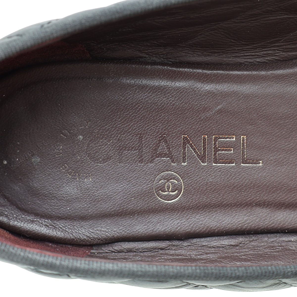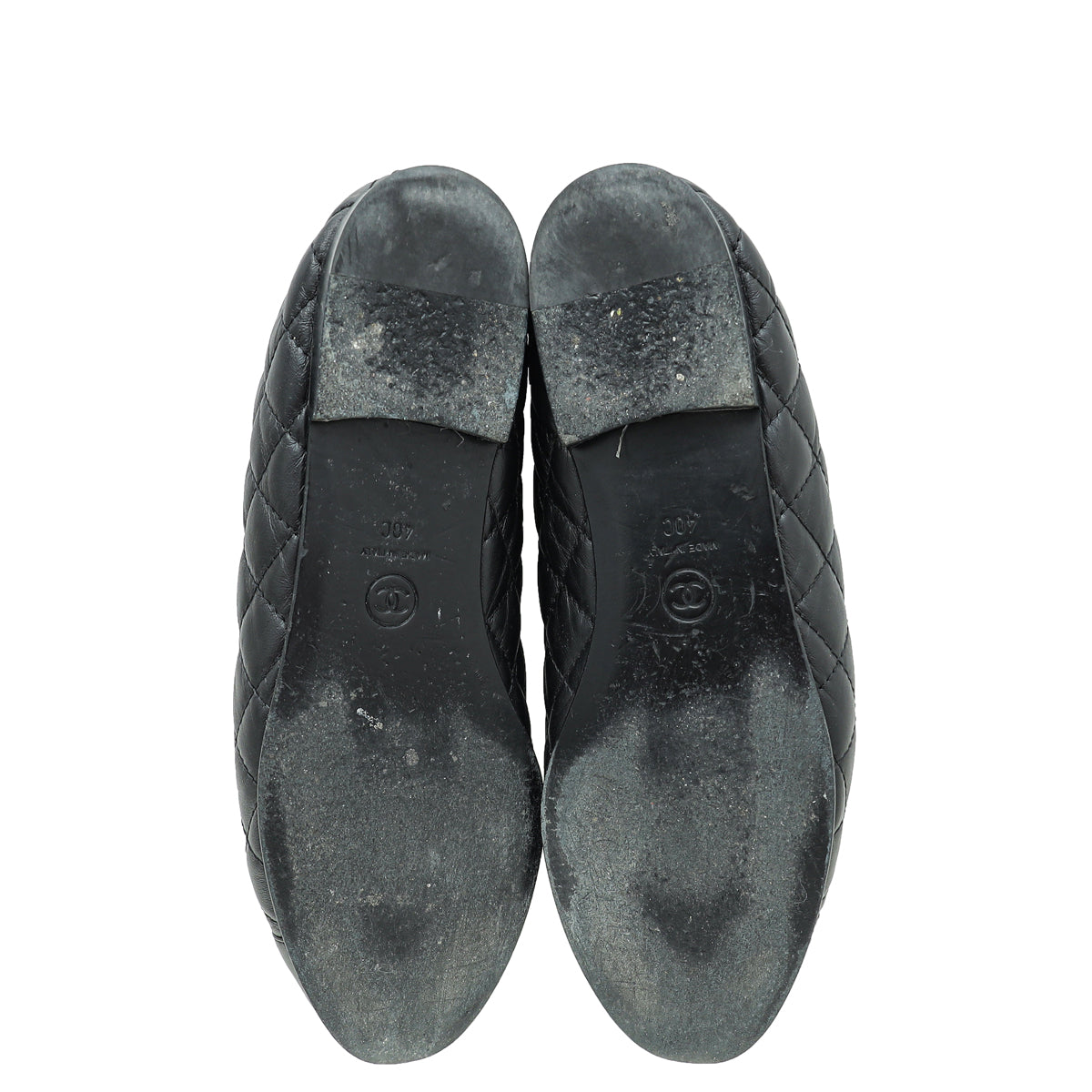 Chanel Black CC Cap Toe Quilted Flat Ballerina 40