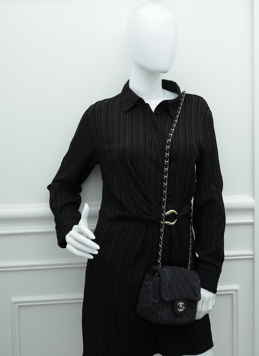 Chanel Black CC Print Denim Square Mini Bag