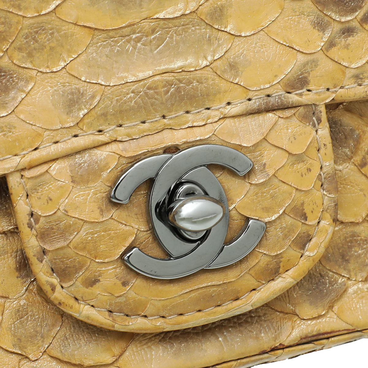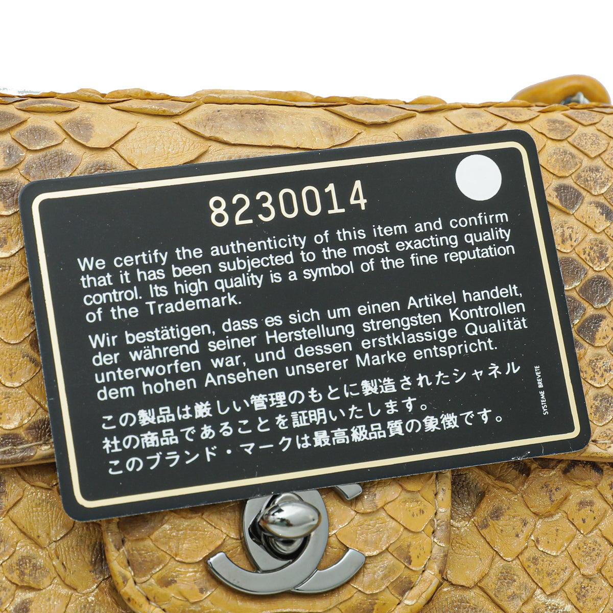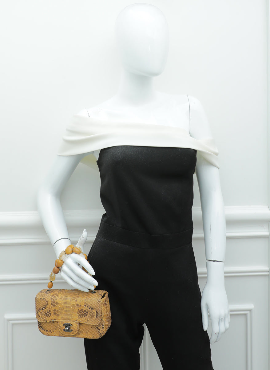 Chanel Cognac Snakeskin CC Kelly Mini Stone Handle Bag