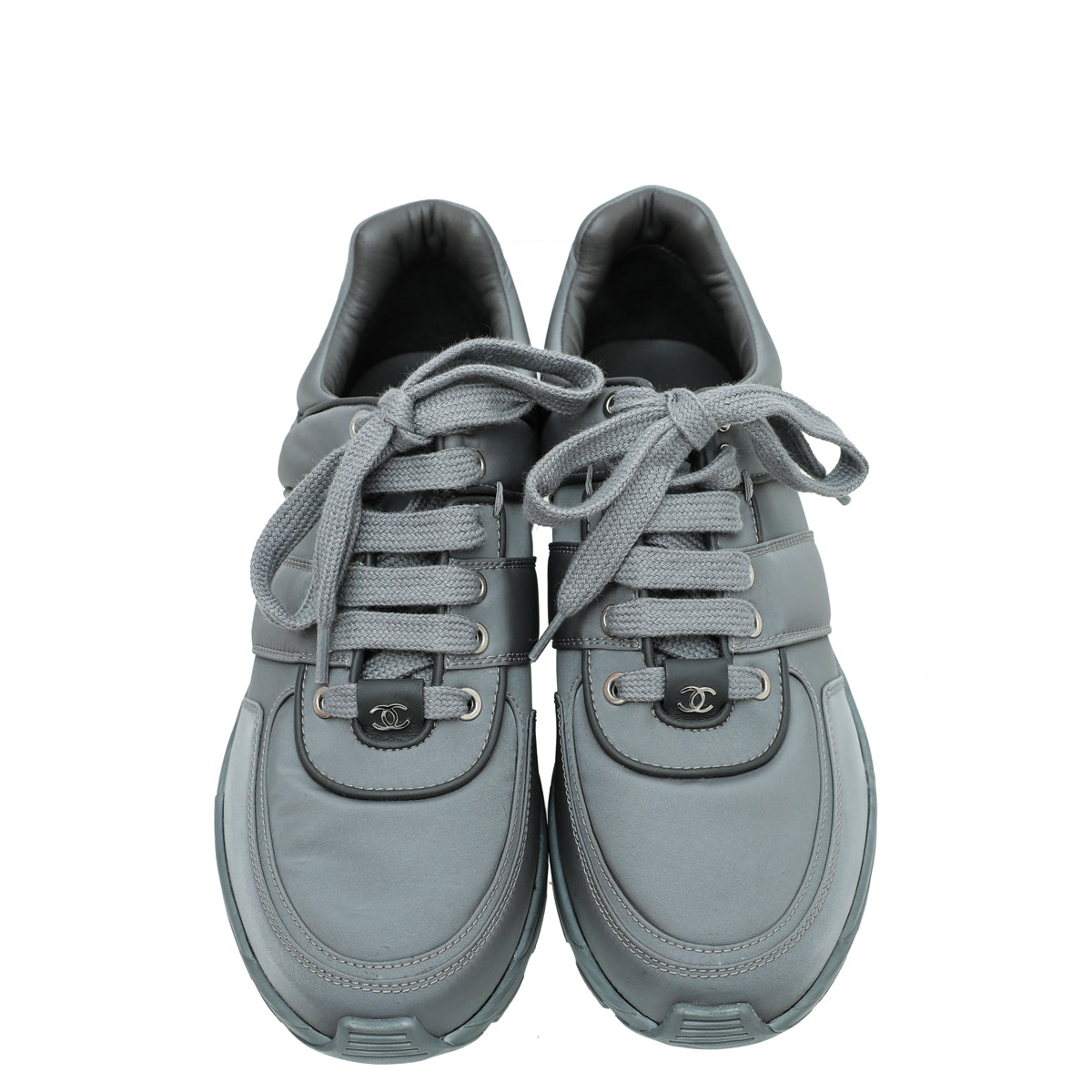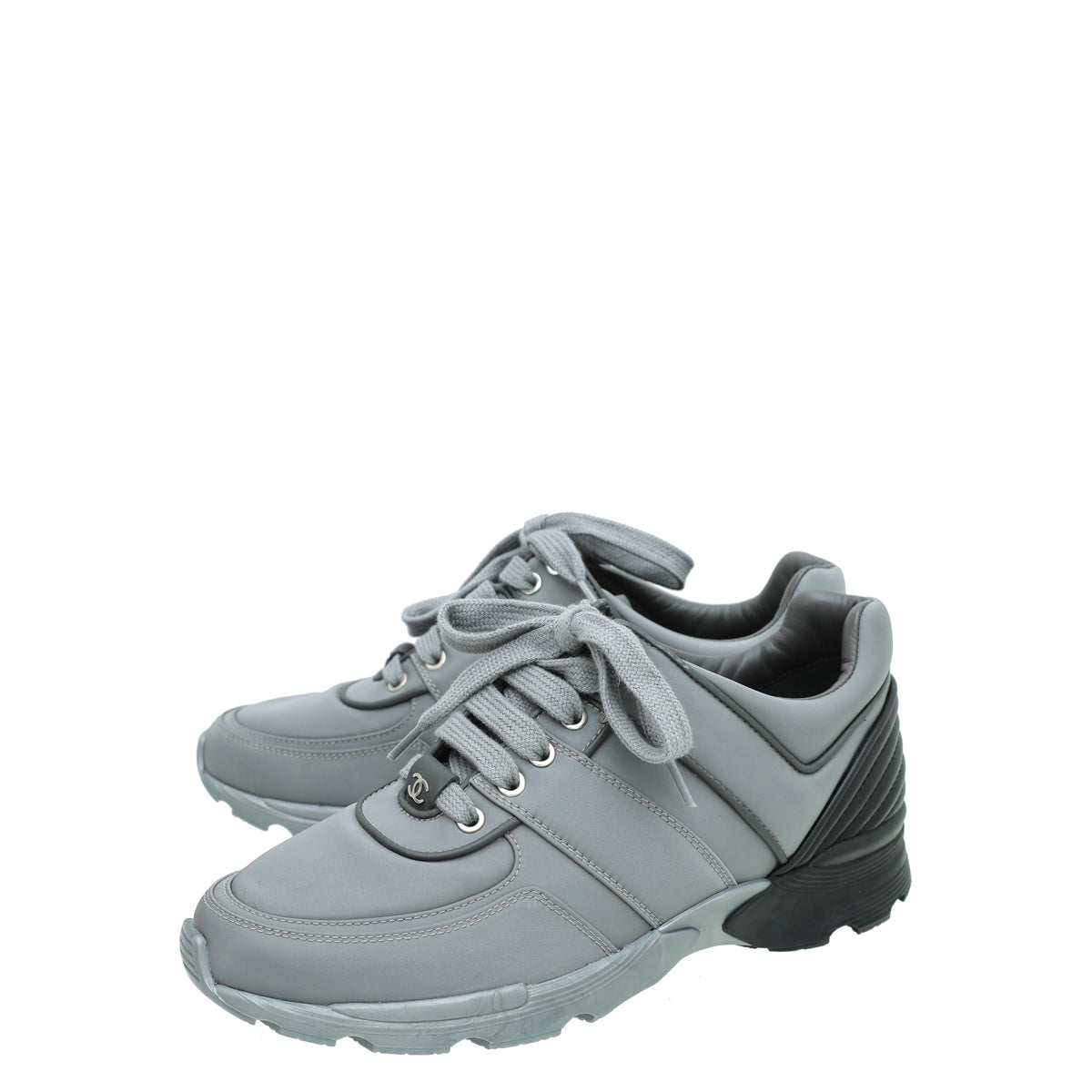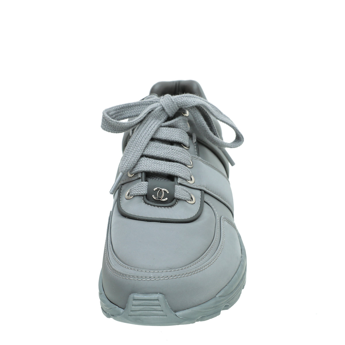 Chanel Grey CC Nylon Trainer Sneaker 38-Chanel-THE CLOSET