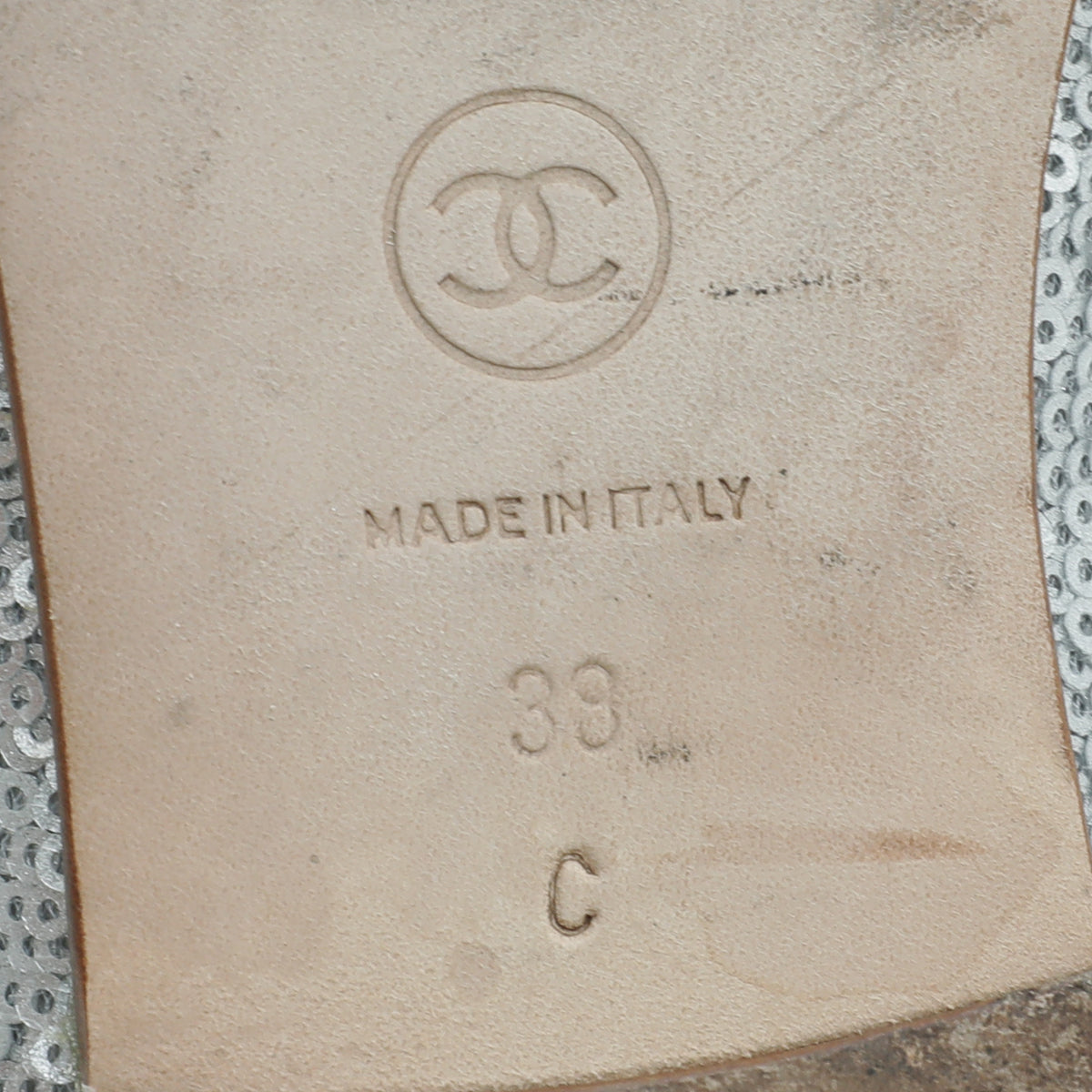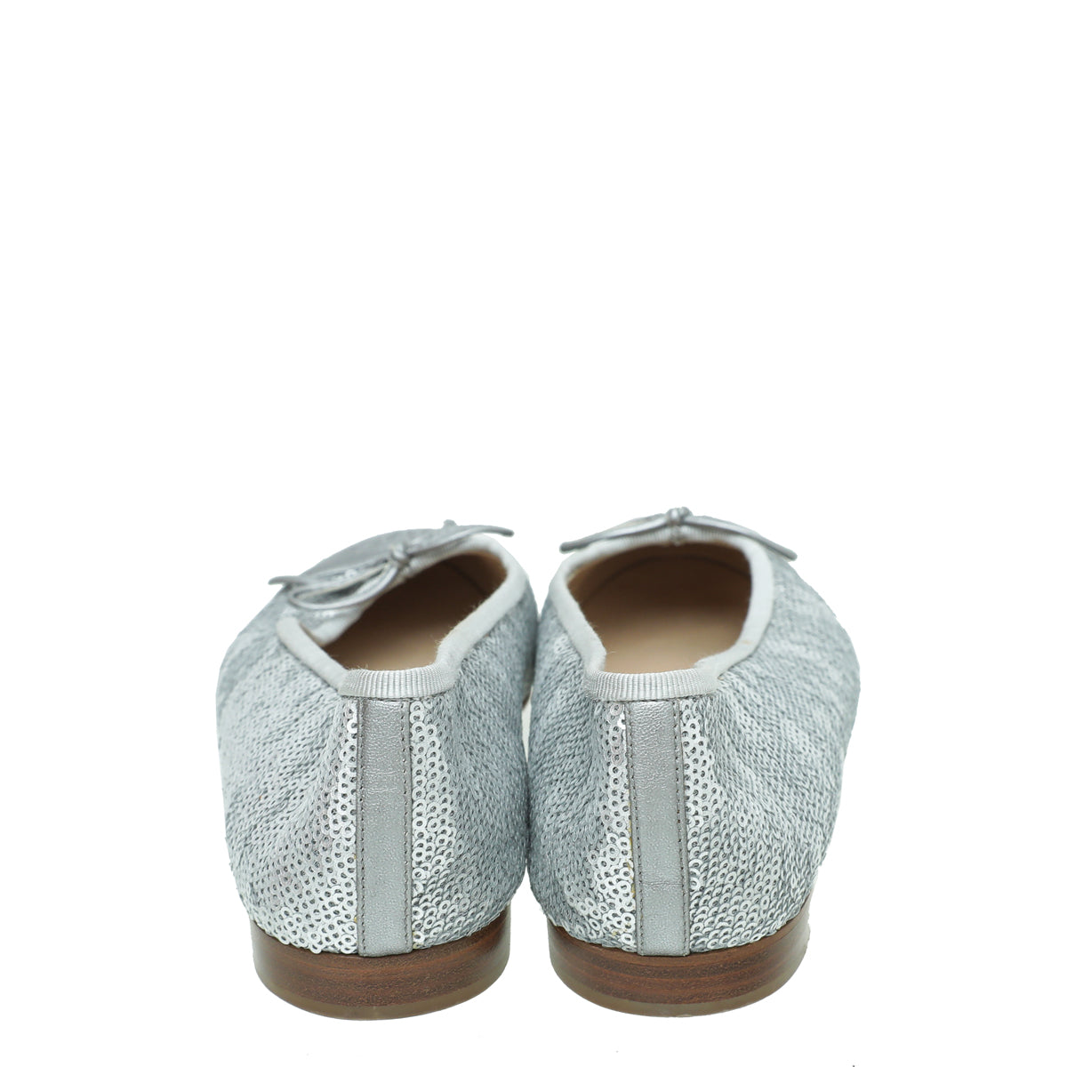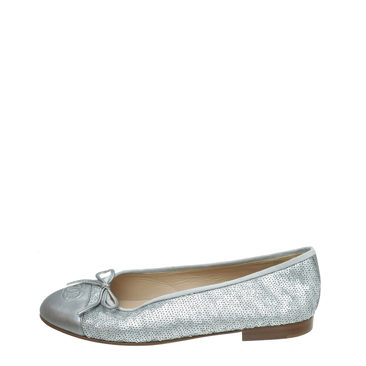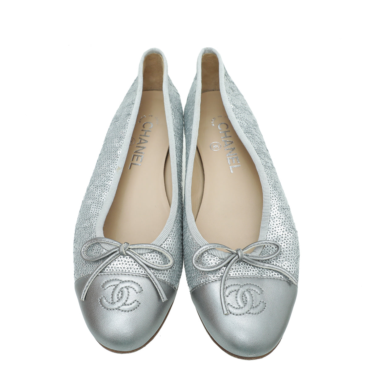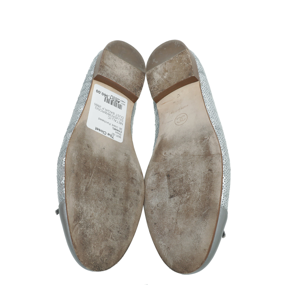 Chanel Metallic Silver CC Cap Toe Sequins Flat Ballet 38-Chanel-THE CLOSET