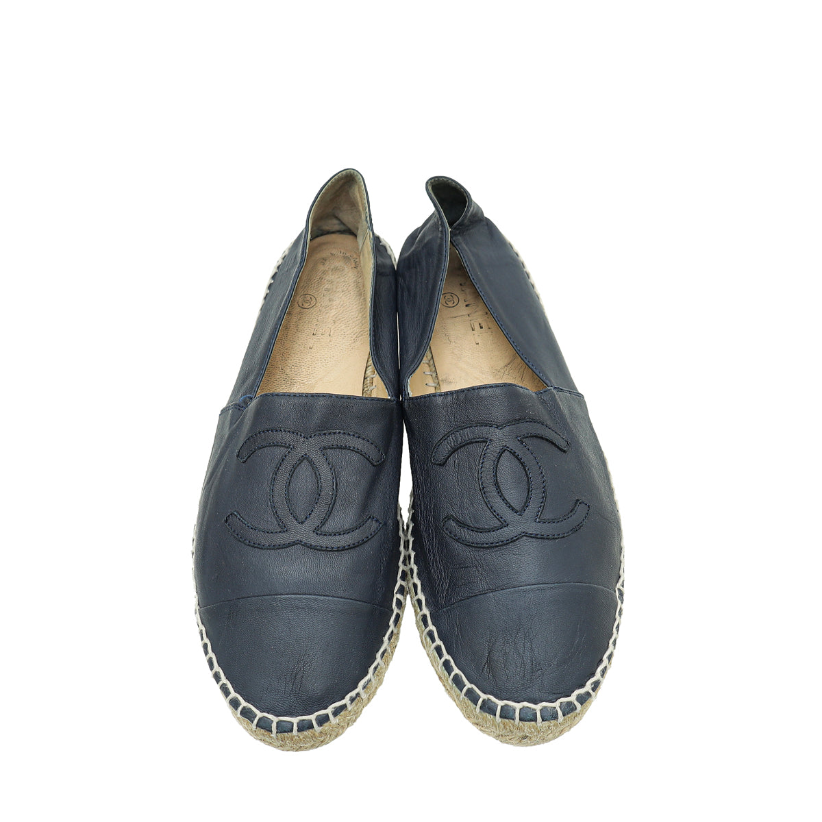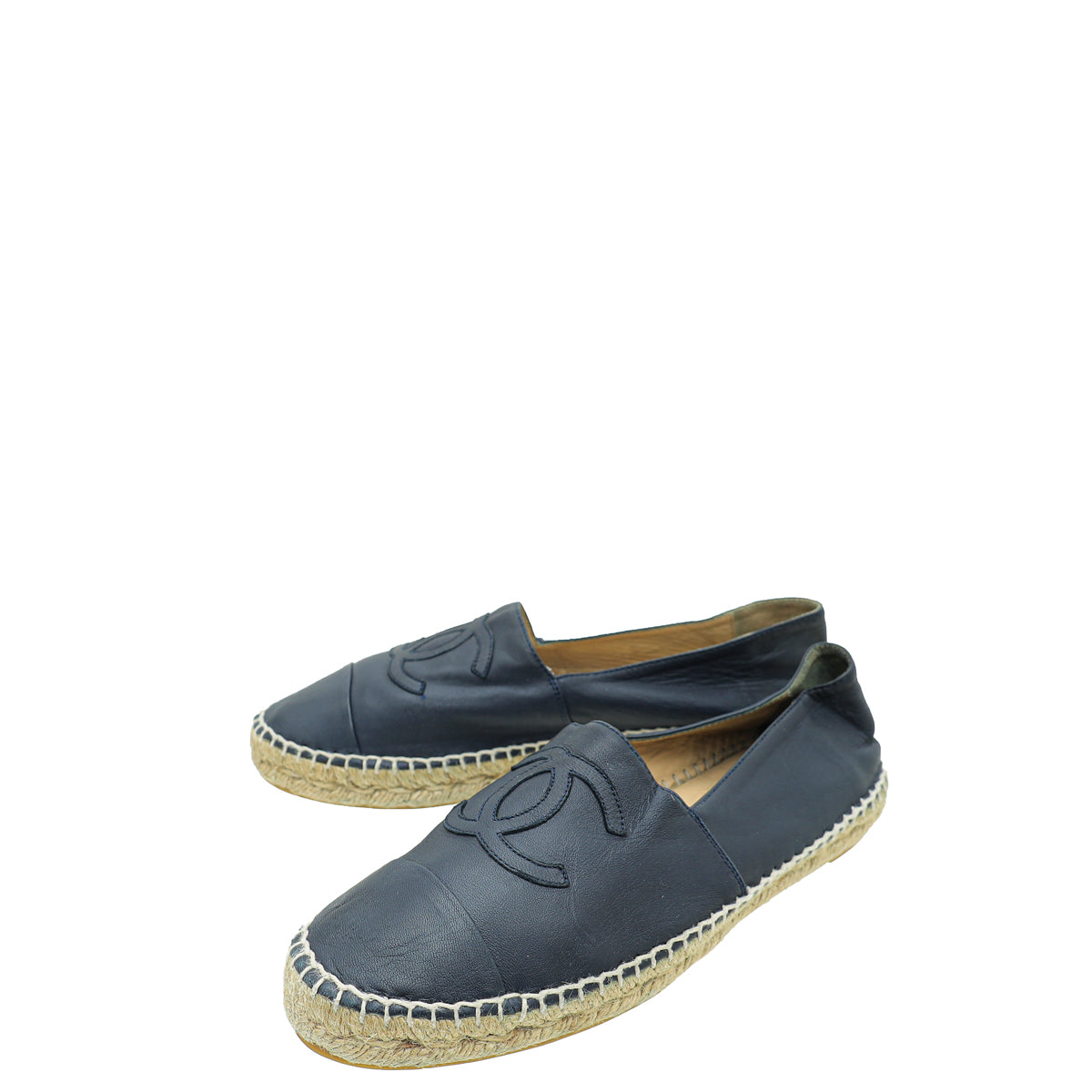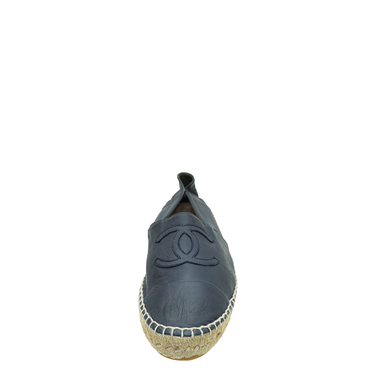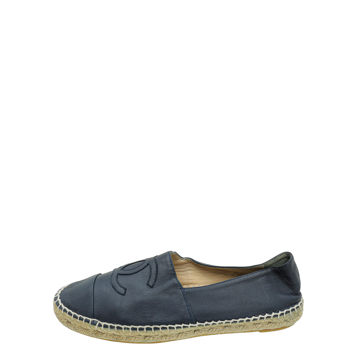 Chanel Navy Blue CC Captoe Lambskin Espadrille 40