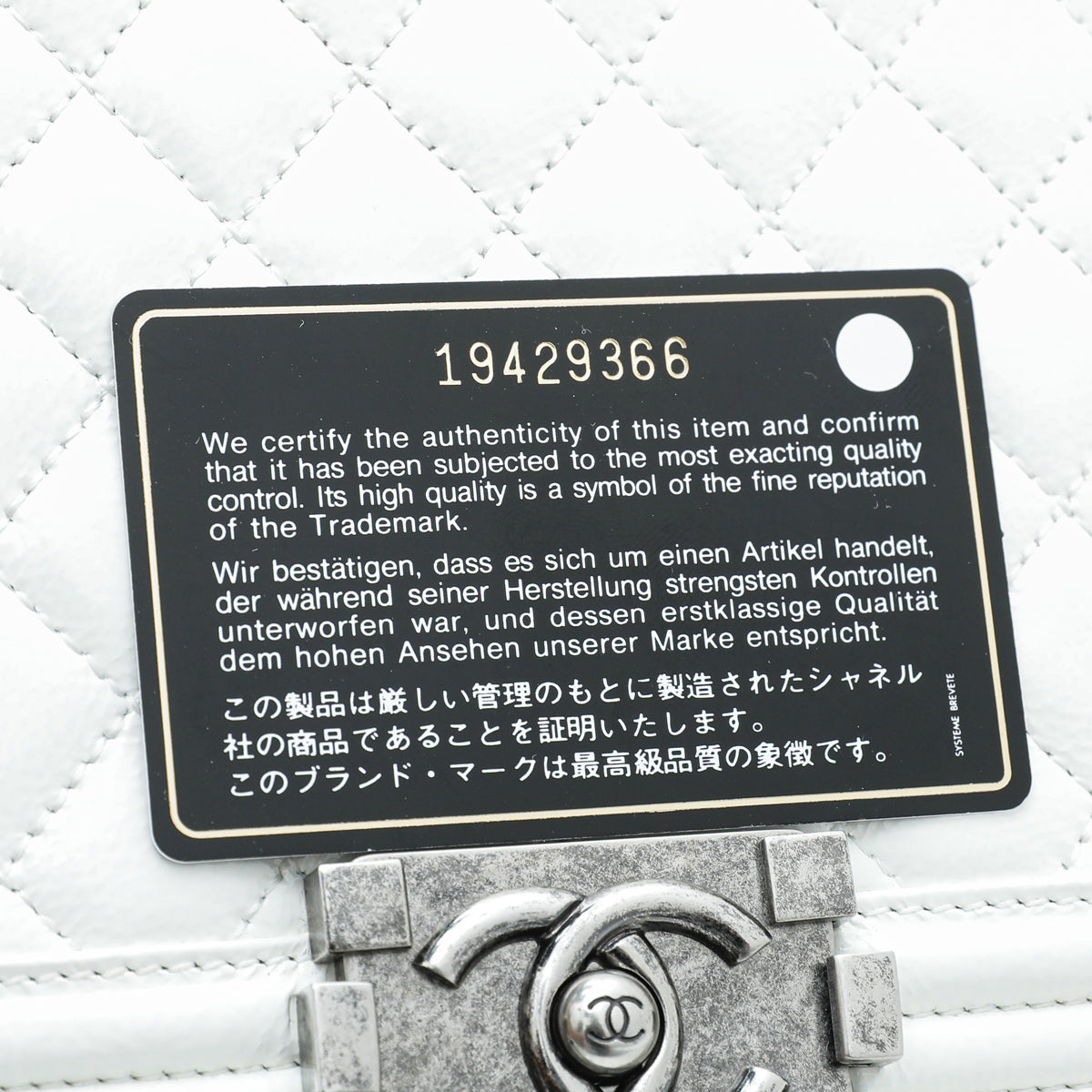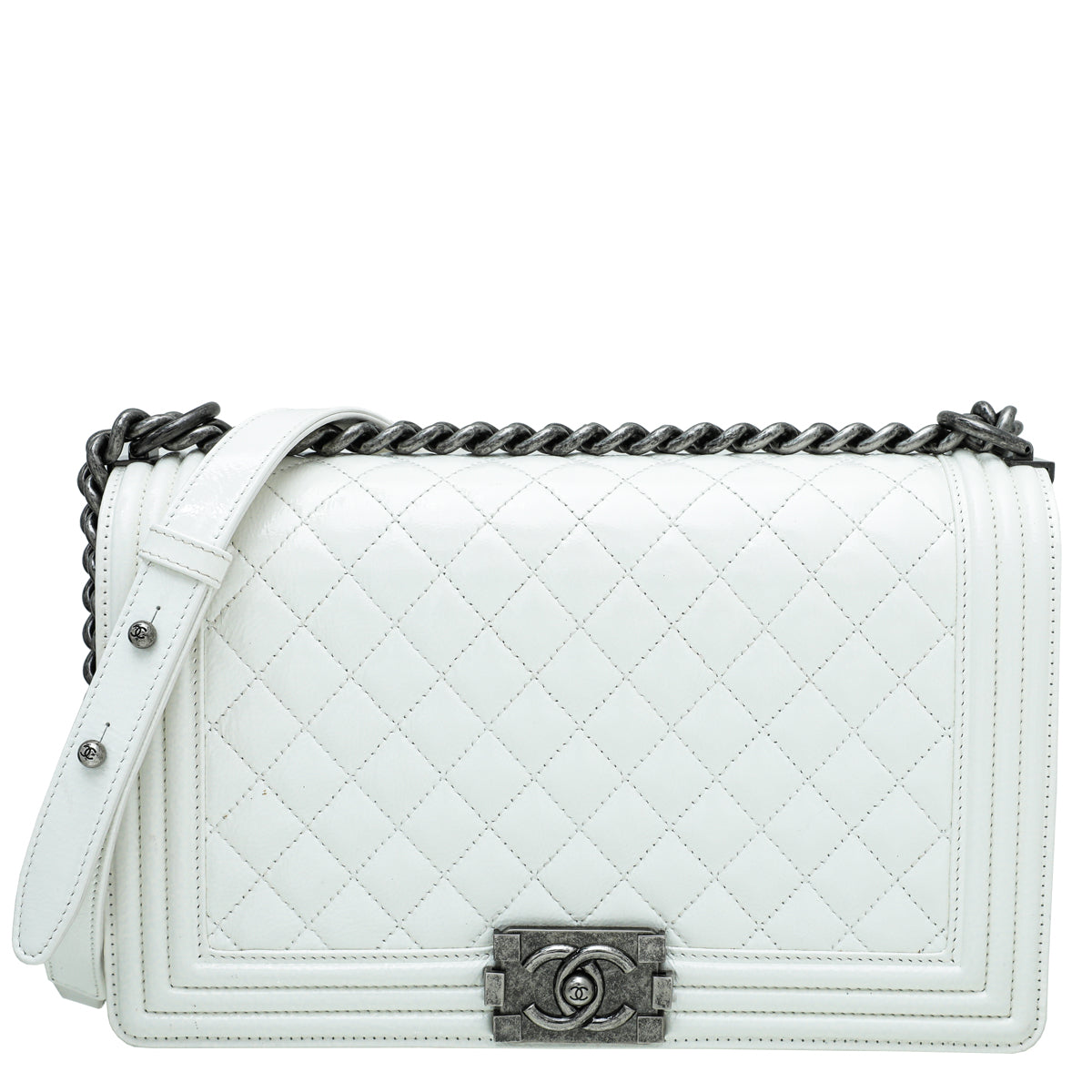 Material: White Quilted Calfskin Leather