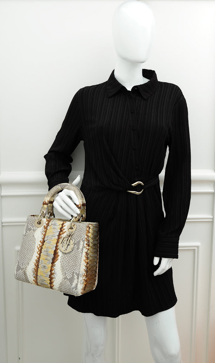 Christian Dior Beige Python Ombre Lady Dior Medium Bag