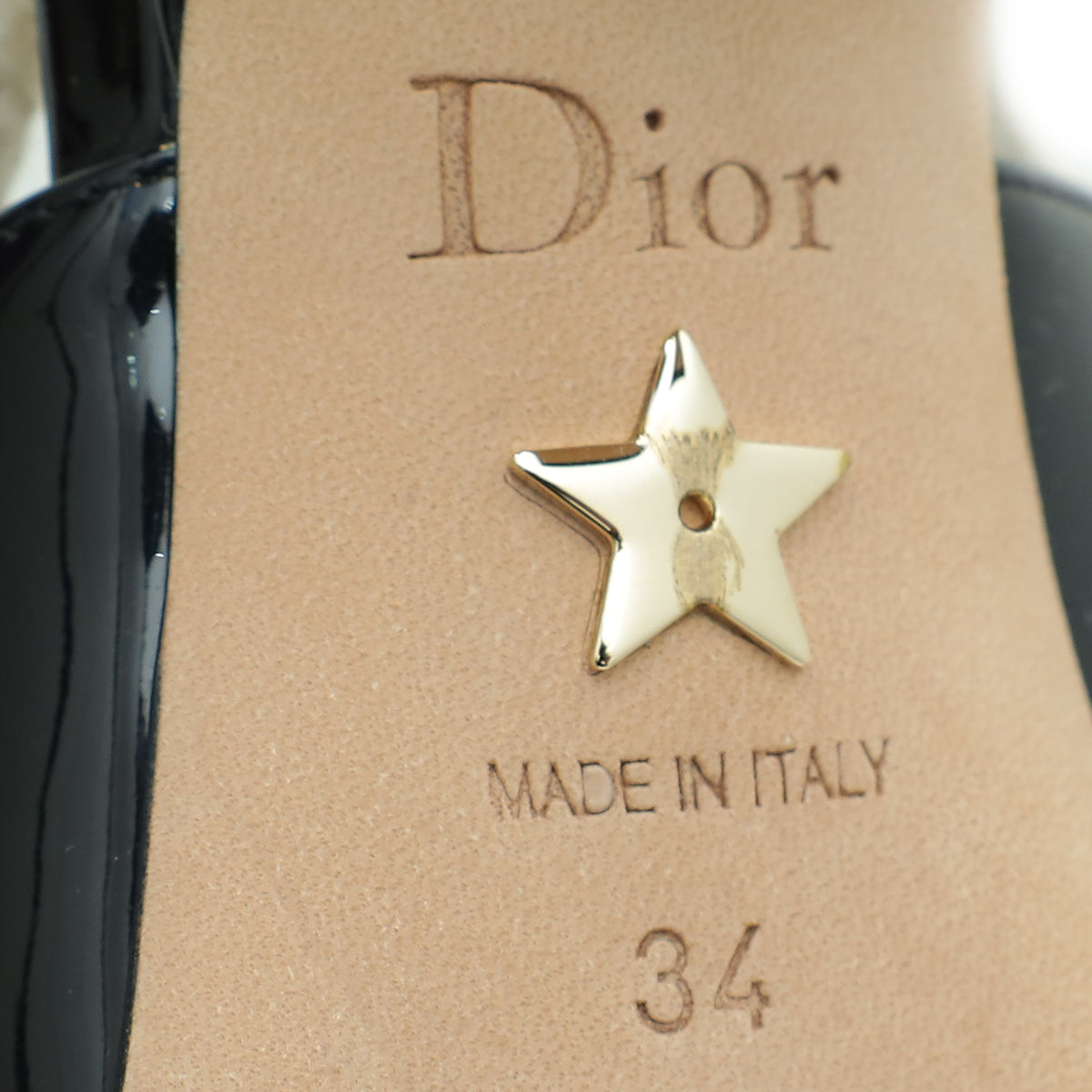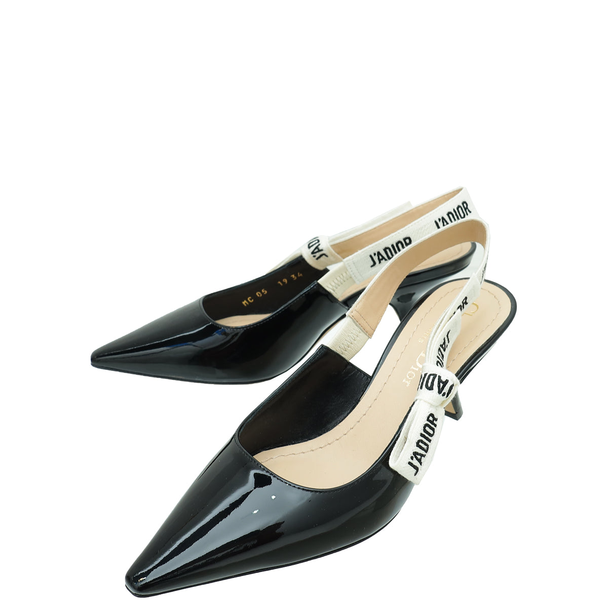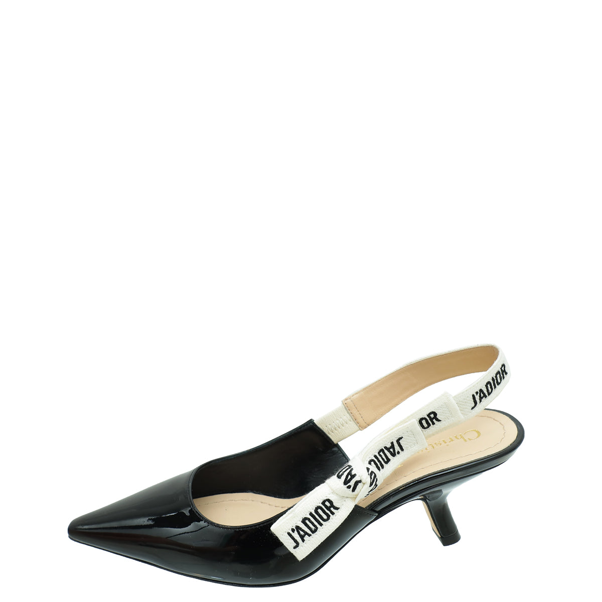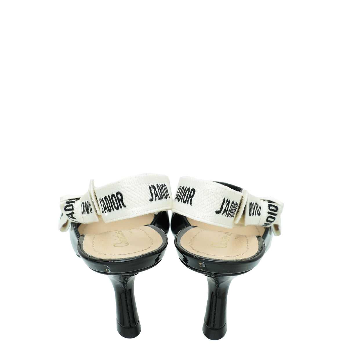 Material: Black Patent Leather with 'J'ADIOR' Embroidered Cotton Ribbon