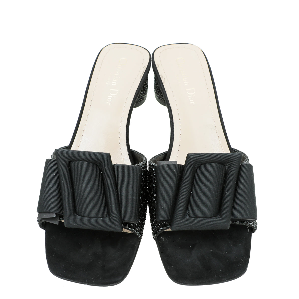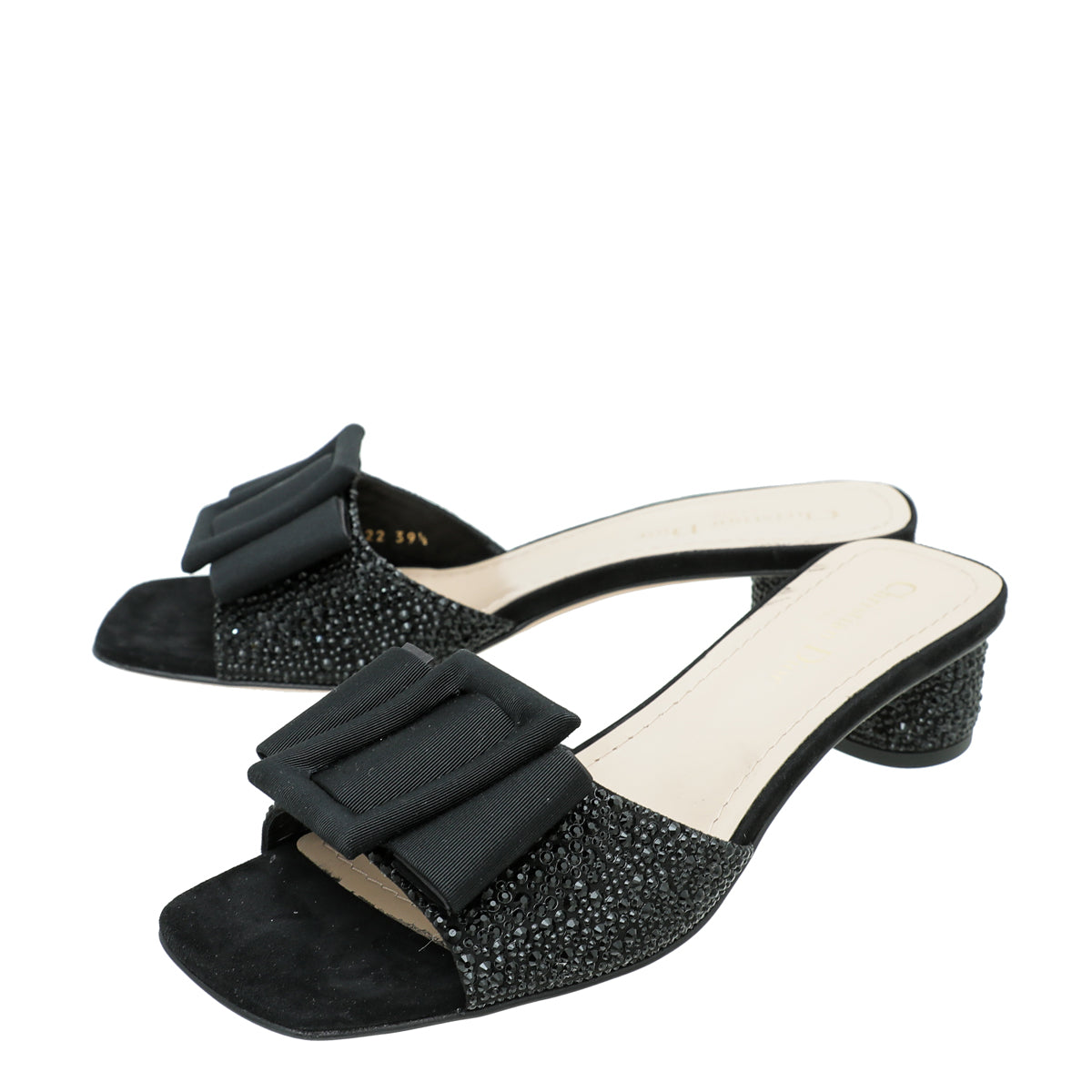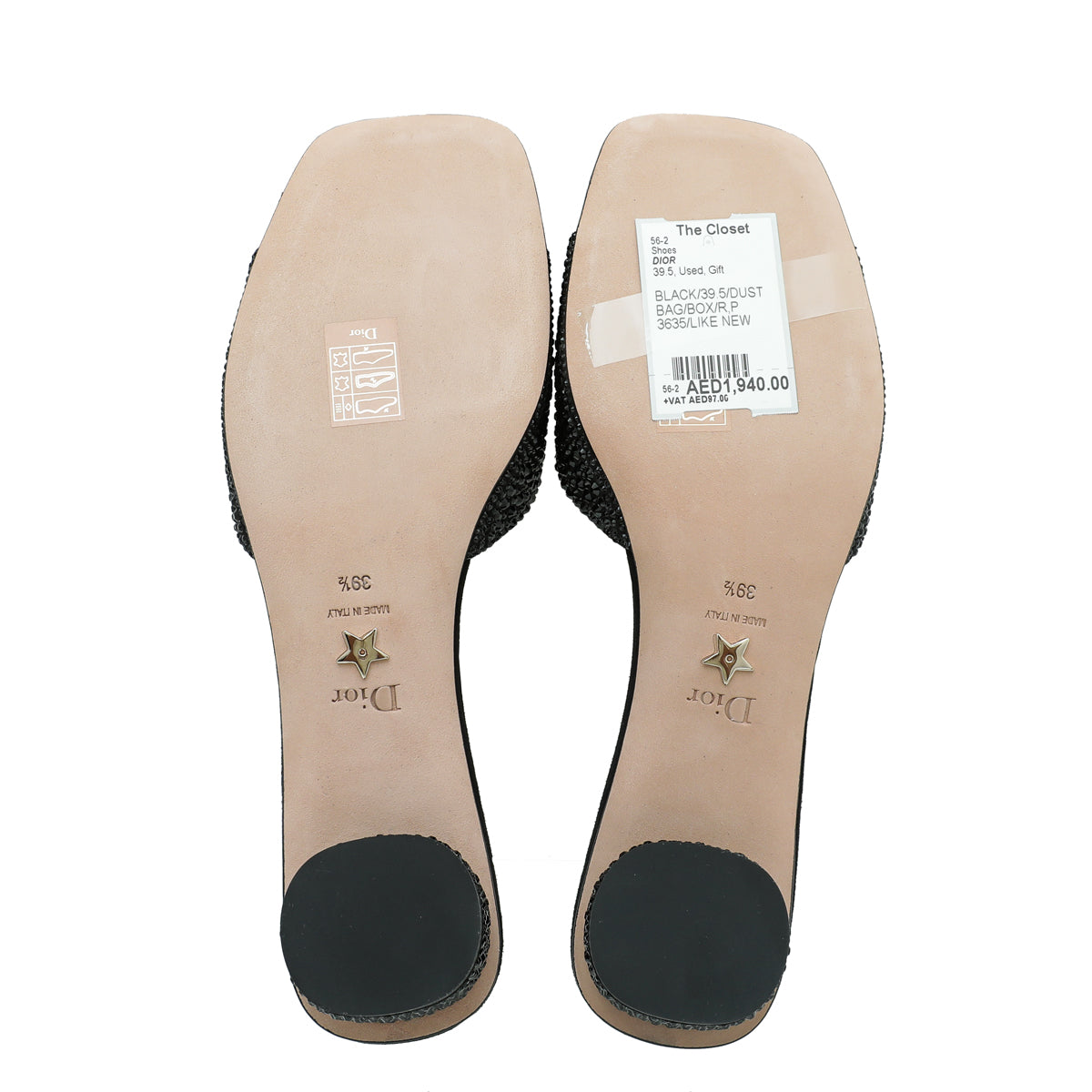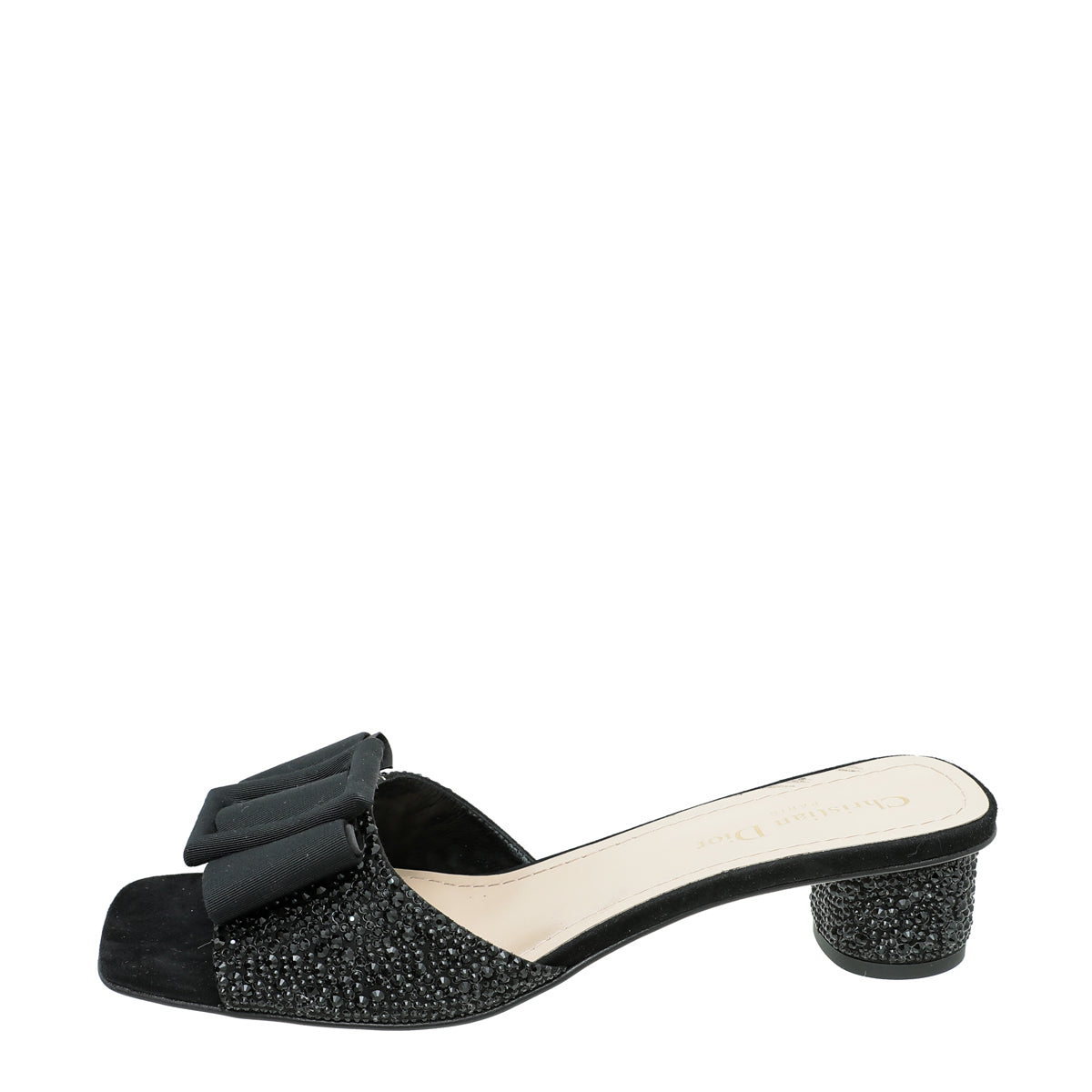 Christian Dior Black Suede Idylle Strass Slide Mules 39.5