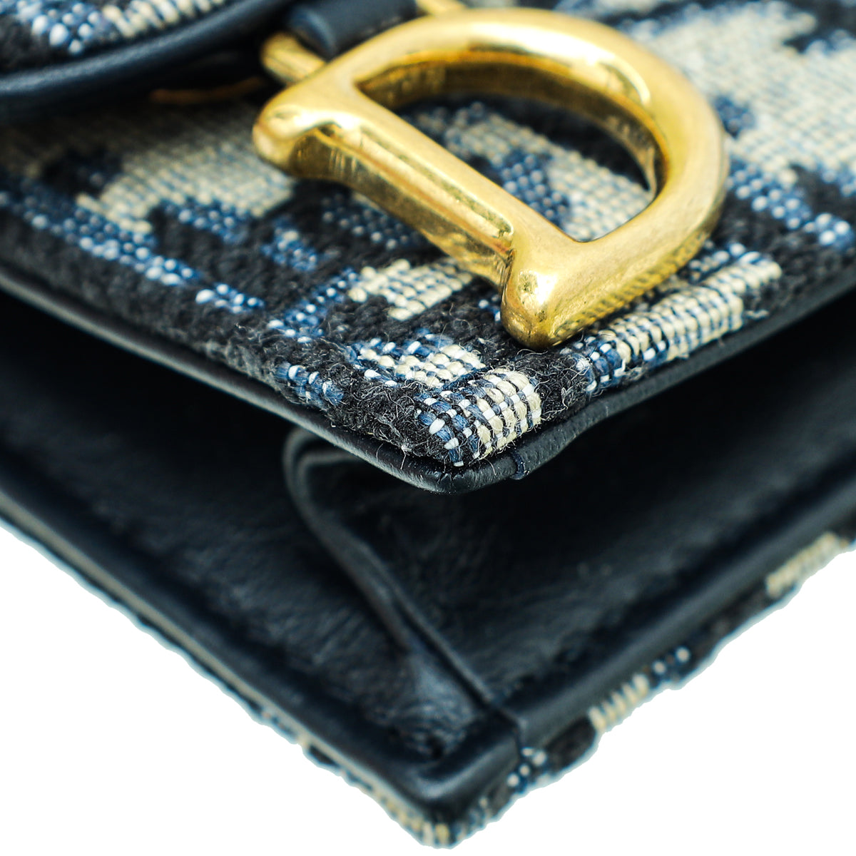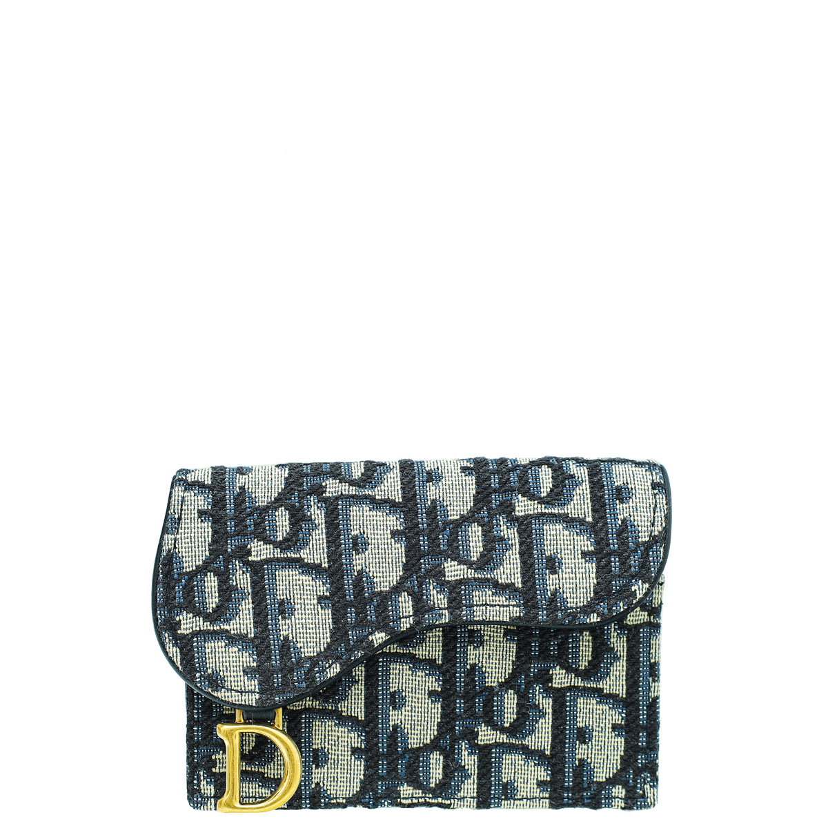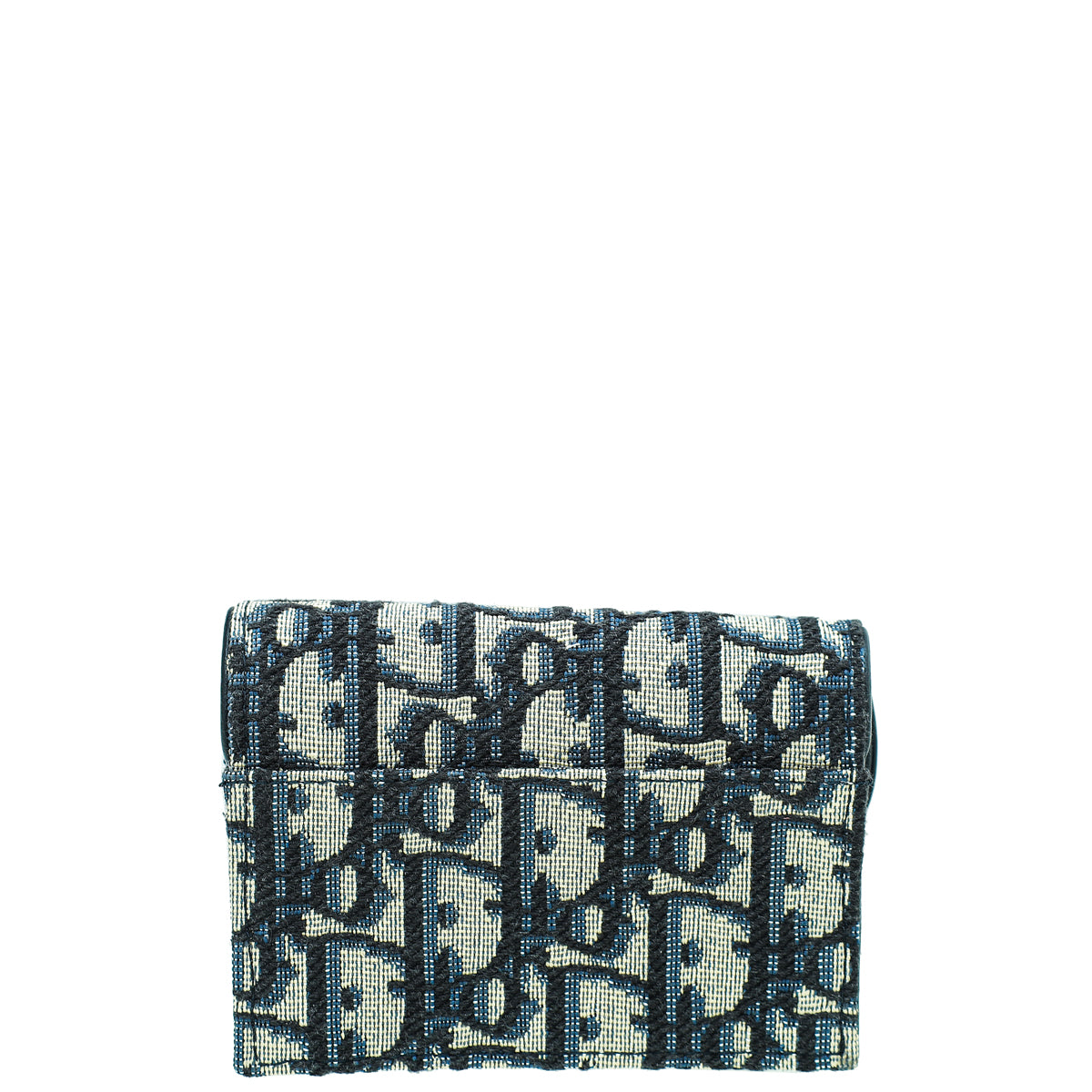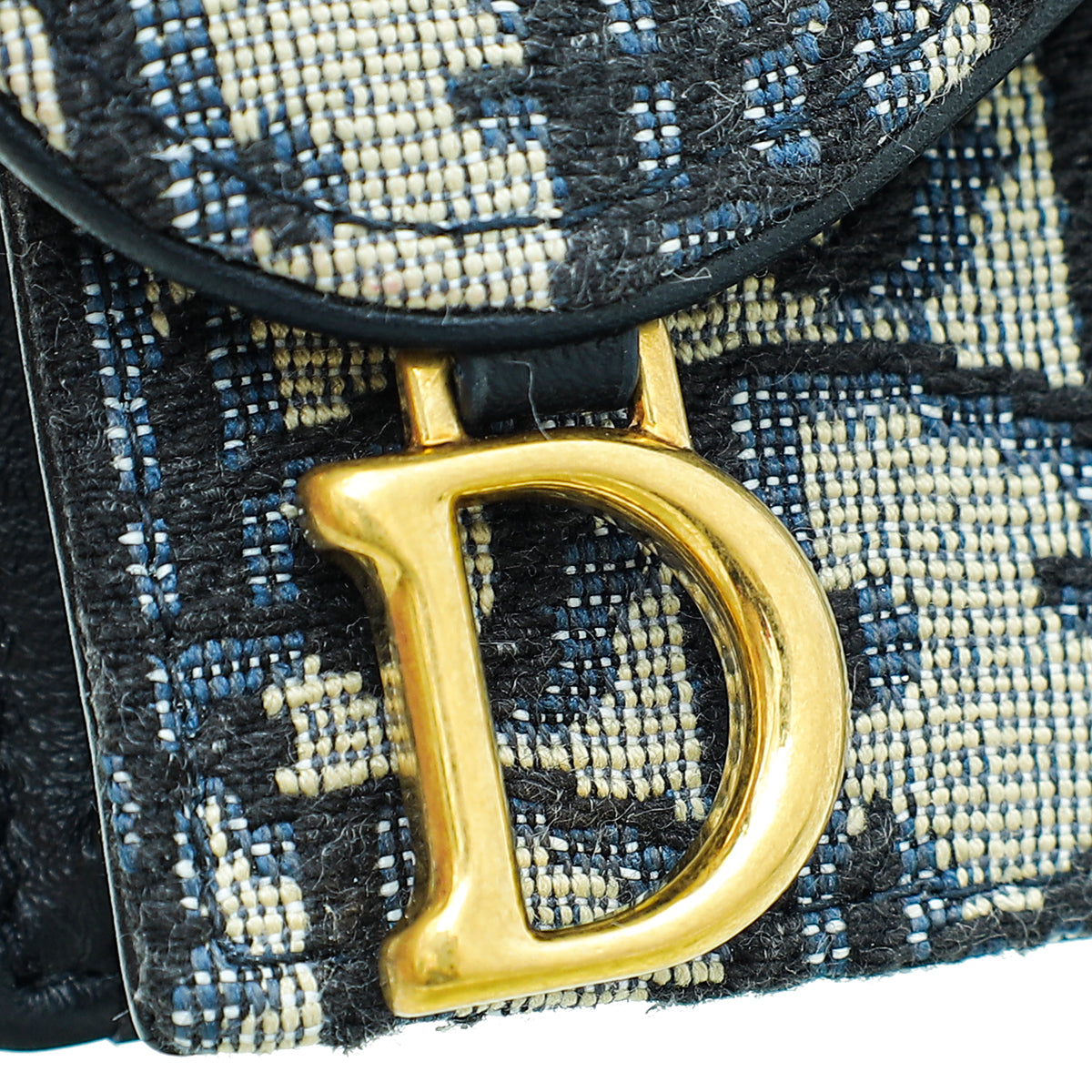 Christian Dior Blue Oblique Saddle Flap Card Holder