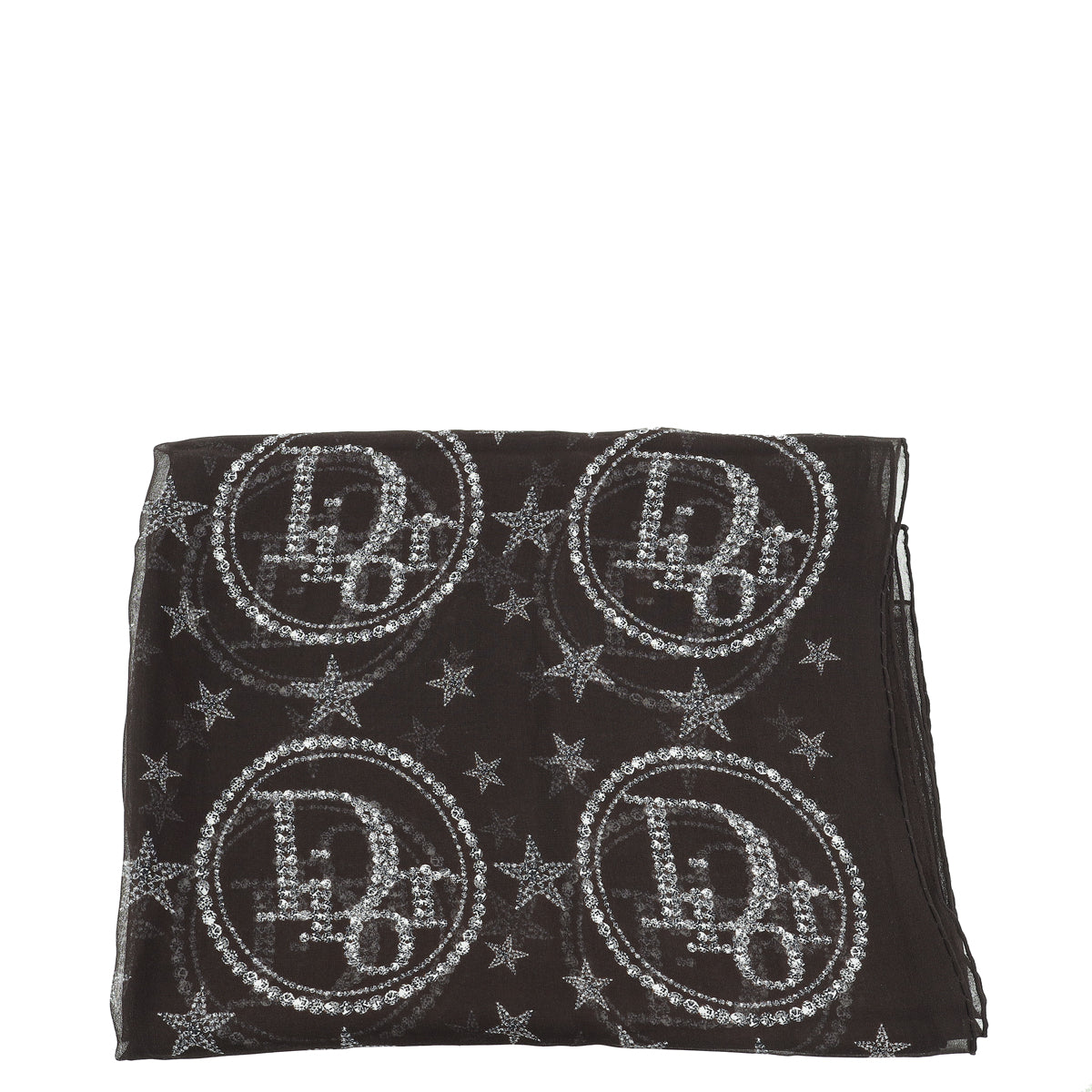 Christian Dior Chocolate Logo Star Print Silk Scarf