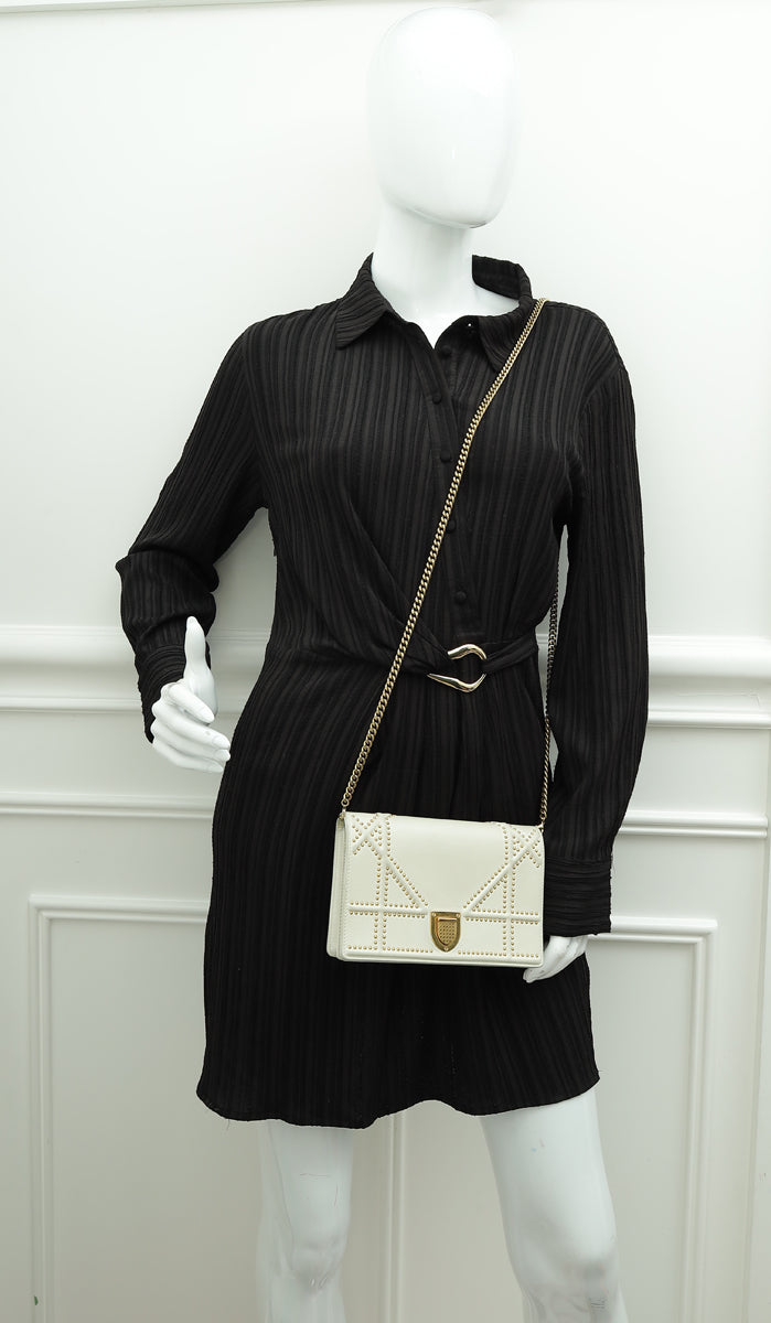 Christian Dior Cream Diorama Studded Wallet On Chain-Christian Dior-THE CLOSET