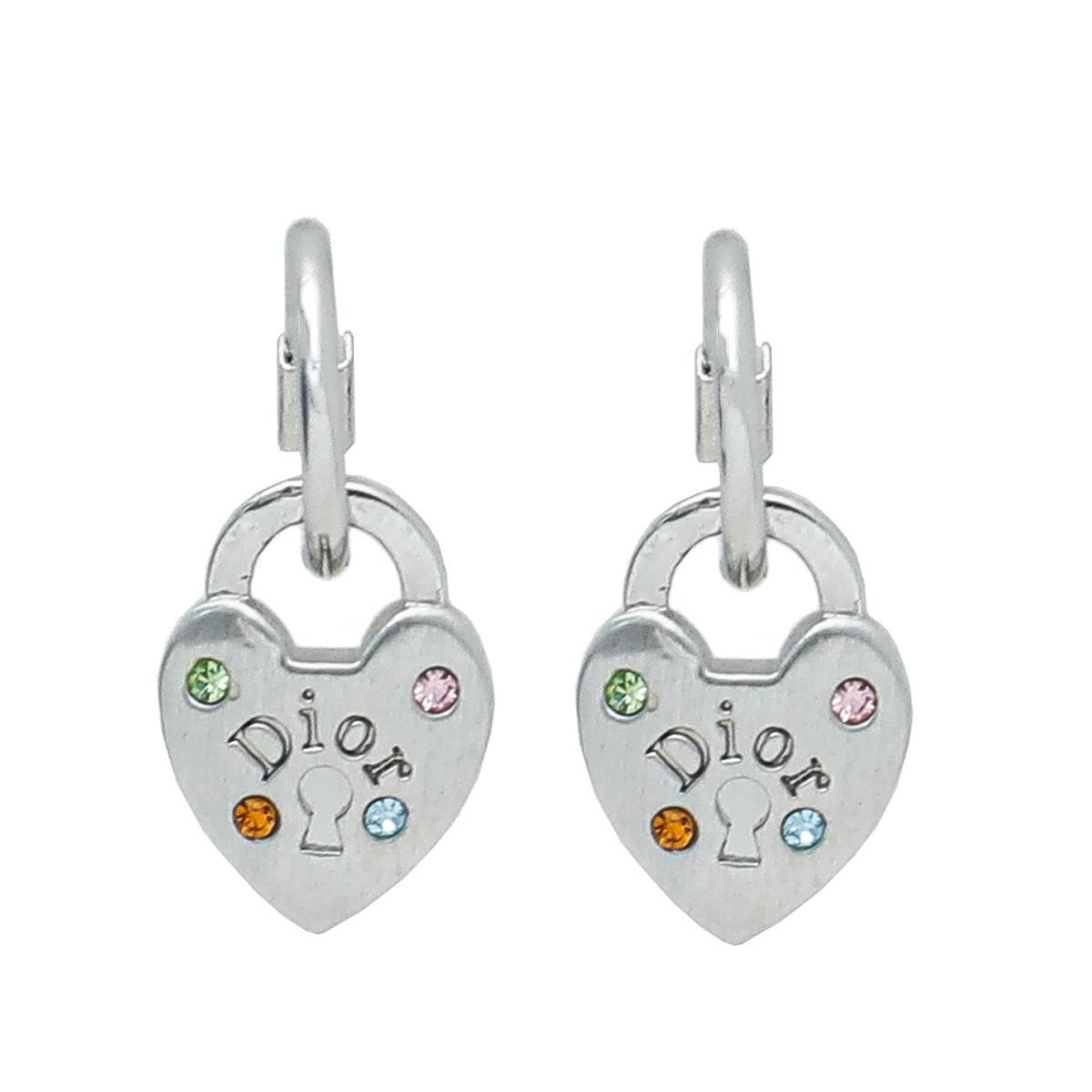 Christian Dior Silver Heart Lock Crystal Drop Earrings
