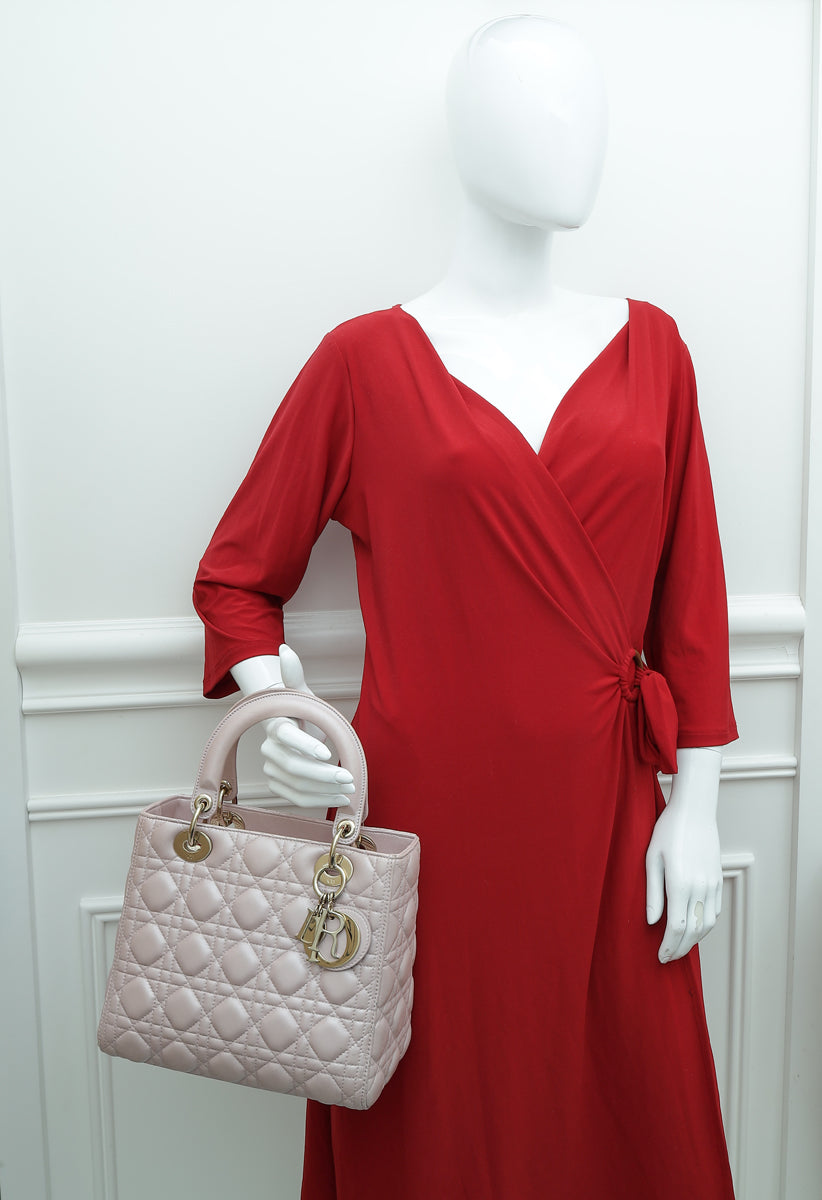 Christian Dior Light Pink Lady Dior Lambskin Medium Bag