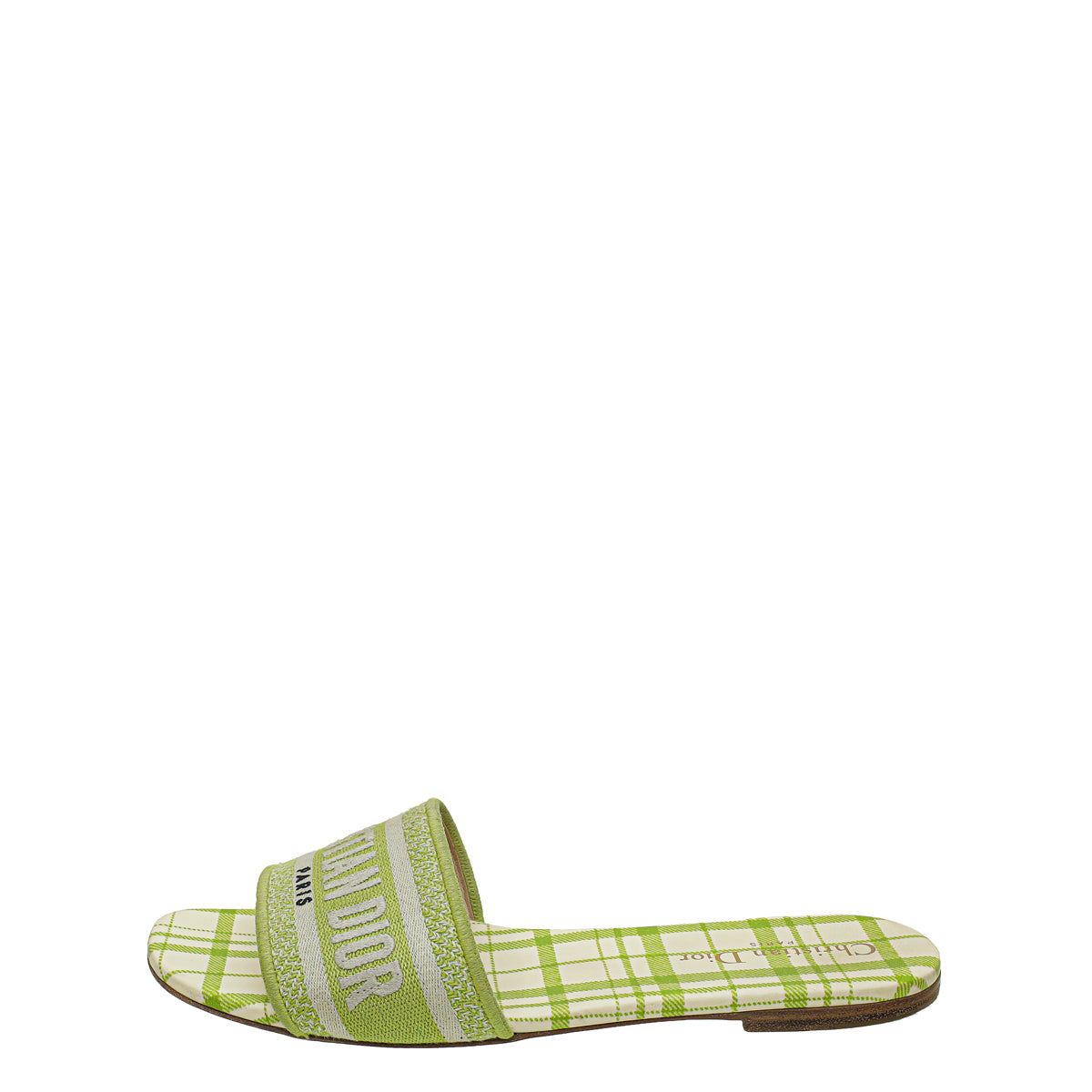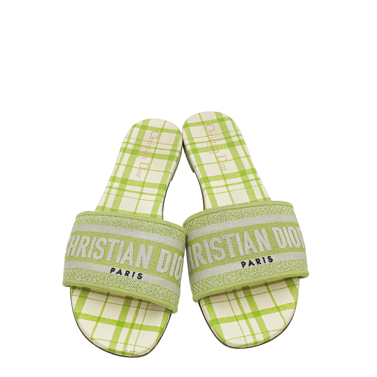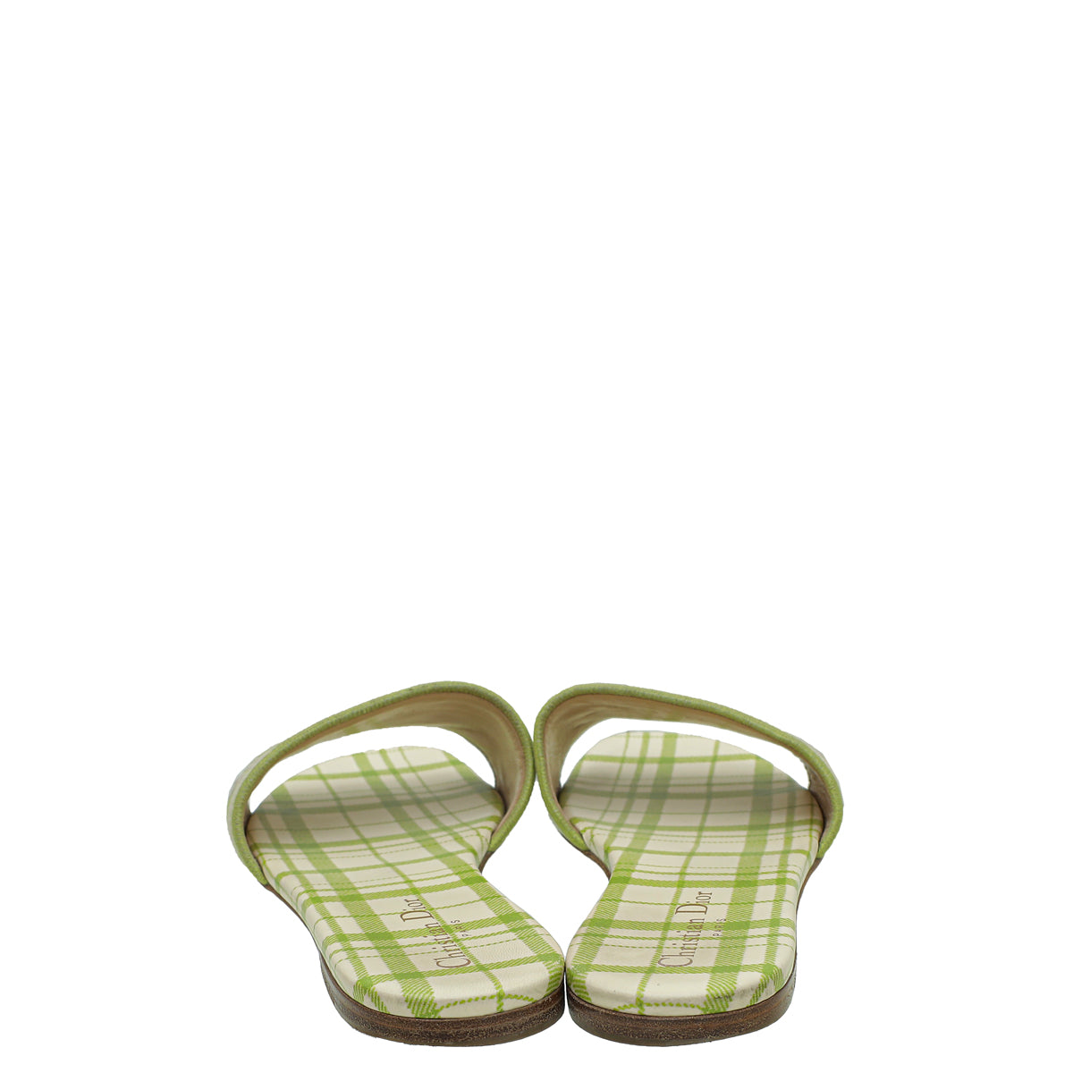 Christian Dior Lime Checkered Dway Embroidered Flat Sandal 40