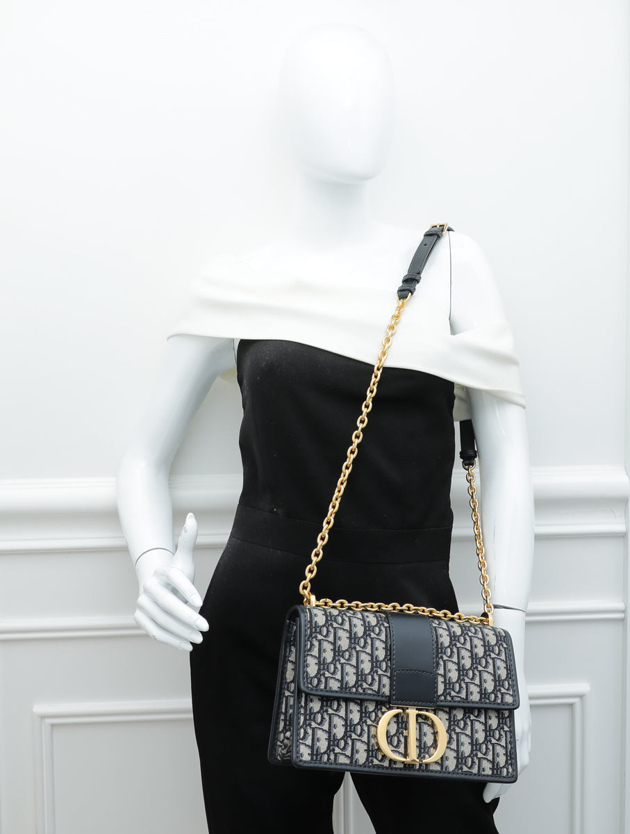 Christian Dior Navy Blue 30 Montaigne Oblique Flap Chain Bag