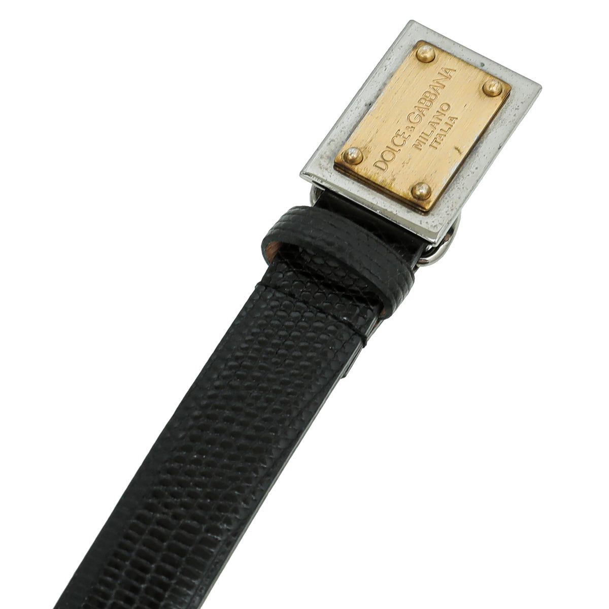 Dolce & Gabbana Black Lizard Embossed Logo Buckle 20mm Belt 34