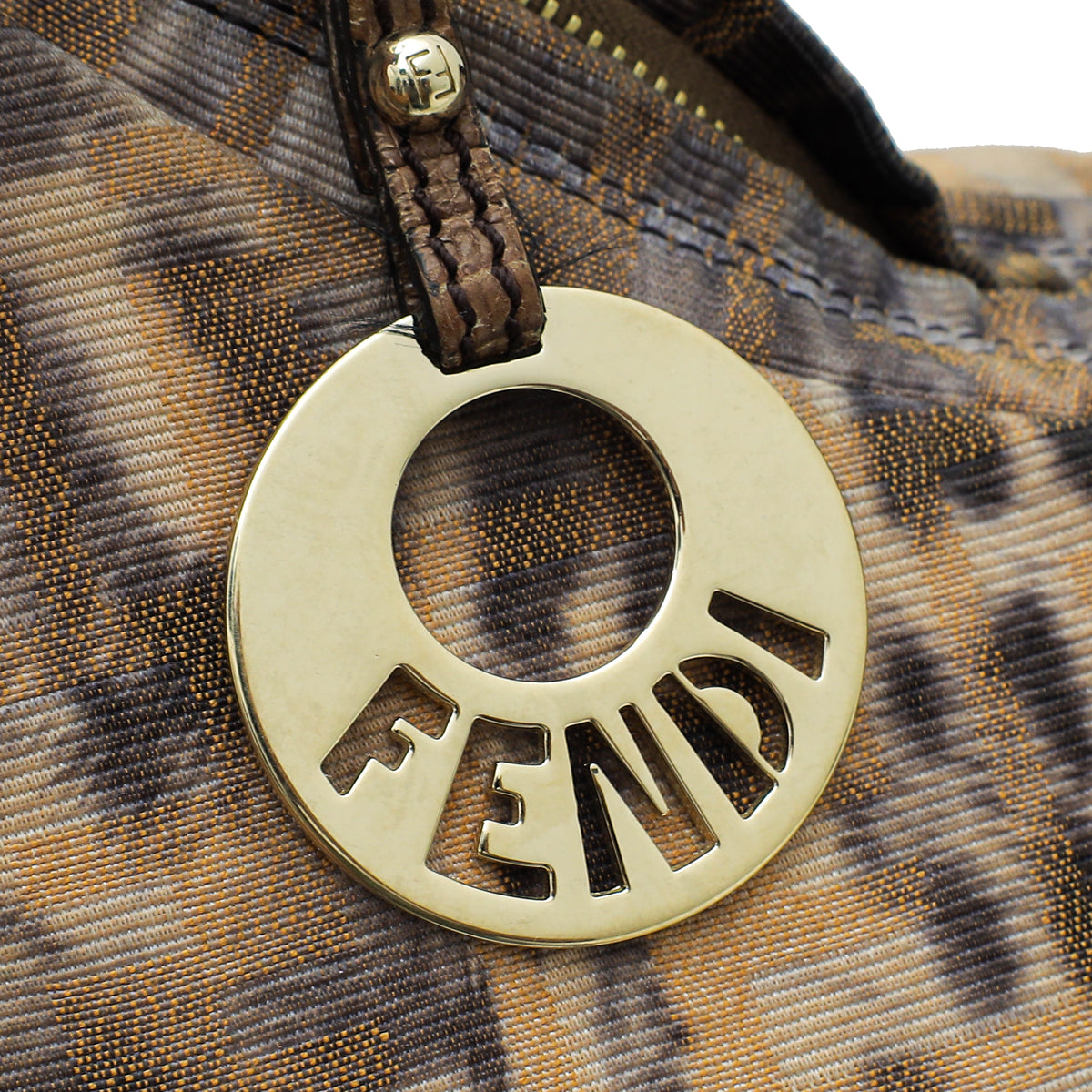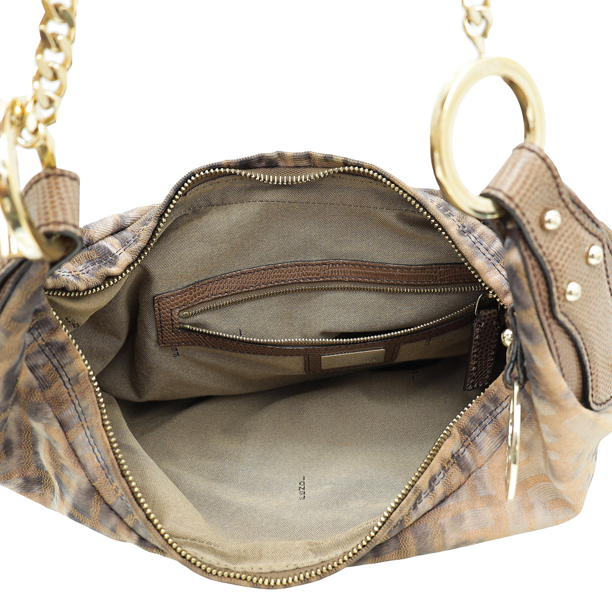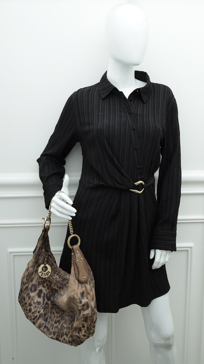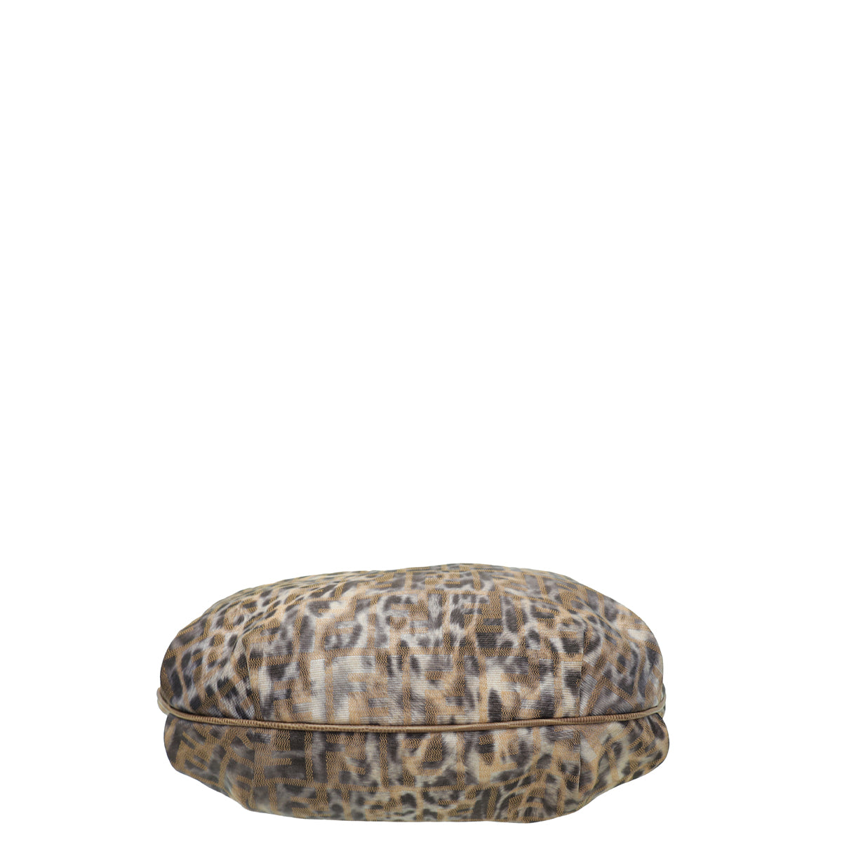 Fendi Bicolor Zucca Leopard Print Chef Chain Hobo Bag