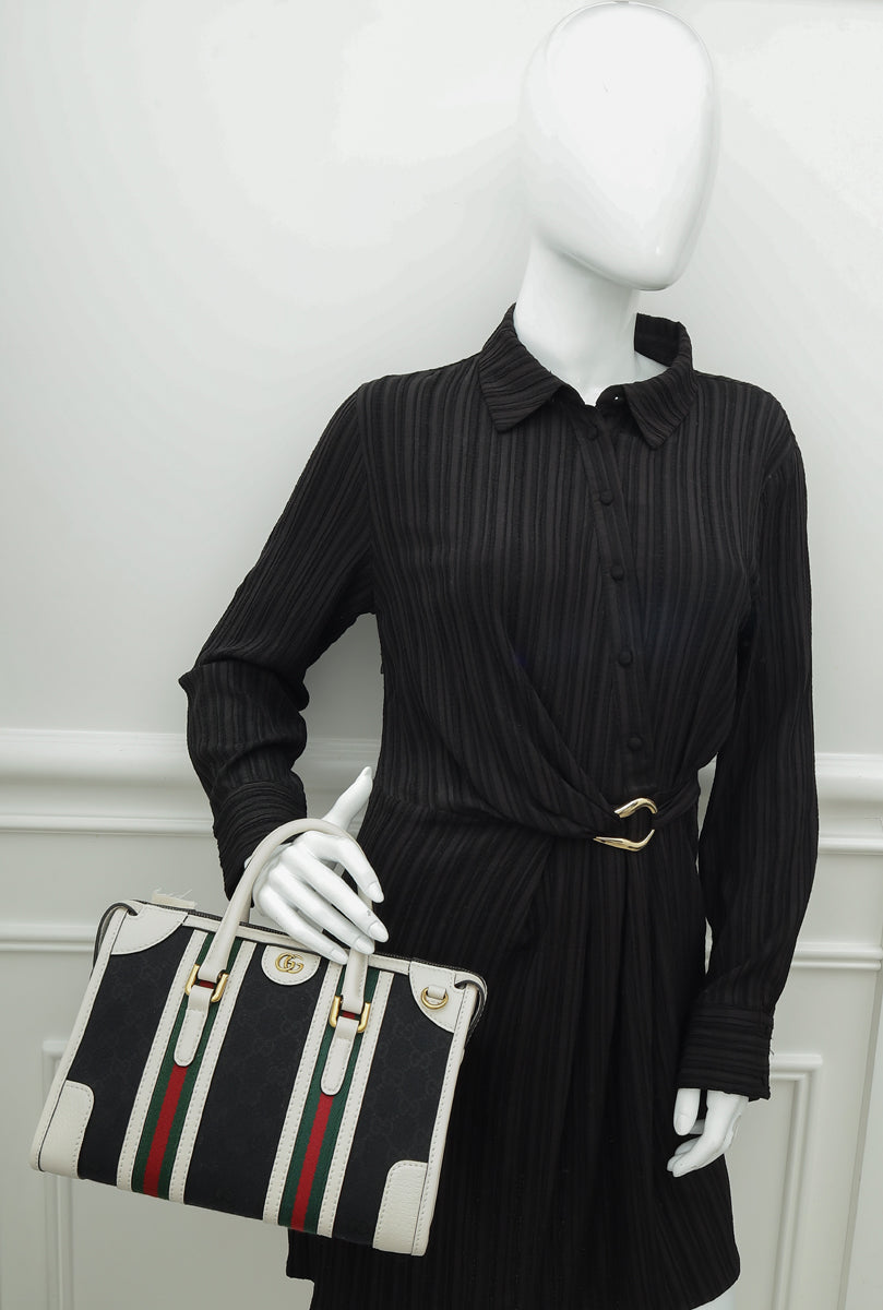 Material: Black GG Canvas with White Leather and Red/Green Web Details