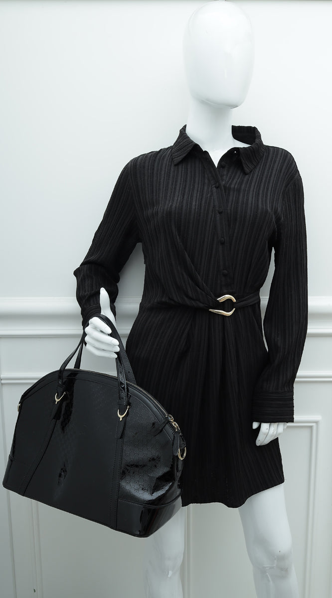 Gucci Black Shine Microguccissima Nice Top Handle Dome Medium Bag