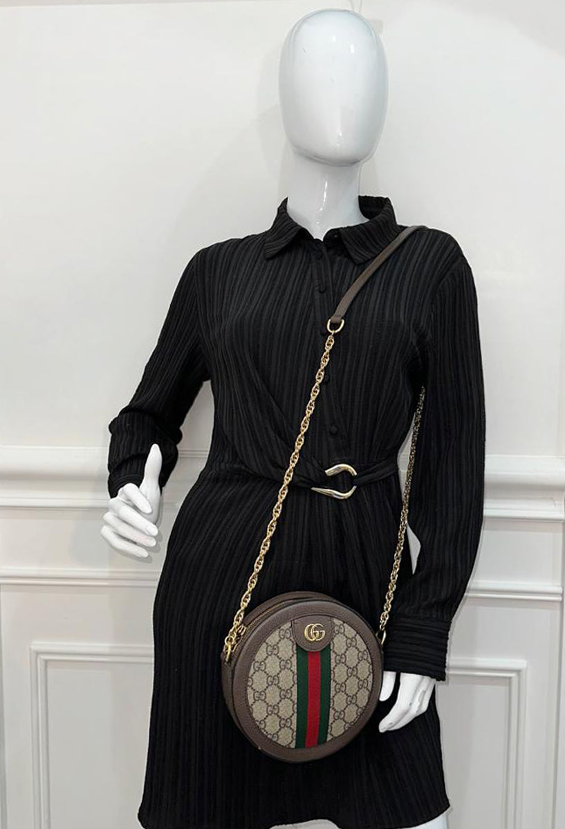 Gucci Ebony GG Supreme Ophidia Round Mini Shoulder Bag
