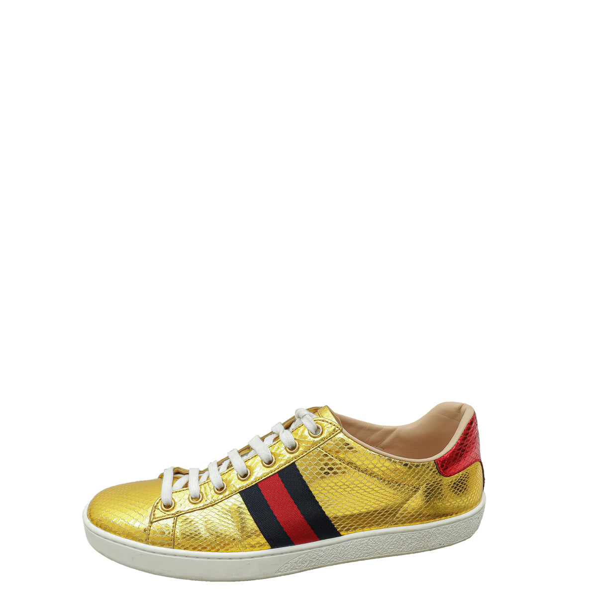 Gucci Gold Ace Metallic Python Sneaker 39.5-Gucci-THE CLOSET