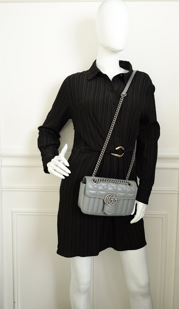 Gucci Grey GG Marmont Mix Quilt Small Shoulder Bag