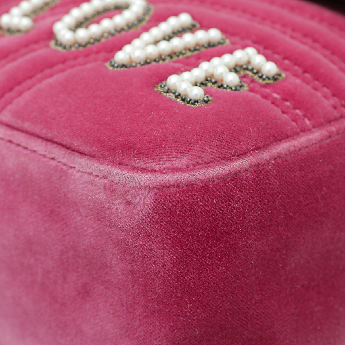 Material: Pink Velvet with Floral Print and "Blind For Love" Written with Faux Pearls, Heart on The Back and Double G