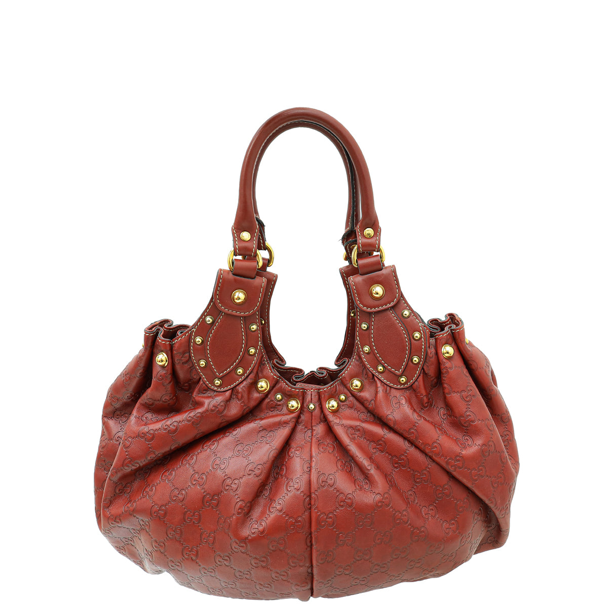 Gucci Rust Red Guccissima Studded Pelham Bag