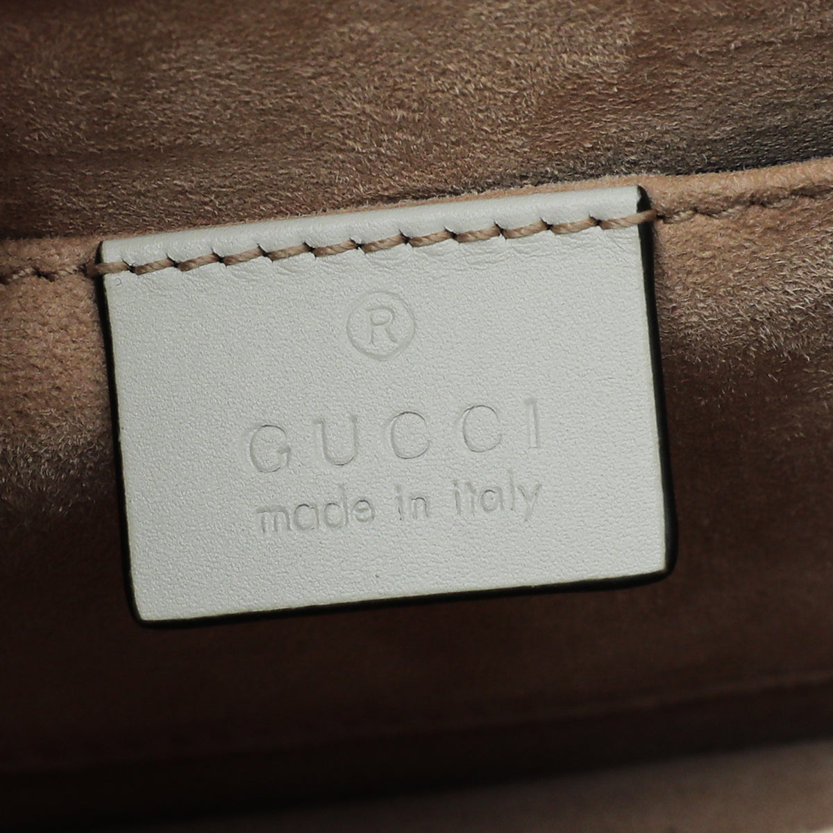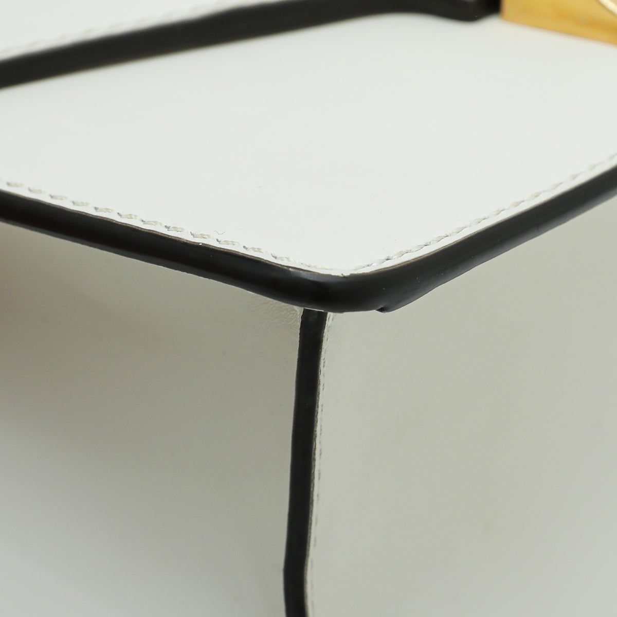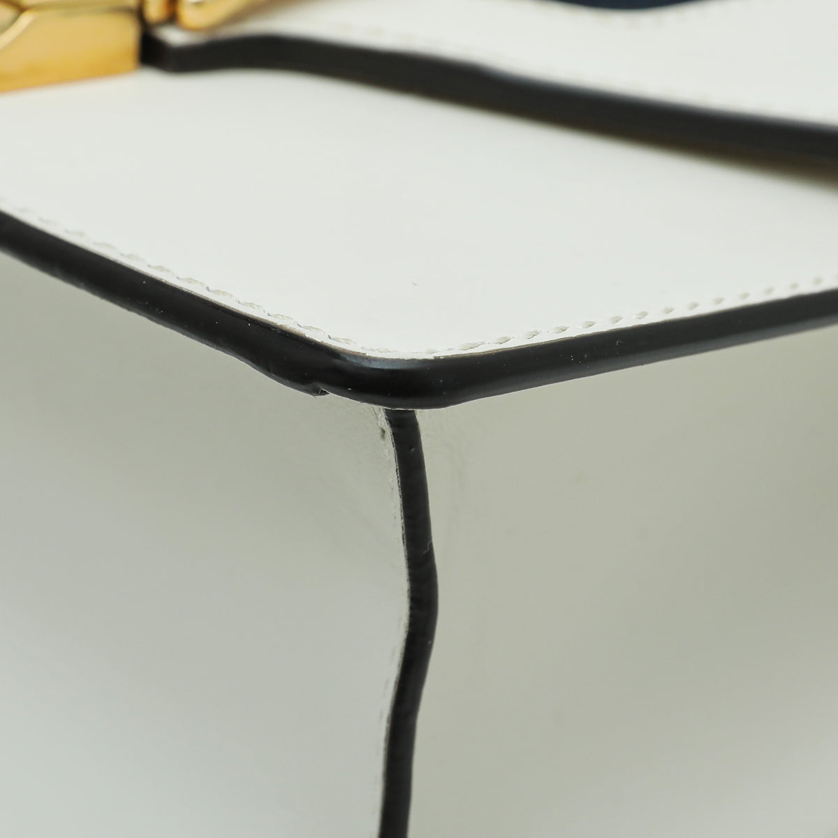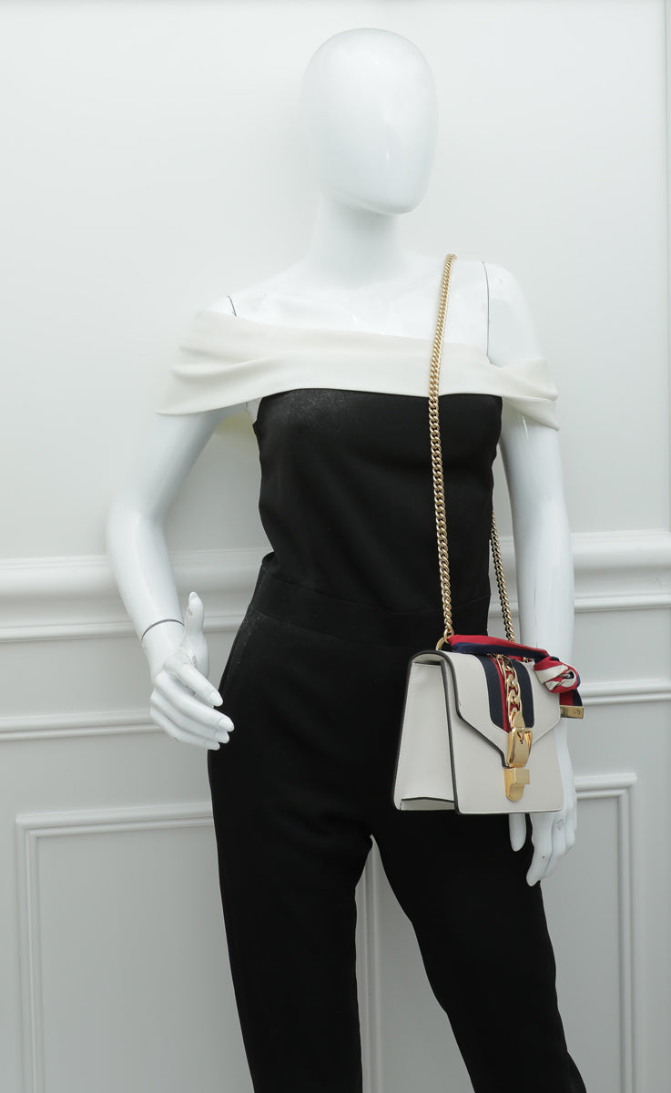 Material: White Leather with Navy/Red Web Detail and Red/Blue/White Fabric Shoulder Strap