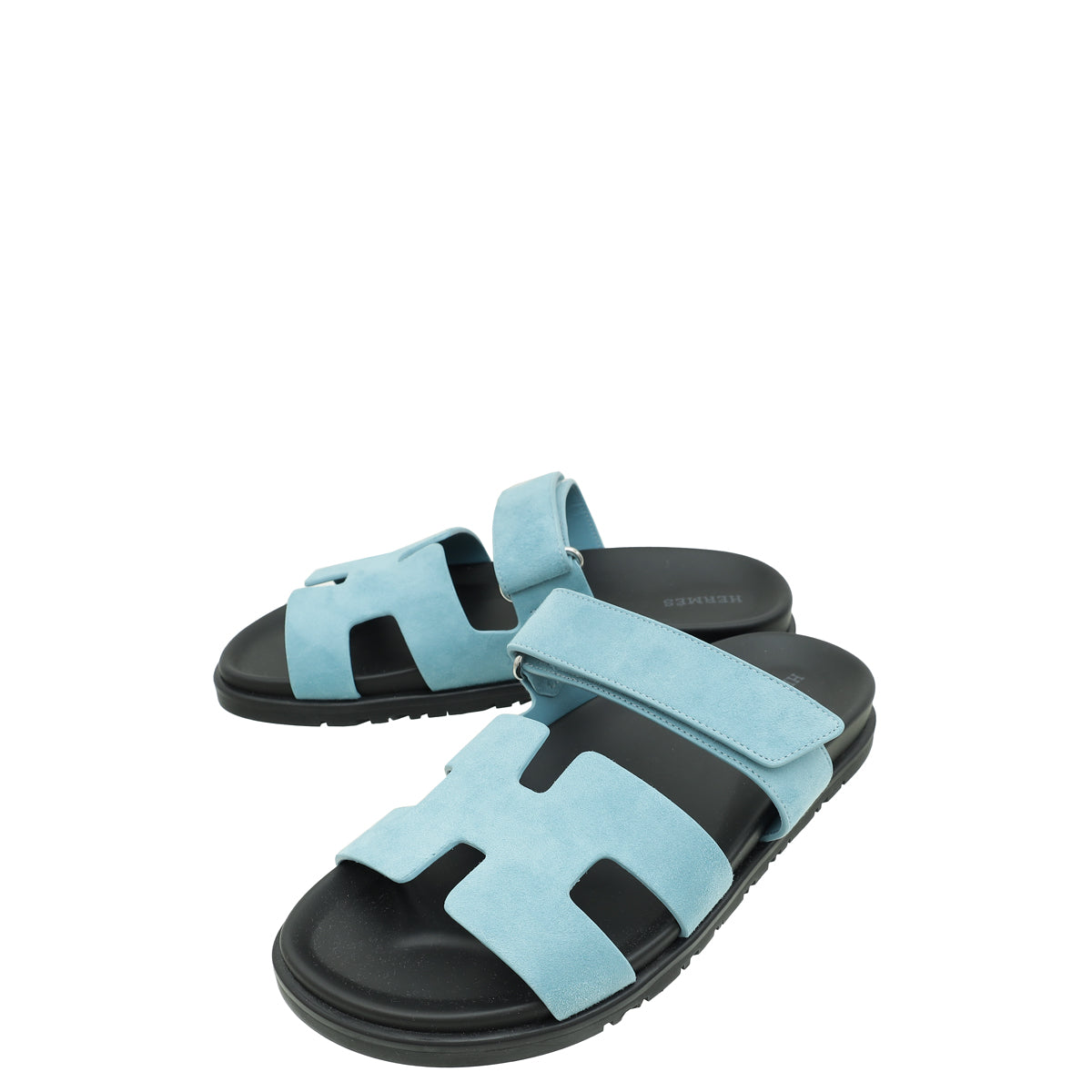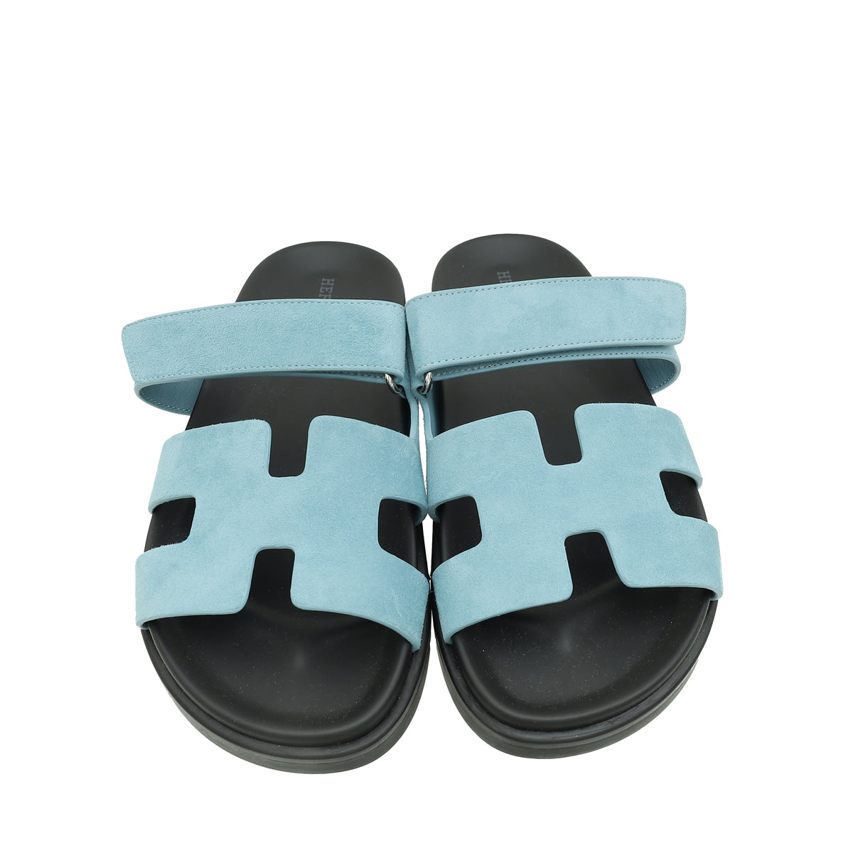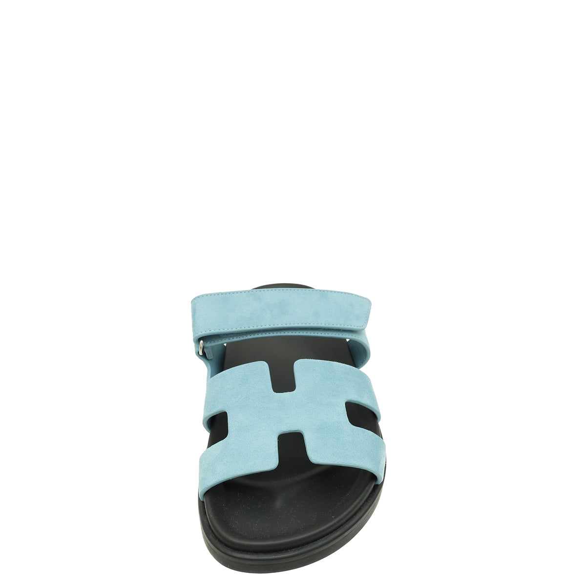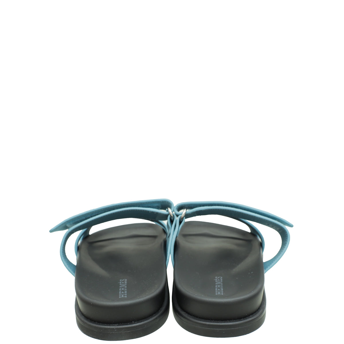 Hermes Bleu Mineral Chypre Suede Goatskin Sandal 38