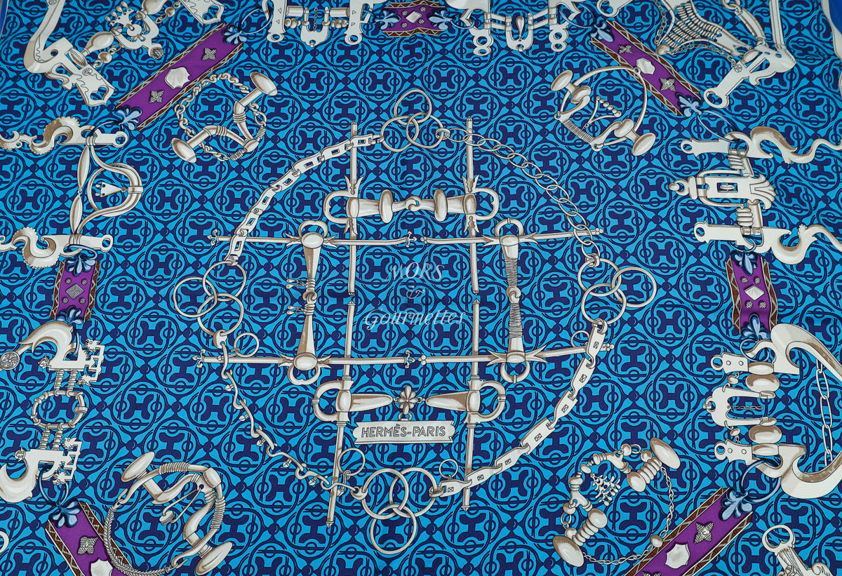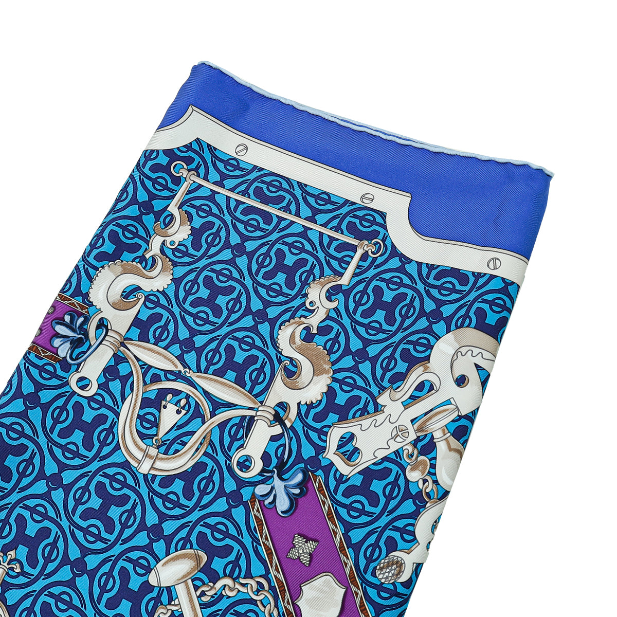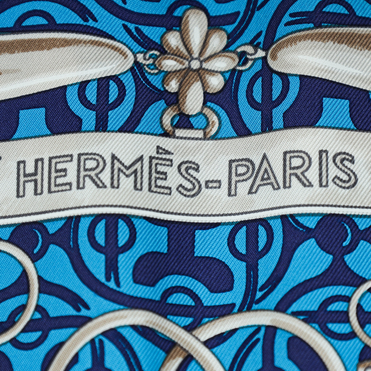 Hermes Blue Multicolor Mors et Gourmettes Silk Scarf