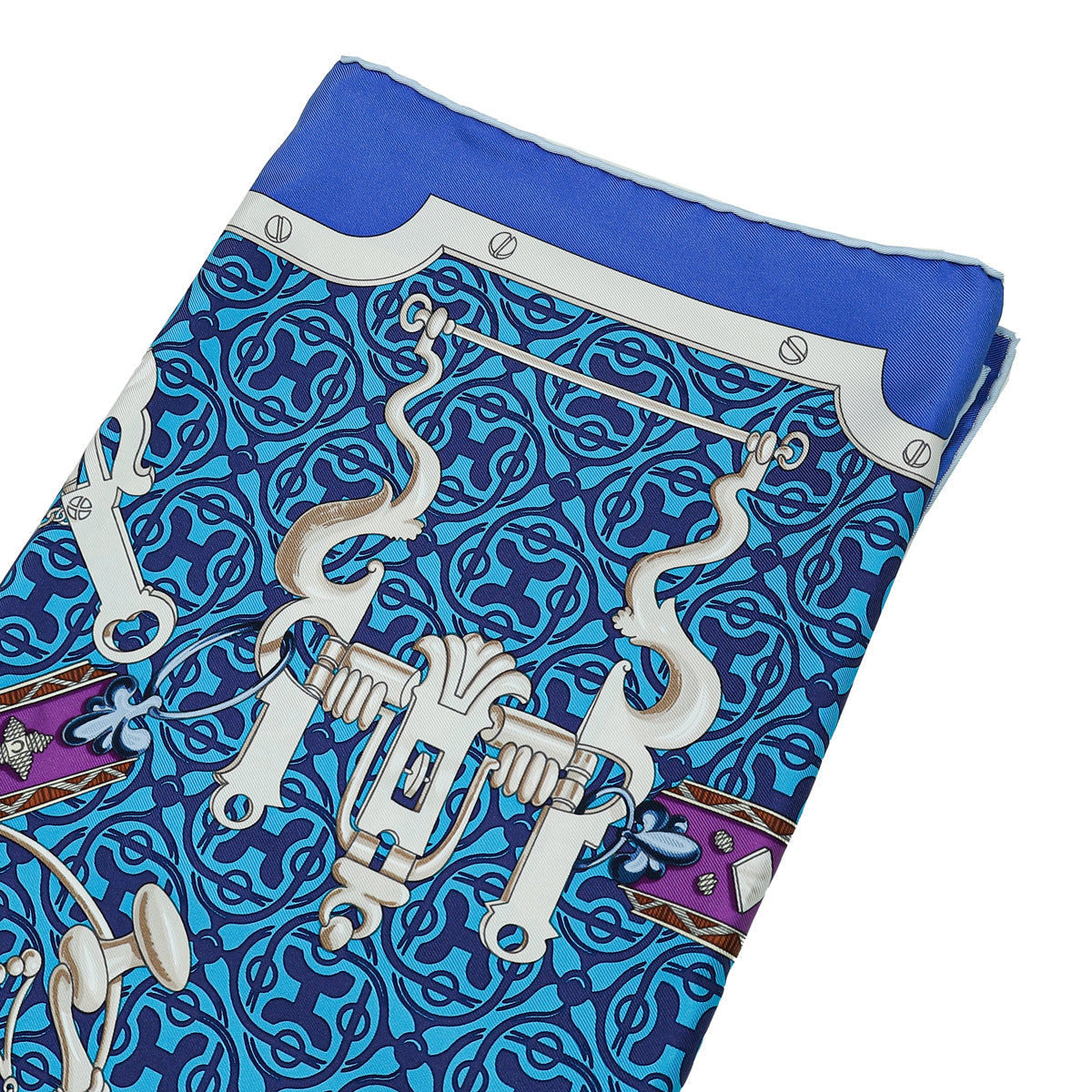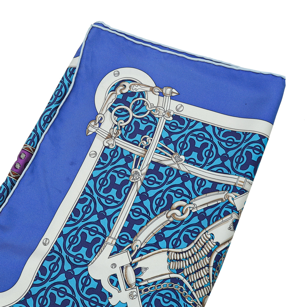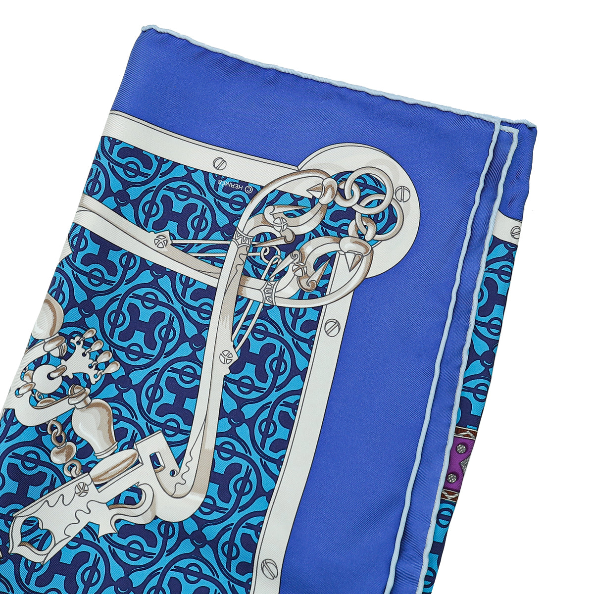 Hermes Blue Multicolor Mors et Gourmettes Silk Scarf