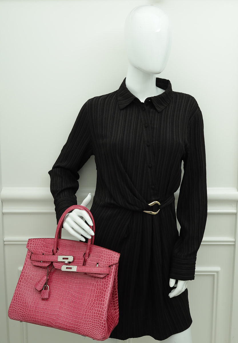 Hermes Fuchsia Shiny Porosus Crocodile Birkin 30 Bag