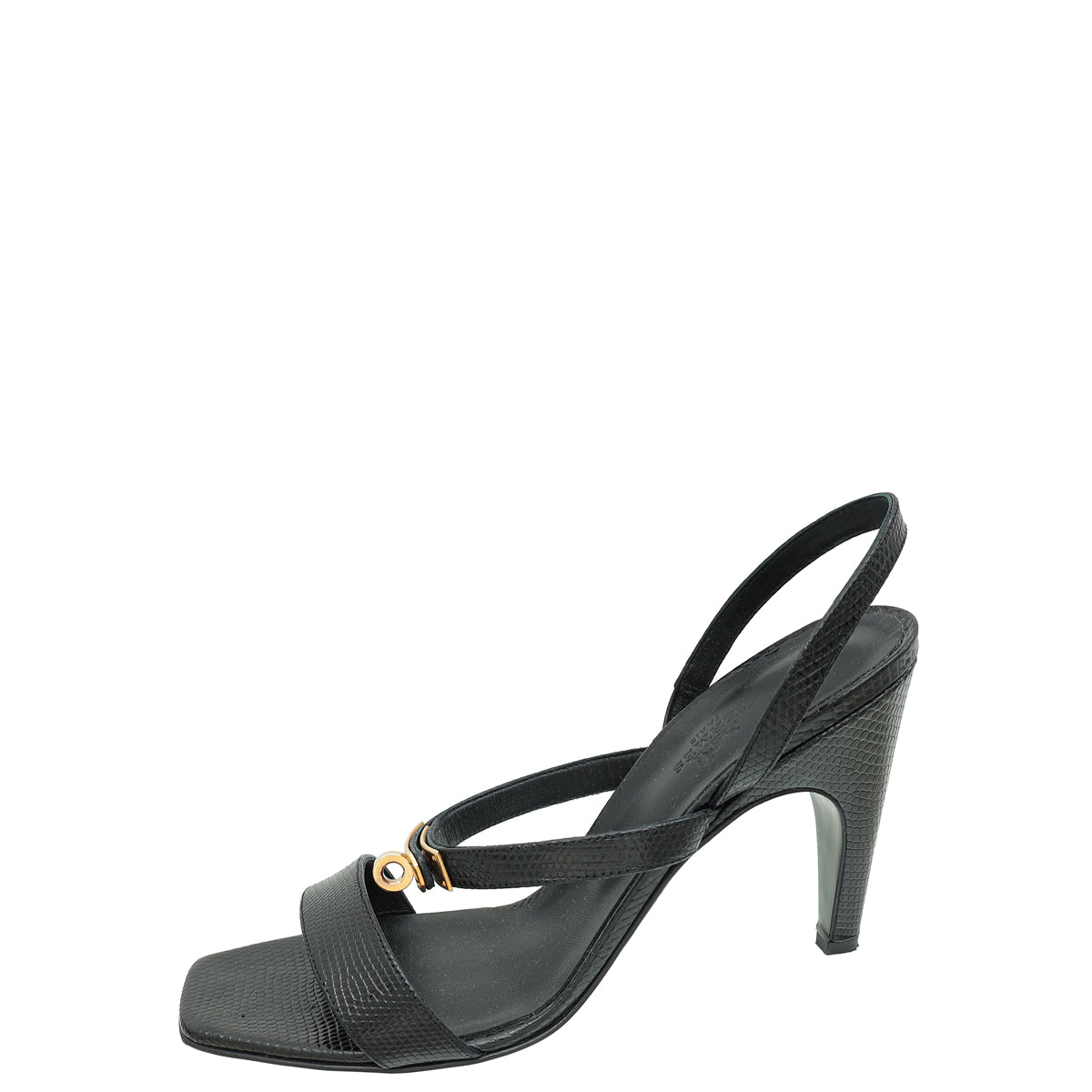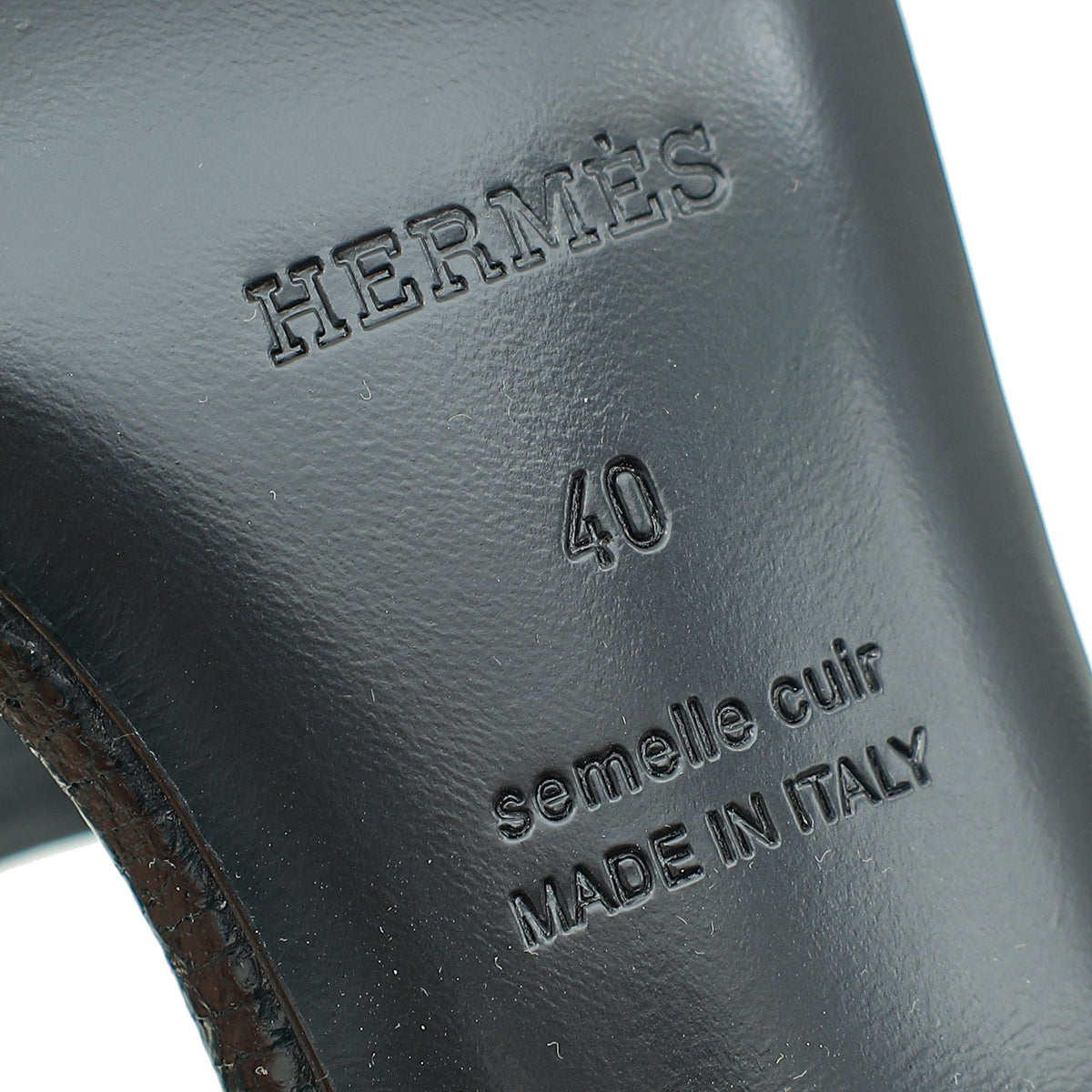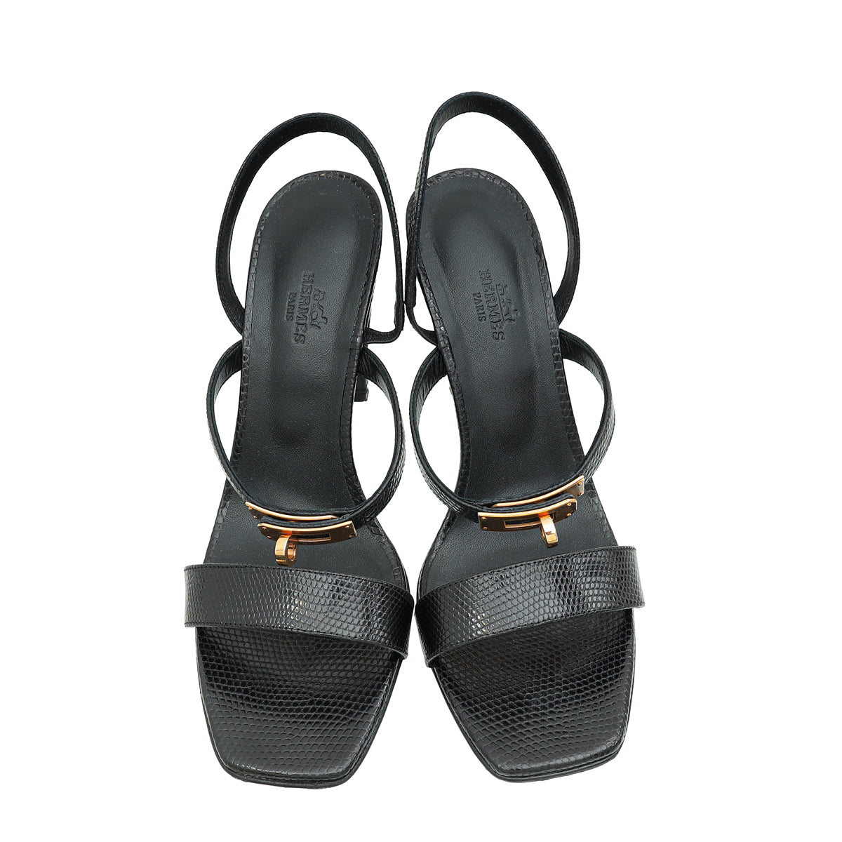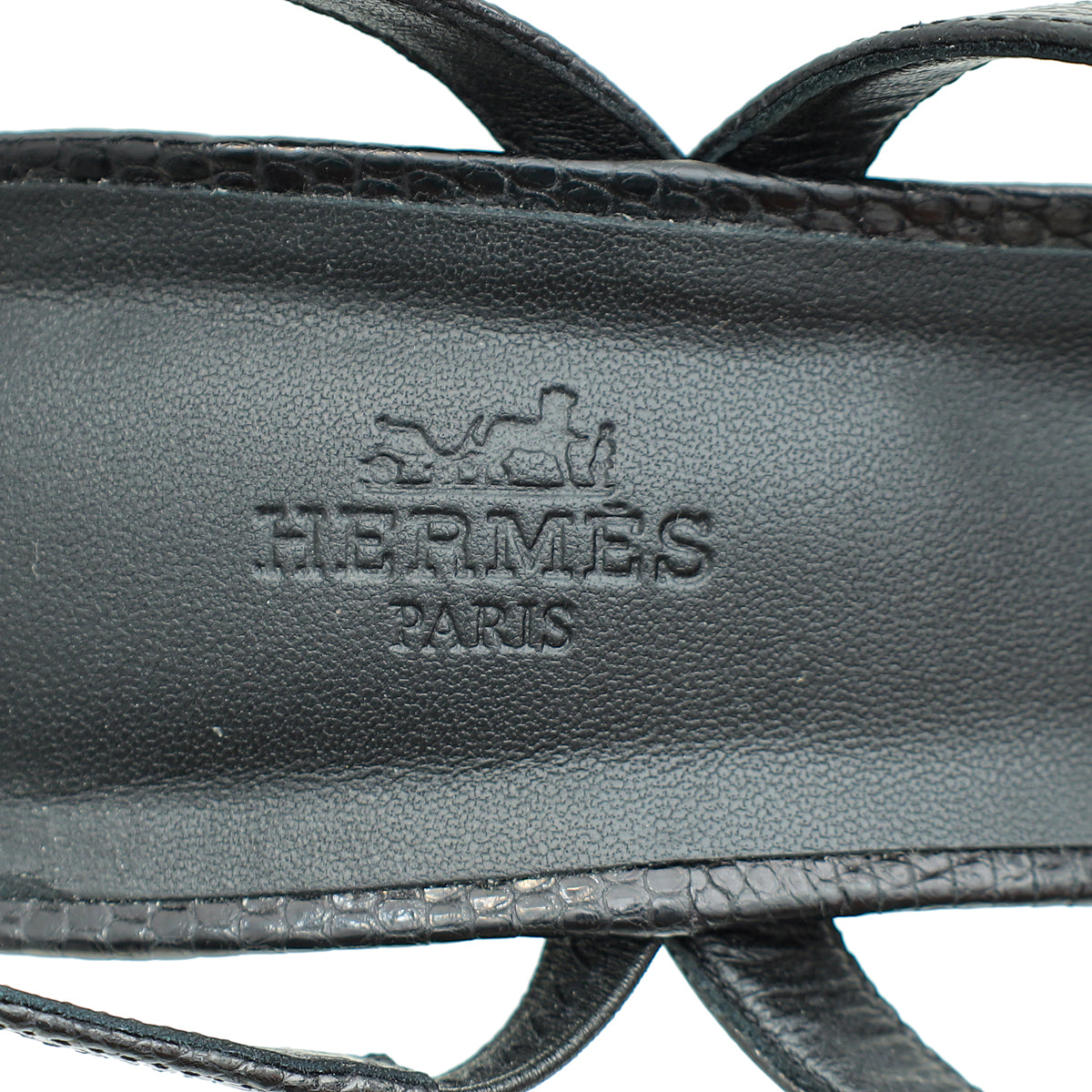 Hermes Noir Lizard Glamour 75 Sandal 40