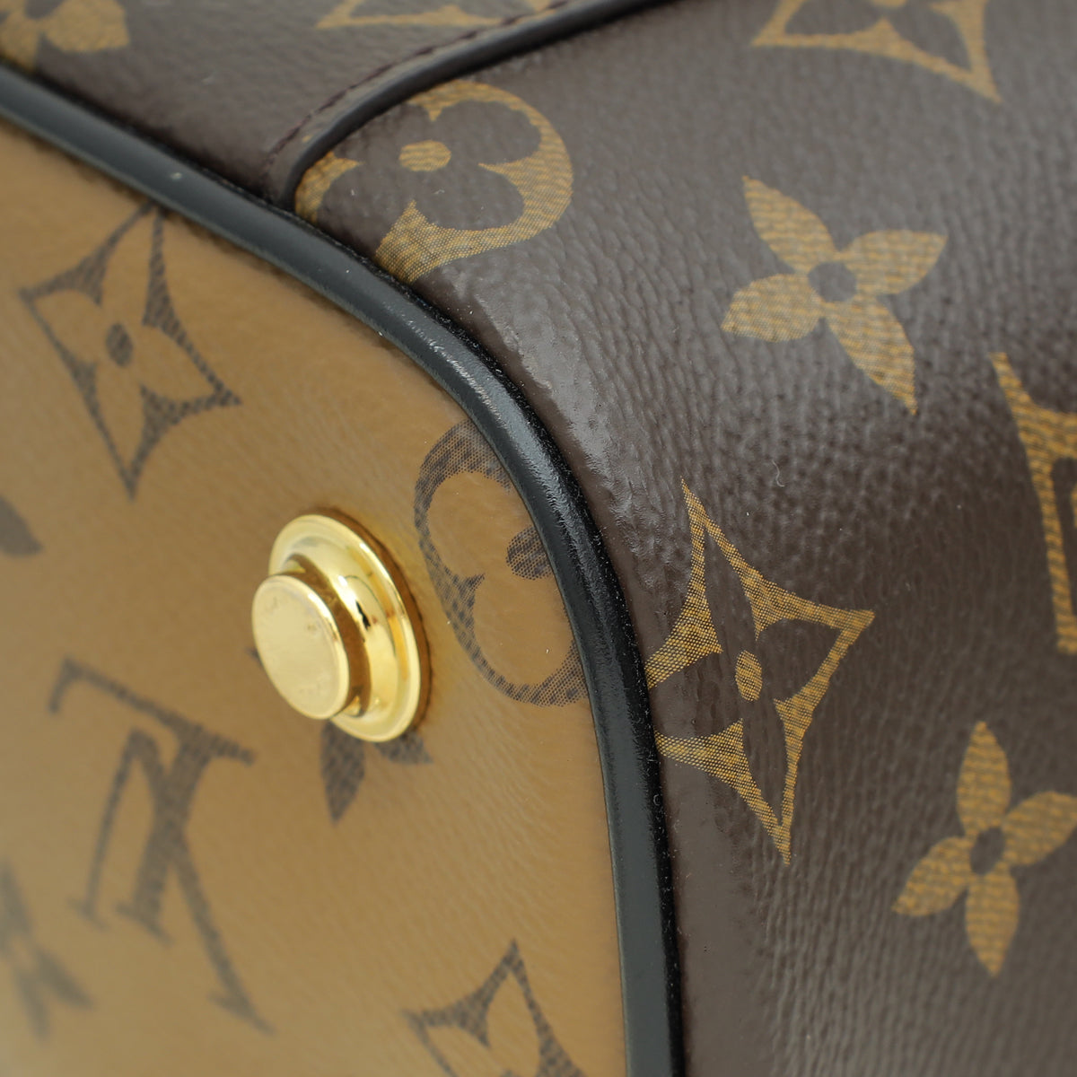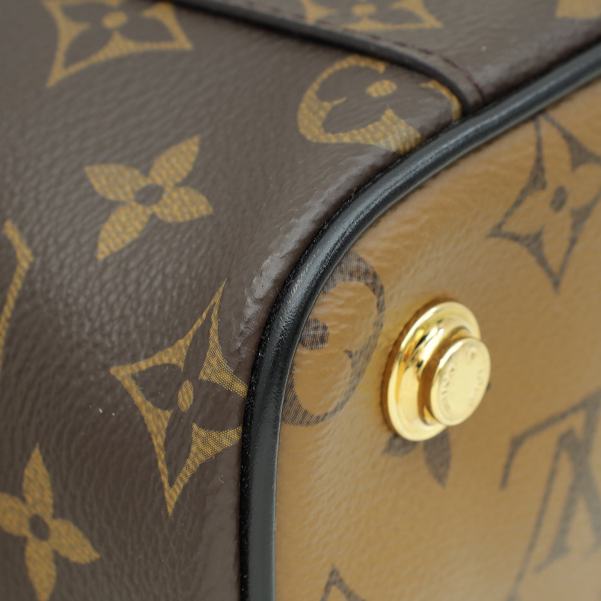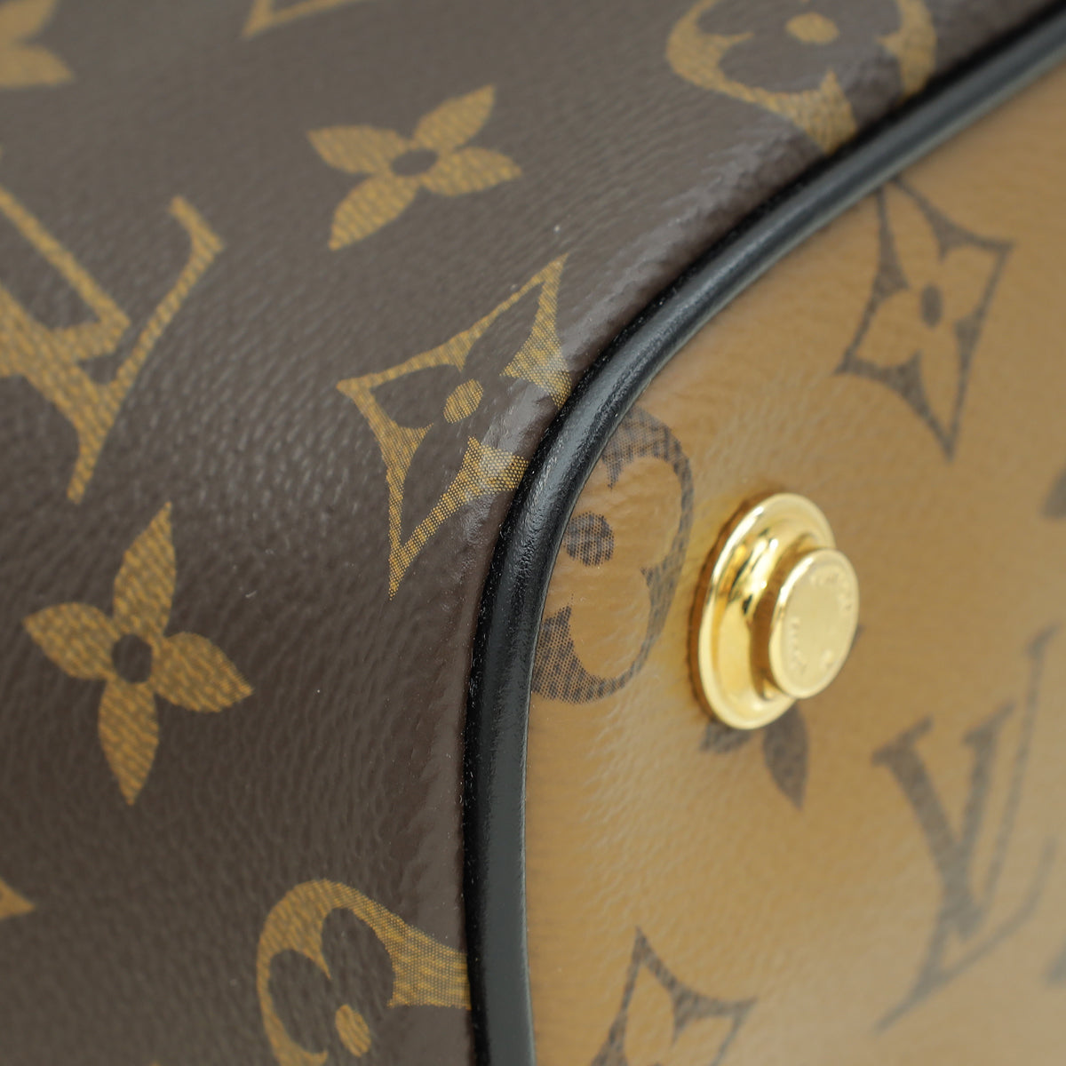 - Material: Brown Monogram and Monogram Reverse Coated Canvas with Black Calfskin Leather Trim
