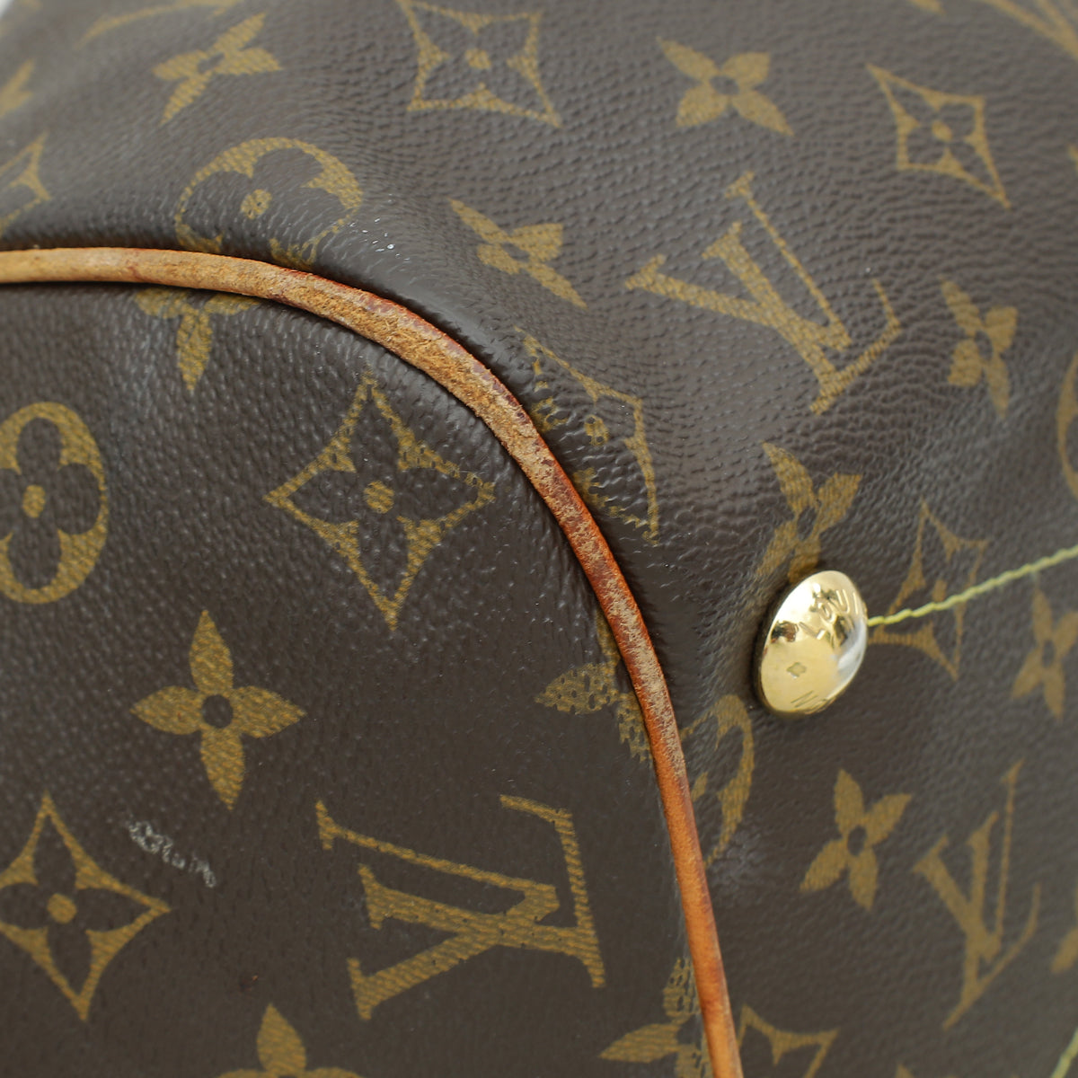 - Material: Monogram Coated Canvas with Natural Cowhide Leather Trim