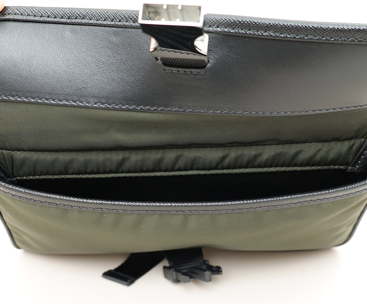 Material: Kaki Re-Nylon and Saffiano Leather Trim