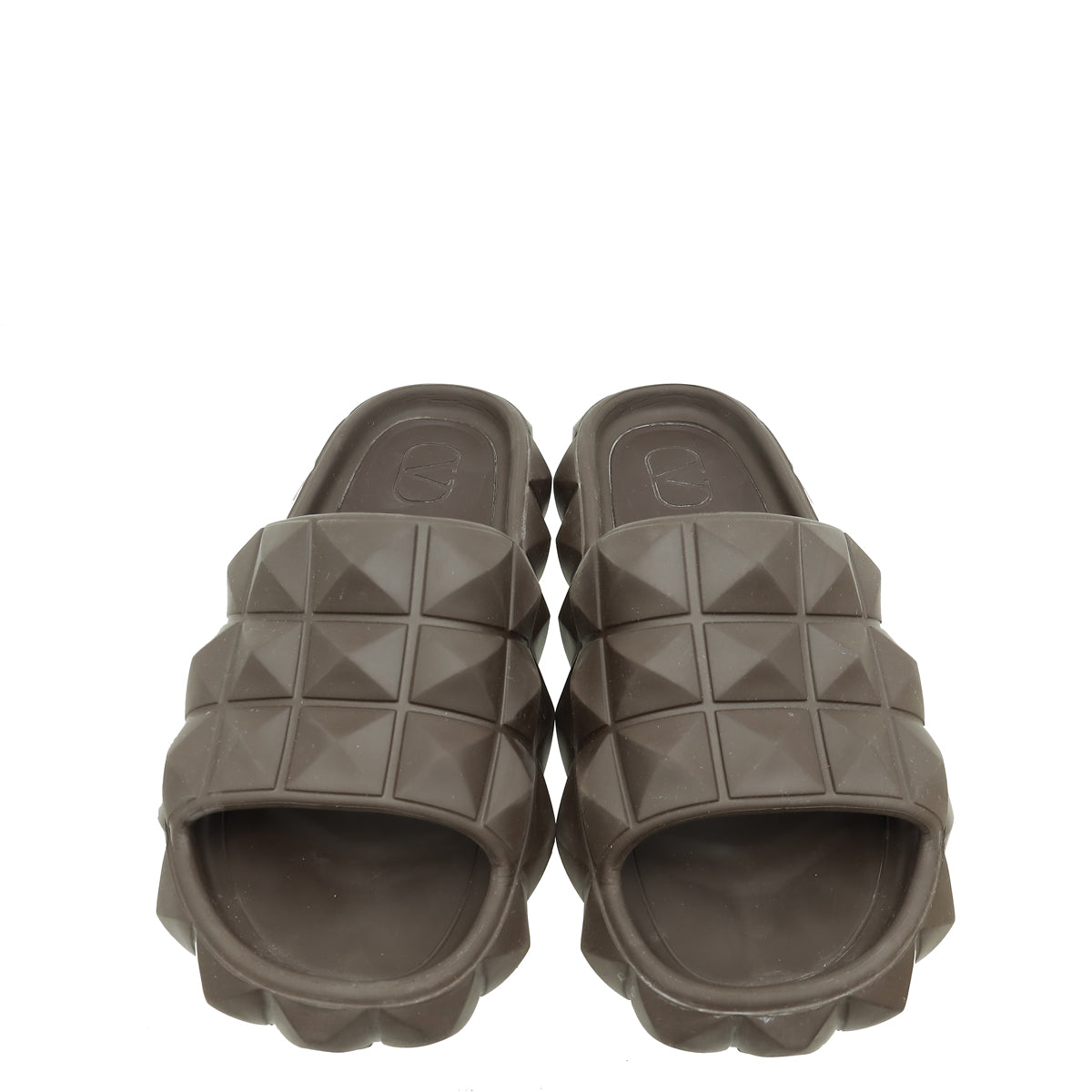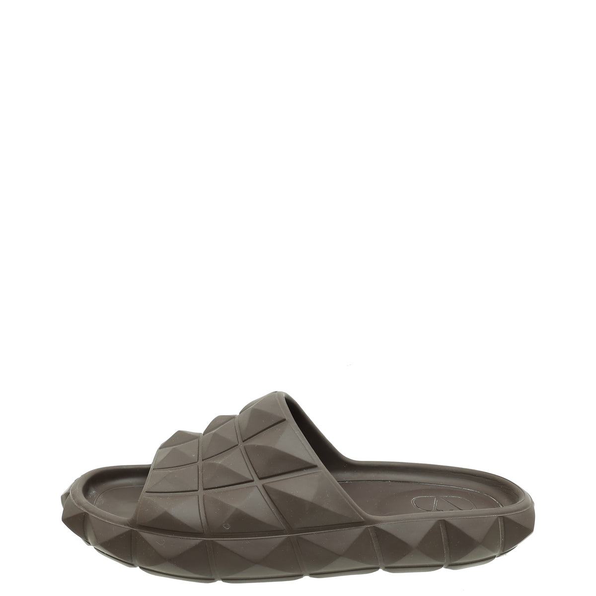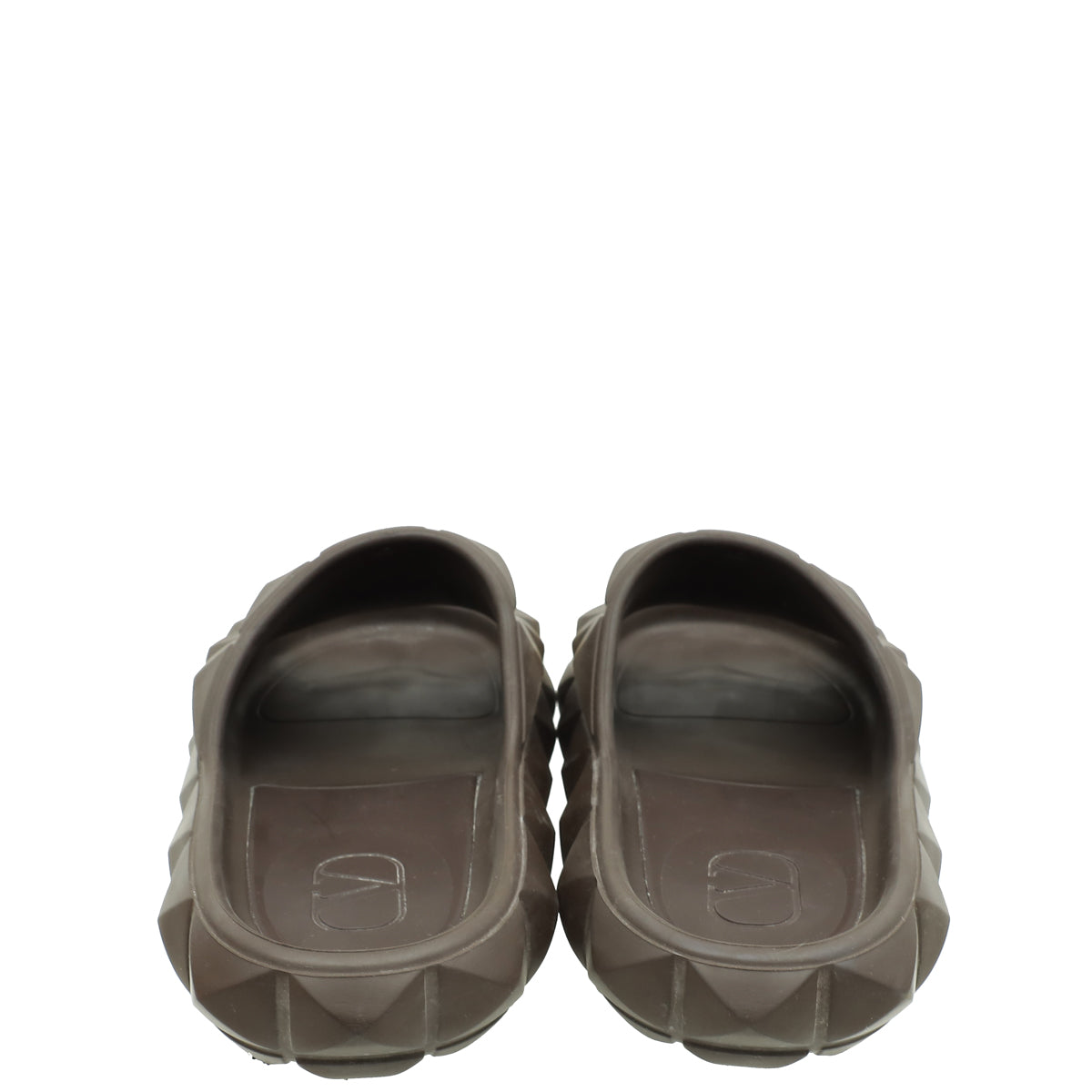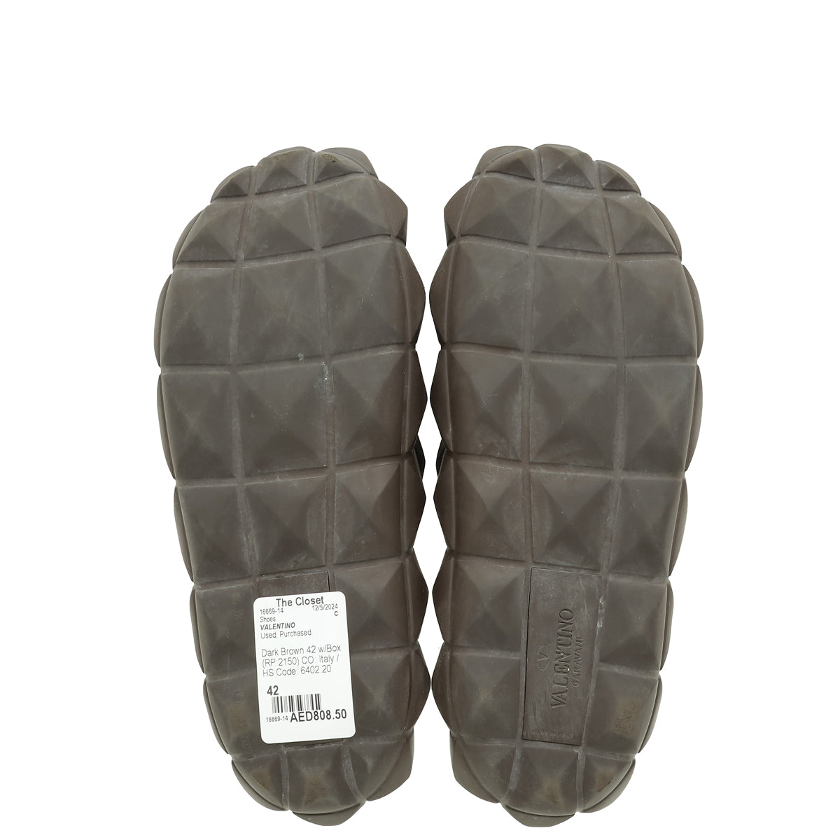 Valentino Dark Brown Rubber Roman Stud Turtle Slide Sandal 42