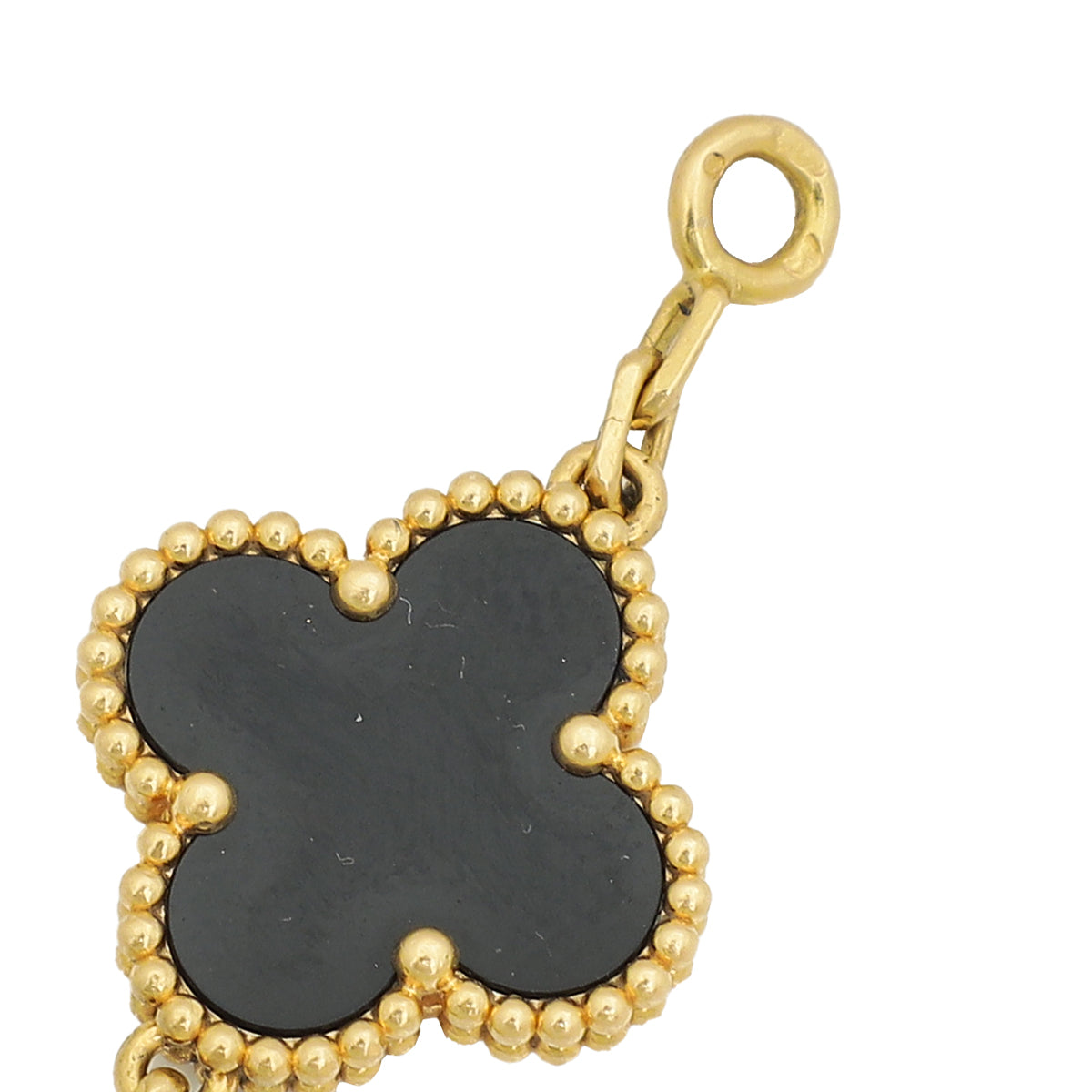 Van Cleef & Arpels 18K Yellow Gold Vintage Alhambra 5 Motifs Onyx Bracelet