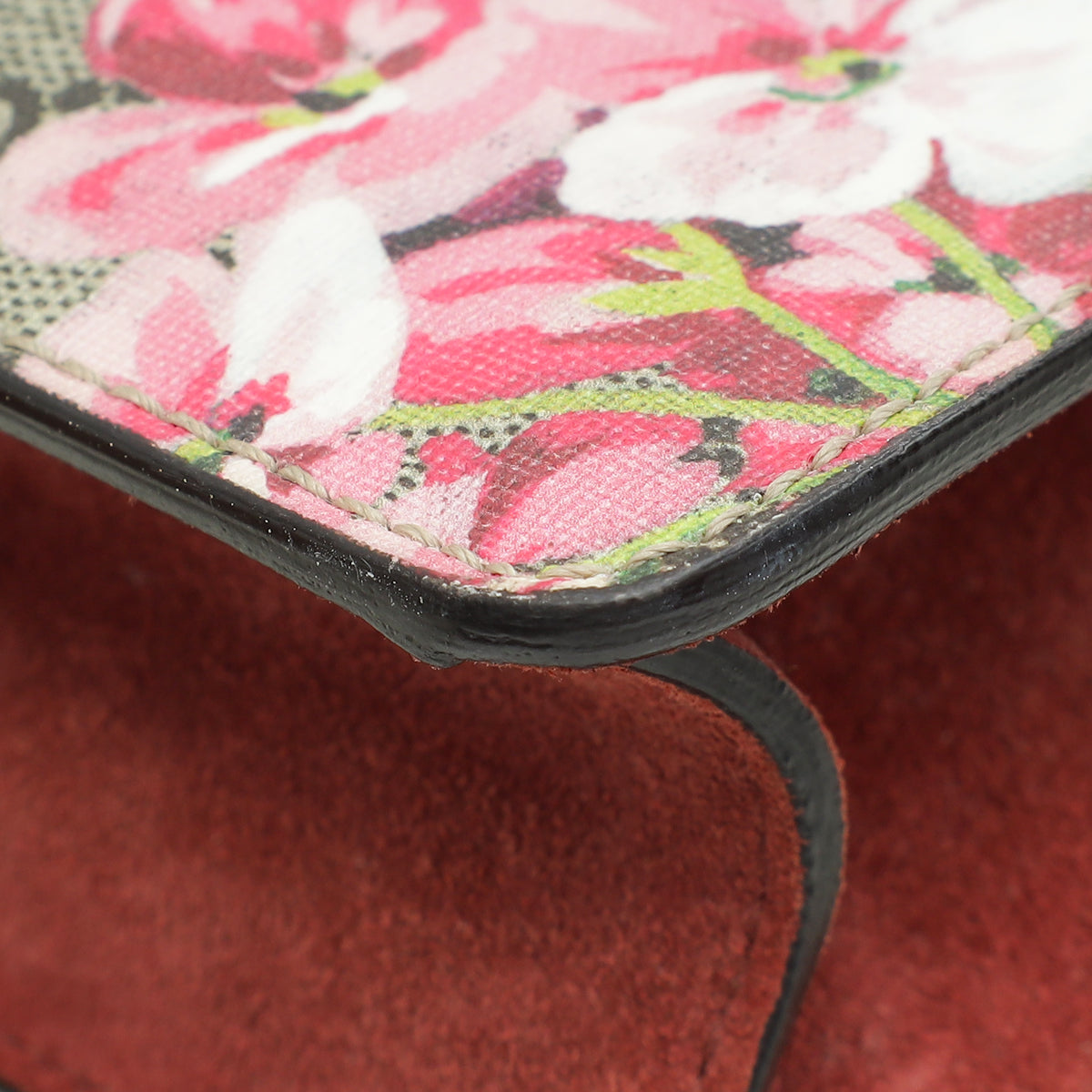 - Material: Ebony GG Coated Canvas with Multicolor Blooms Print and Rose Antique Suede Trim