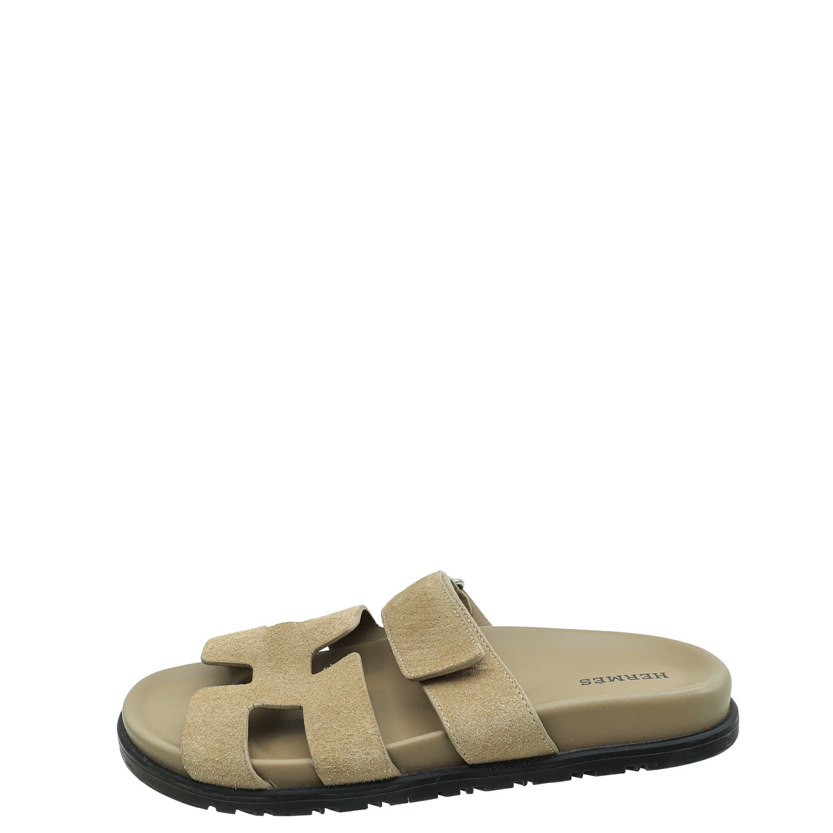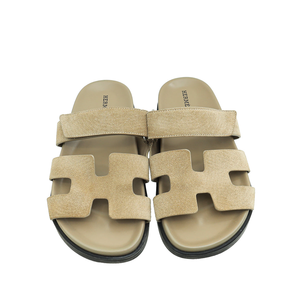 Hermes Beige Argile Suede Chypre Sandals 38.5