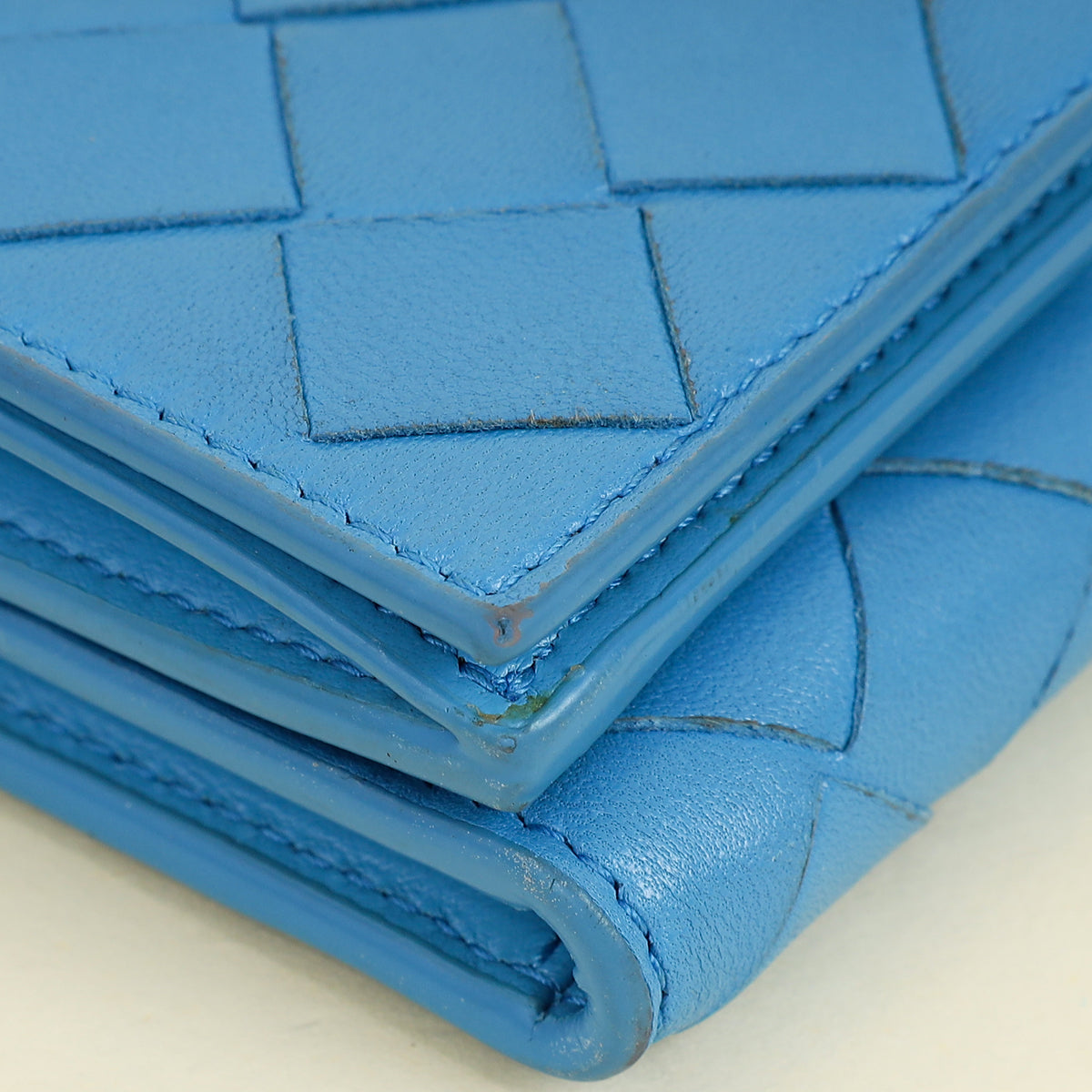 Bottega Veneta Blue Porridge Small Tri-Fold Zip Wallet